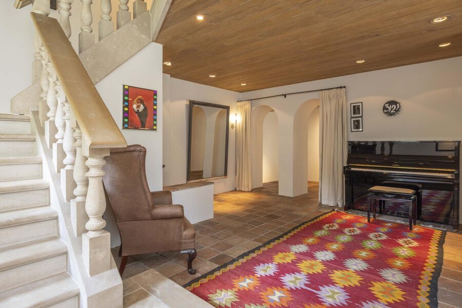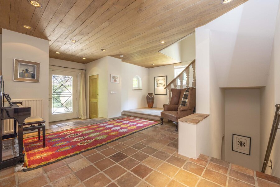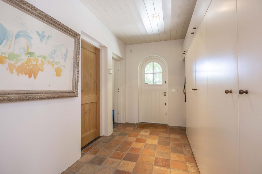 Aansluitend doorgang naar een kantoor-/studeerkamer en een tweede hal met een eigen zij-entree.
