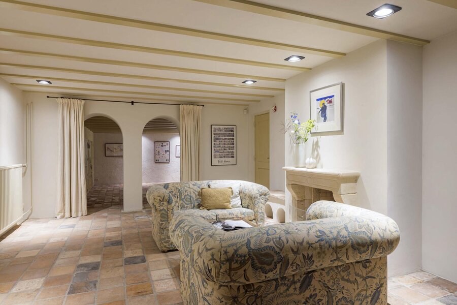 Het souterrain is verdeeld in diverse ruimtes en biedt veel ruimte en mogelijkheden. Er is een grote ruimte met een sfeervolle open haard; aansluitend is een ontspanningsruimte ingericht met een bargedeelte en geschikt voor een feestje, maar tevens als hobbyruimte, atelier of speelkamer voor de kinderen.