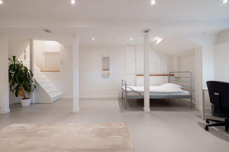 Dit souterrain heeft een stahoogte van 2.45 meter. Hier vind je een multifunctionele ruimte met vloerverwarming en natuurlijk licht dankzij de ramen aan de voorzijde. Dit maakt het souterrain ideaal voor een slaapkamer, speelkamer, thuisbioscoop, kantoor of gym. Ook is er een praktische berging onder de trap.