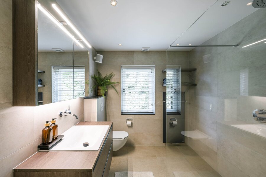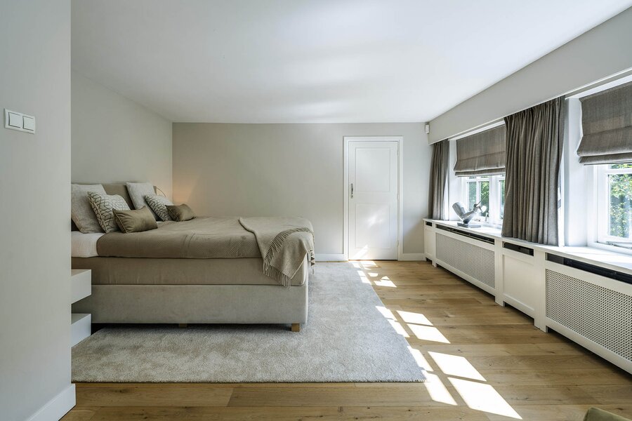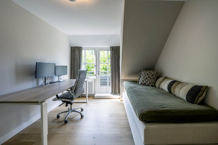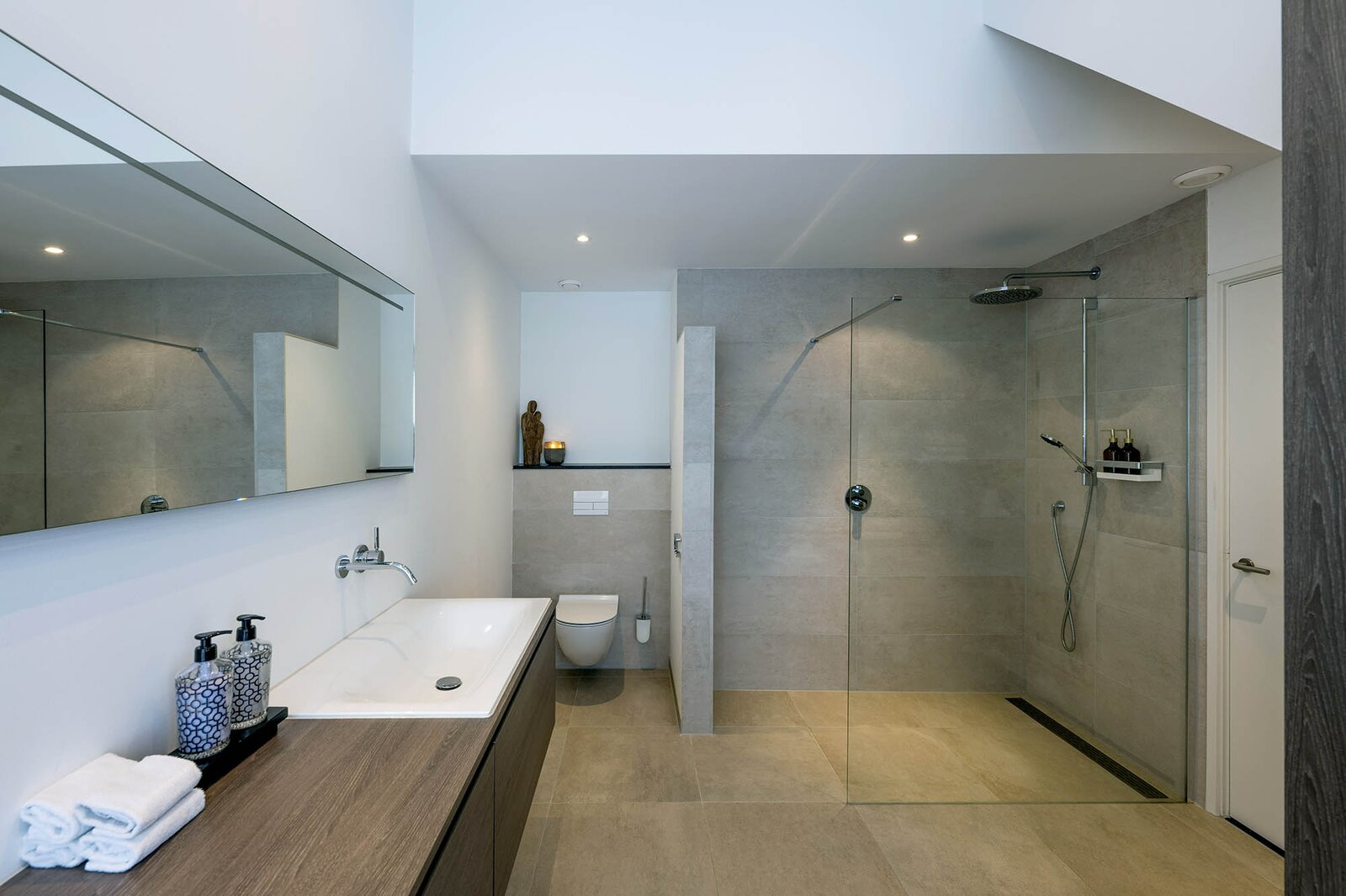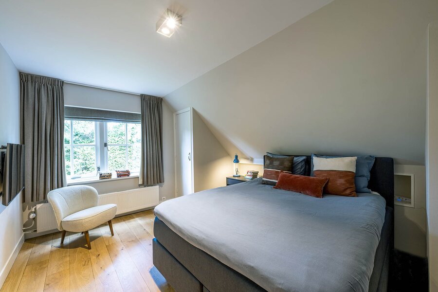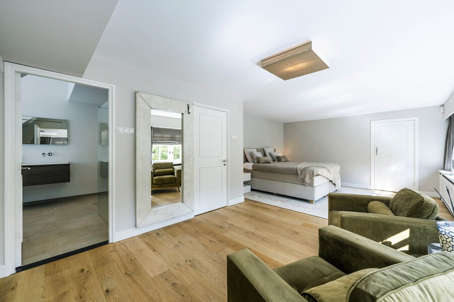 Hier bevinden zich nog eens twee slaapkamers en een derde badkamer met douche en toilet. Dankzij de vele vaste kasten is er volop bergruimte. De indeling leent zich uitstekend voor een gezin met meerdere kinderen of logees.