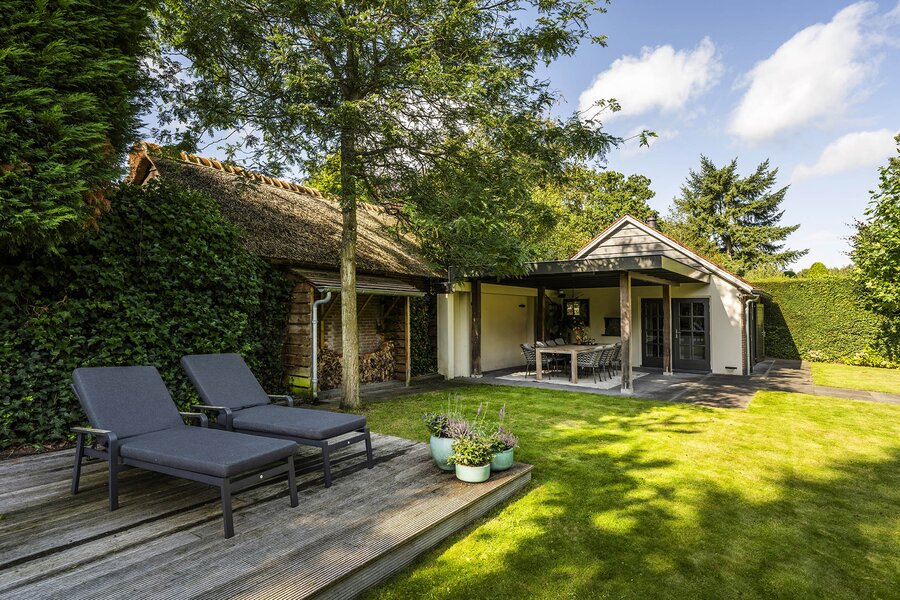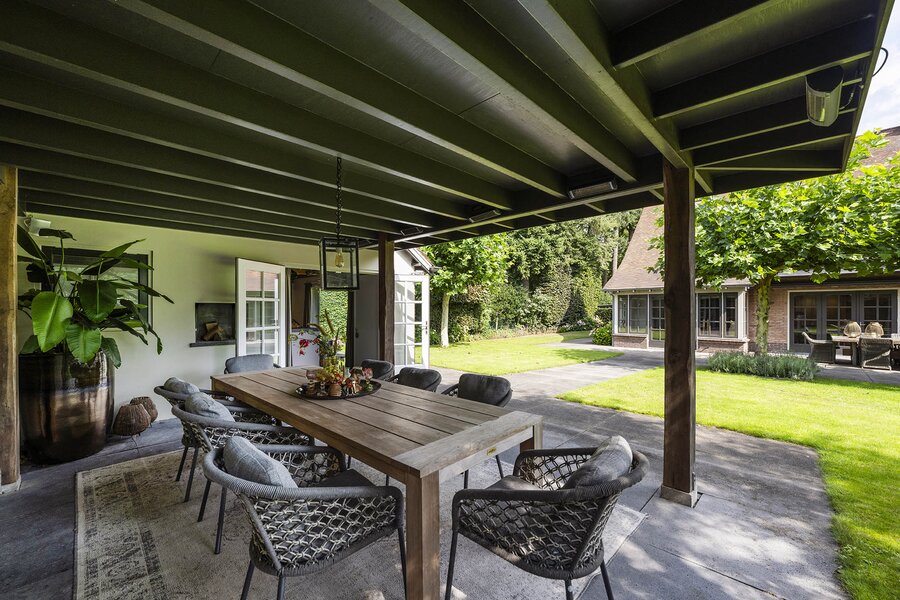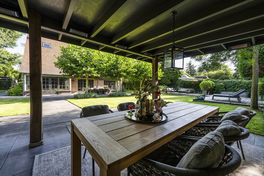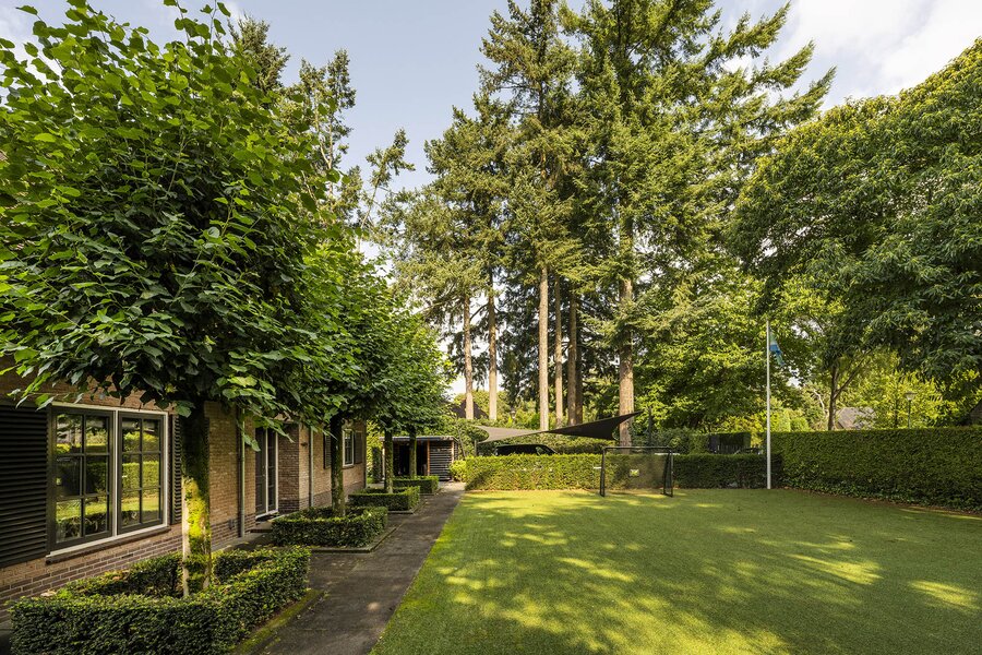 De villa is omgeven door een prachtig aangelegde tuin met zonnig terras (Z-ZW) met buitendouche en een sfeervolle veranda met open haard. Terwijl u ontspant met een goed glas wijn, kunnen kinderen veilig spelen in de grote voortuin met kunstgras, trampoline, schommel en voetbal-/hockeygoals. De voormalige dubbele garage is omgebouwd tot een volledig multifunctioneel bijgebouw (32 m²) met elektra, water en toilet. Een perfecte plek als gastenverblijf, kantoor of hobbyruimte!