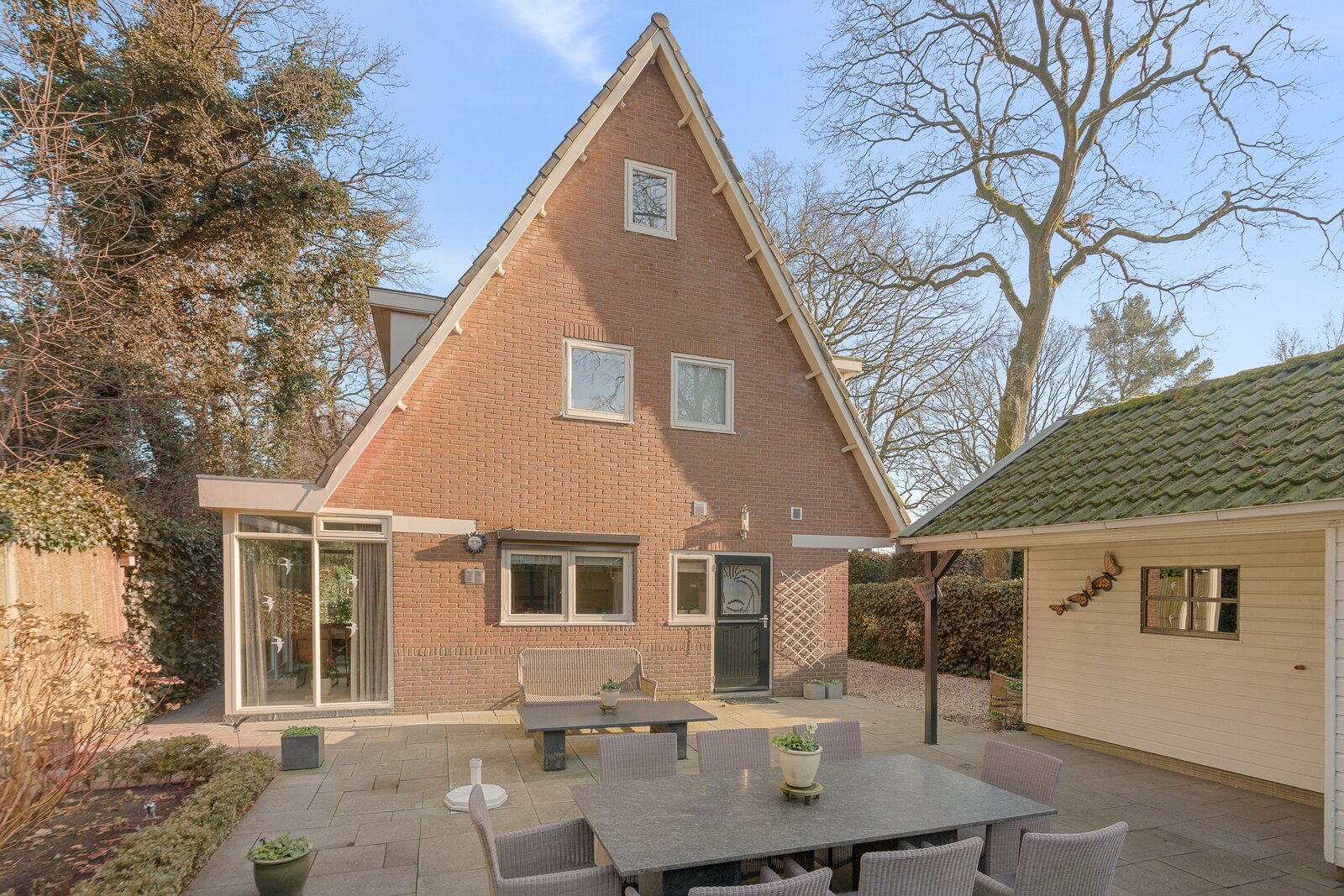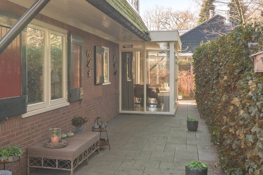 De woning staat op een ruim perceel van 583 m² en wordt omringd door een zonnige tuin rondom. Op eigen terrein is parkeergelegenheid voor meerdere auto’s aanwezig. Daarnaast beschikt het perceel over een vrijstaande garage/berging van circa 32 m², voorzien van openslaande deuren en een loopdeur.