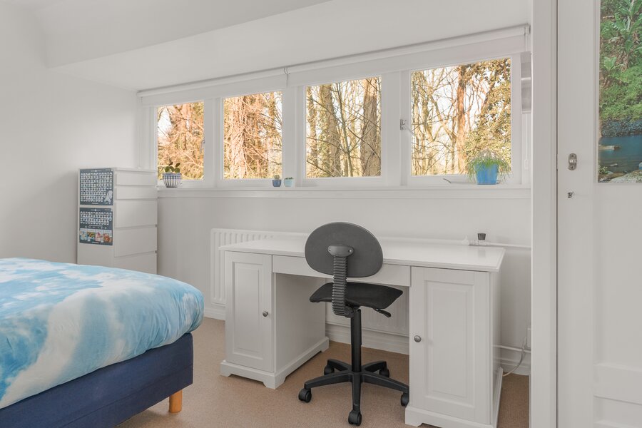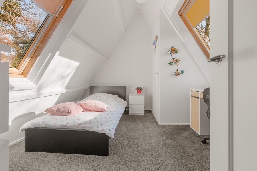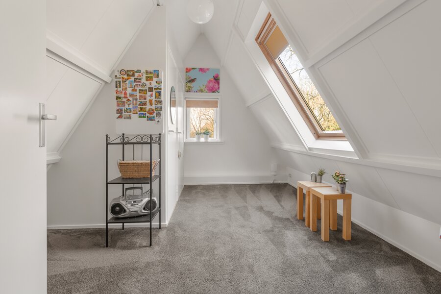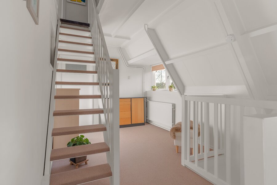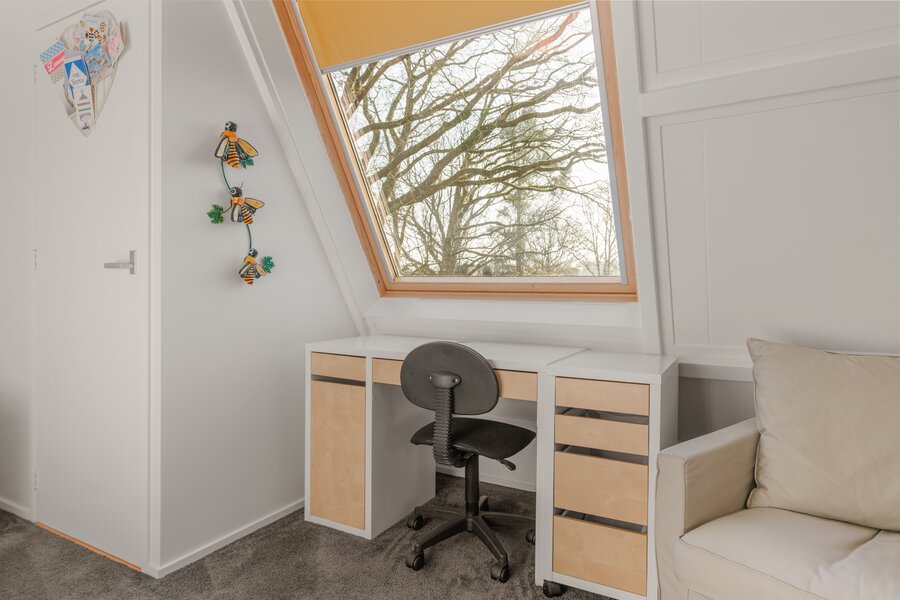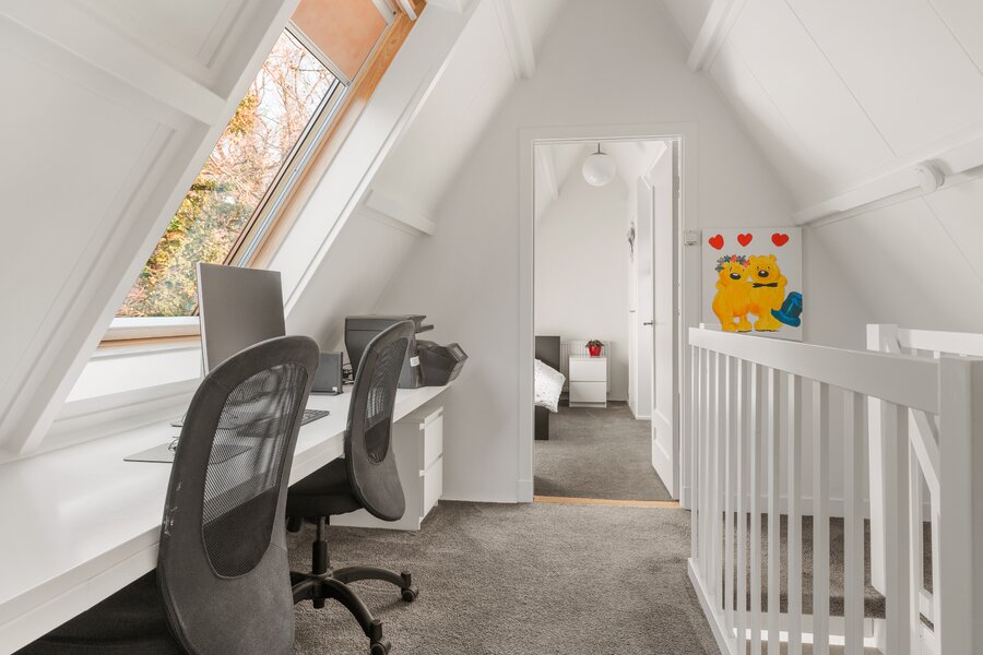 Tweede verdieping: Ruime overloop met dakraam en een prettige werkplek. Op deze verdieping bevinden zich nog twee volwaardige slaapkamers, beiden voorzien van een dakraam en vaste kast. In één van de kamers is de cv-opstelling (2022) geplaatst.