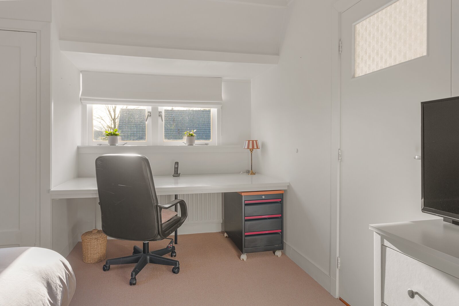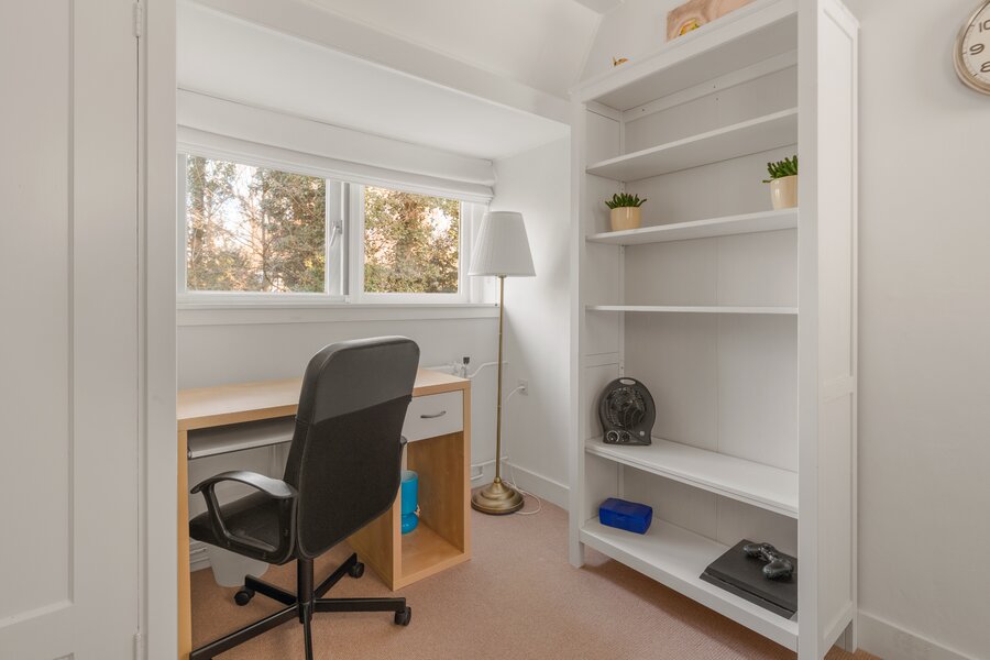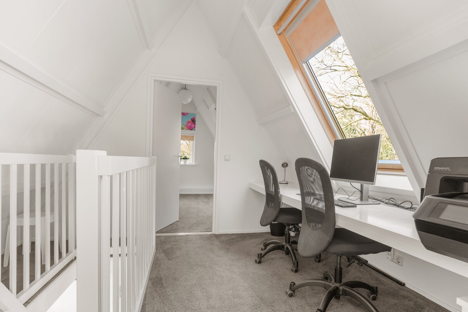 Tweede verdieping: Ruime overloop met dakraam en een prettige werkplek. Op deze verdieping bevinden zich nog twee volwaardige slaapkamers, beiden voorzien van een dakraam en vaste kast. In één van de kamers is de cv-opstelling (2022) geplaatst.