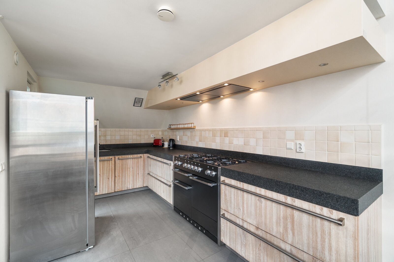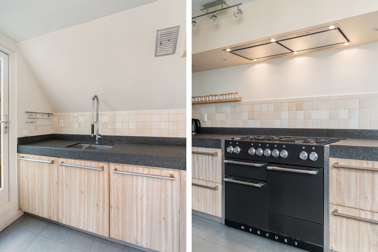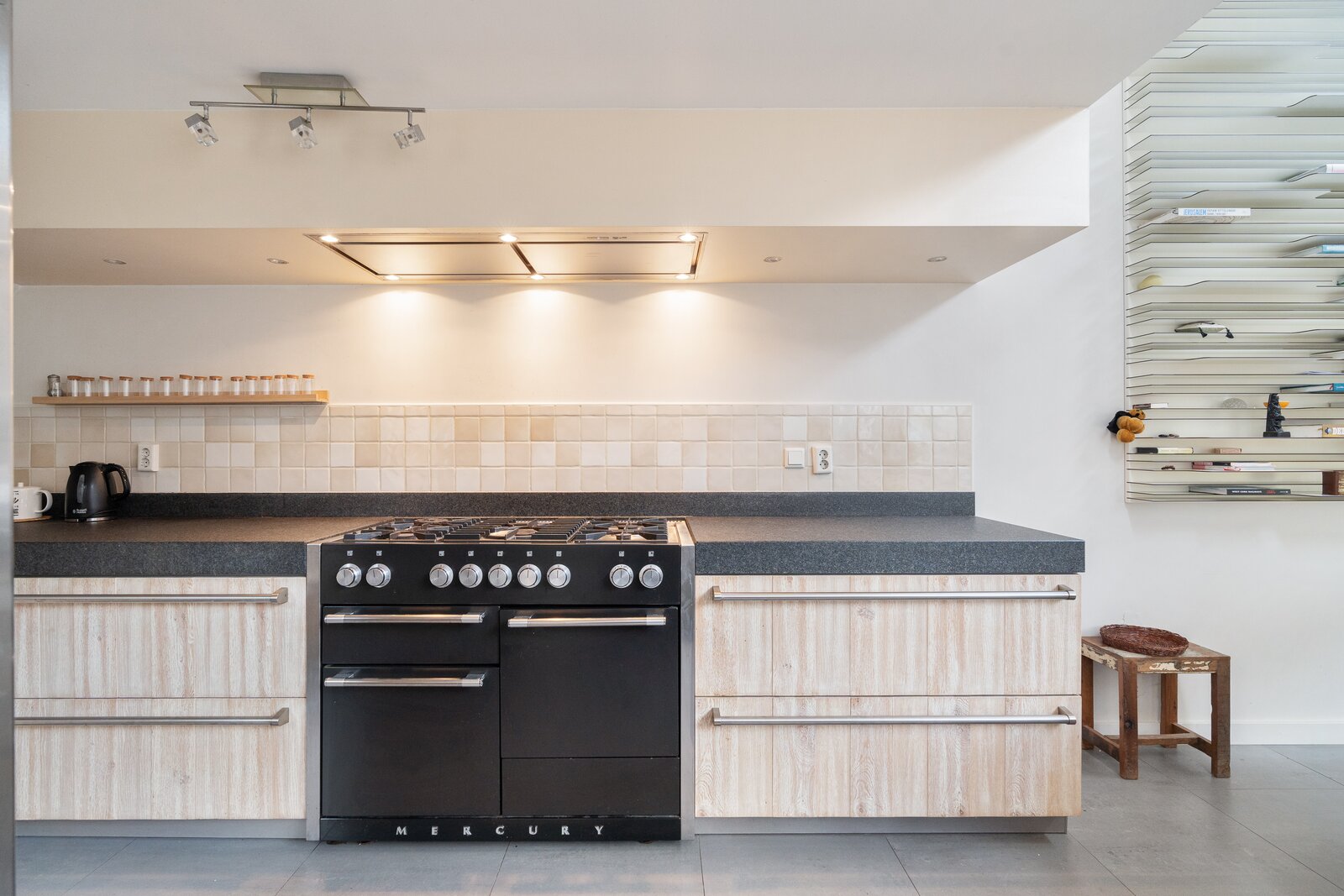 Woonkeuken, waarbij keuken o.a. is voorzien van groot fornuis met 5 pitst kookplaat en dubbele oven; loggia.