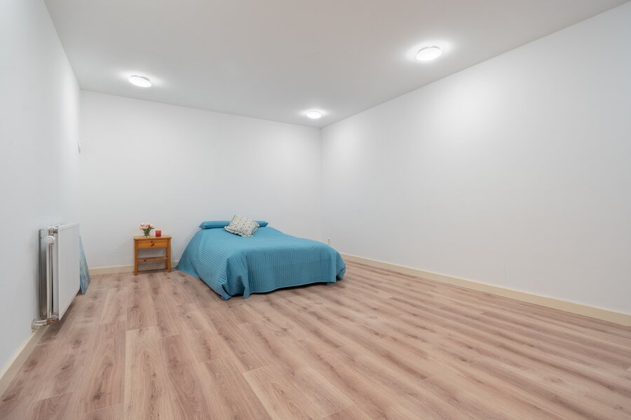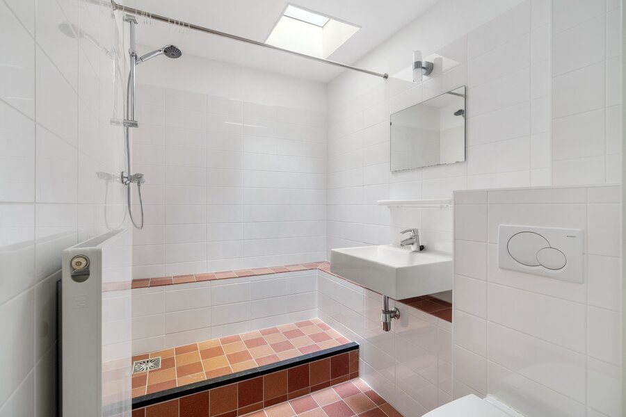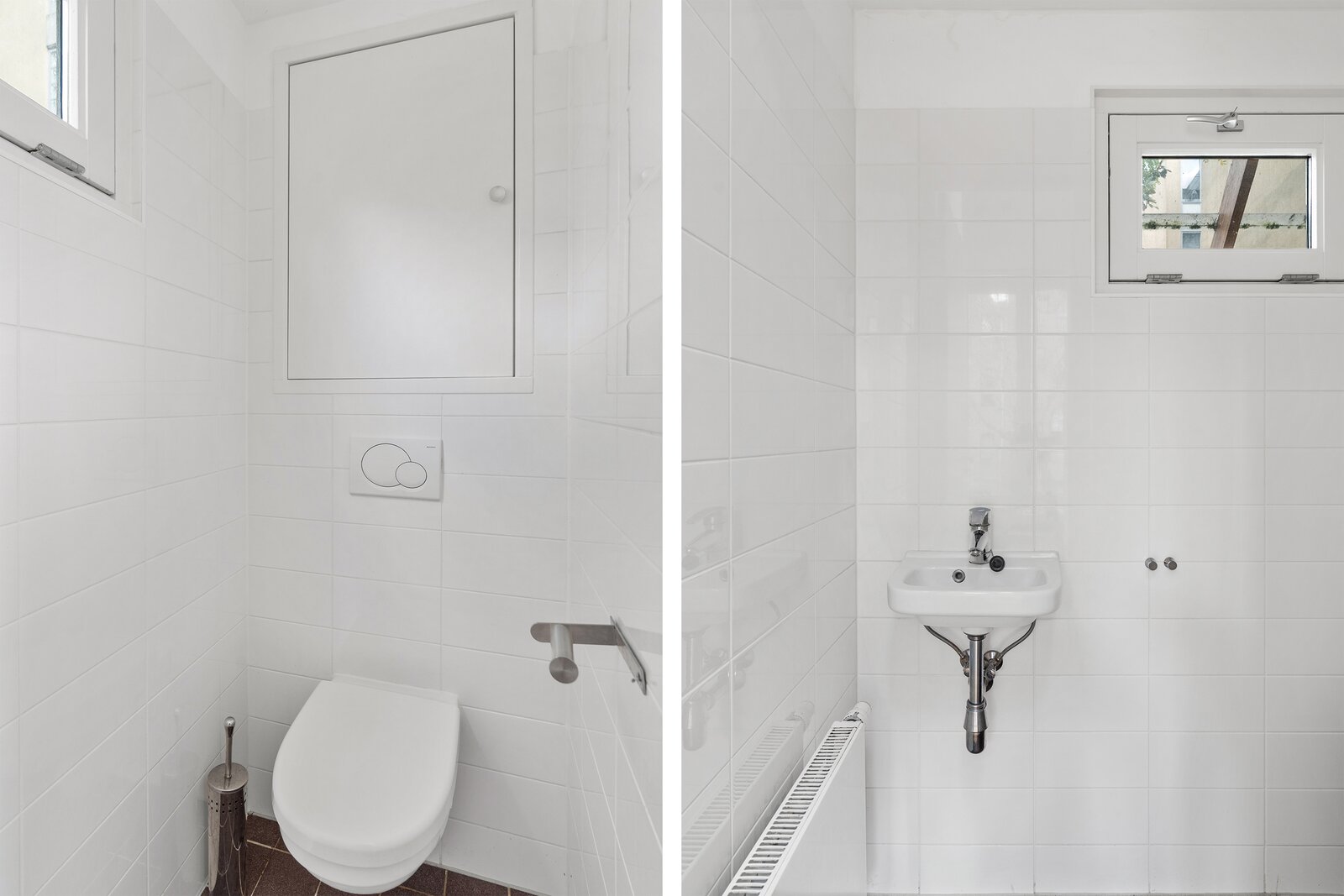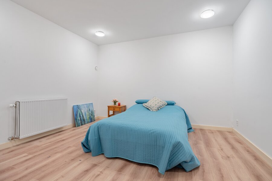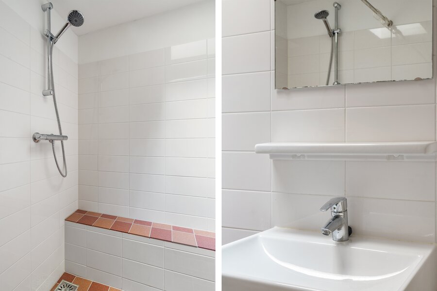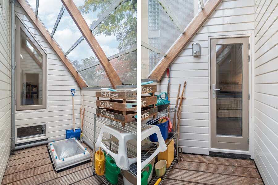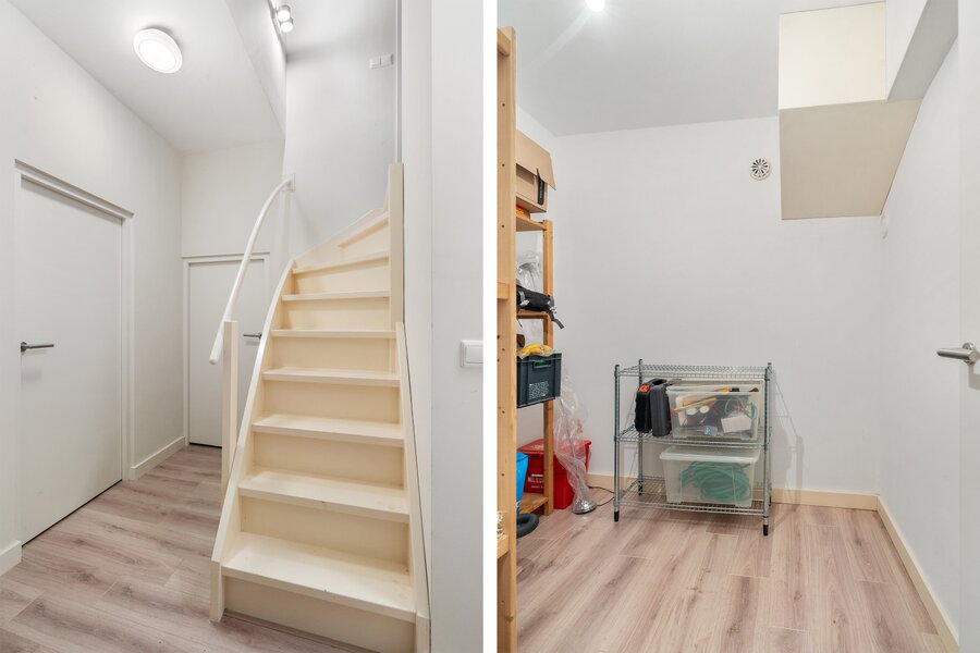 Grote slaapkamer; pantry met koelkast en wasbak; berging; stookruimte met de cv-opstelling (Intergas HR, 2011); badkamer met wastafel en douche.