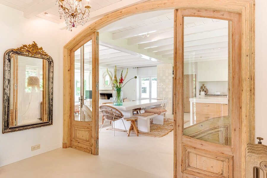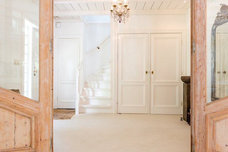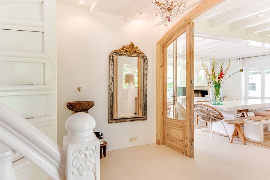 Je komt binnen in een ruime, lichte hal, waar originele details en smaakvolle afwerking meteen de warme, mediterrane sfeer en allure van het huis bepalen. Via de fraaie openslaande deuren voel je je meteen thuis.