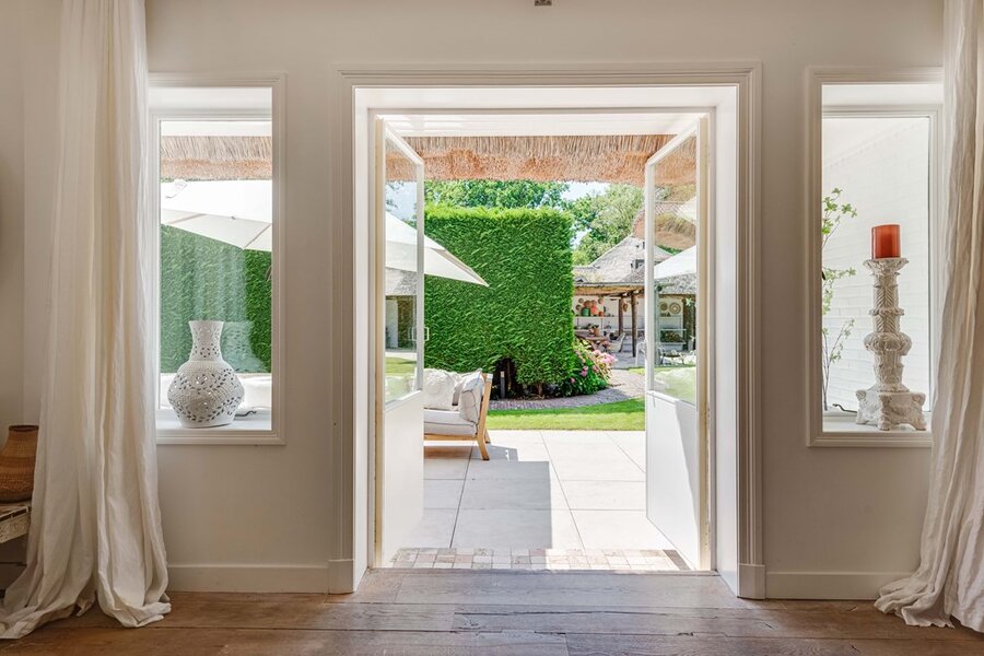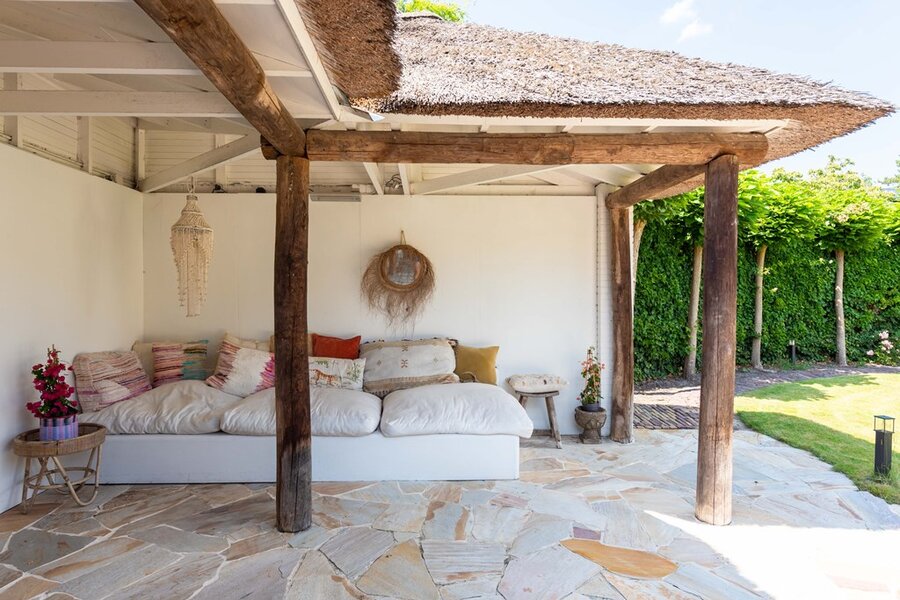 Aan de Zuidlaan, een van de stille en geliefde groene lanen van Bergen NH, staat deze rietgedekte villa met gastenverblijf. Op loopafstand van het dorp en het bos, een huis waar het licht zacht naar binnen valt en de dagen vanzelf langzamer lijken te gaan.