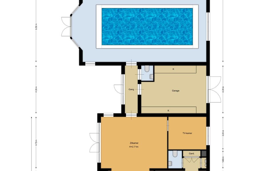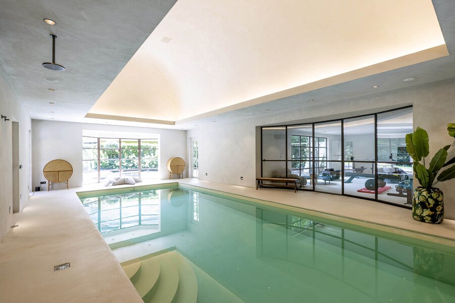 Voor uw ontspanning en wellness is er een prachtig inpandig zwembad van ca. 4 x 10 meter, verwarmd met een efficiënte warmtepomp, met openslaande deuren naar een weelderige tuin, waar de dag in rust kan eindigen. Grenzend hieraan ligt een ruime fitnessruimte, waar u met uitzicht op het groen elke dag energie kunt opdoen.