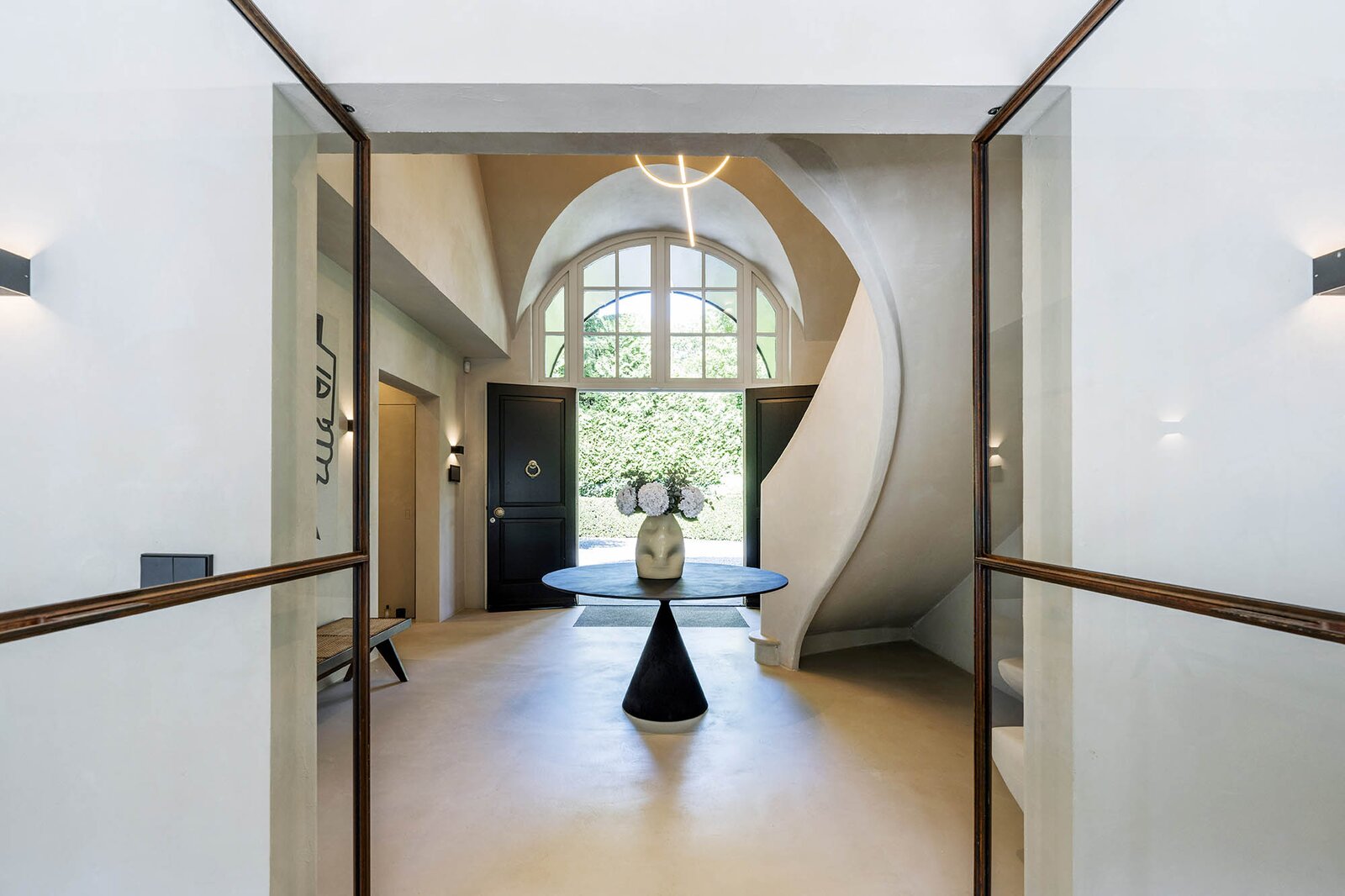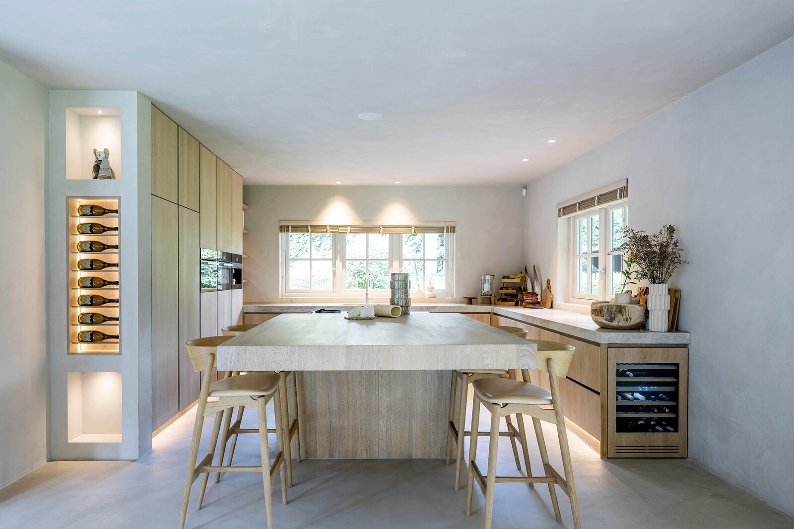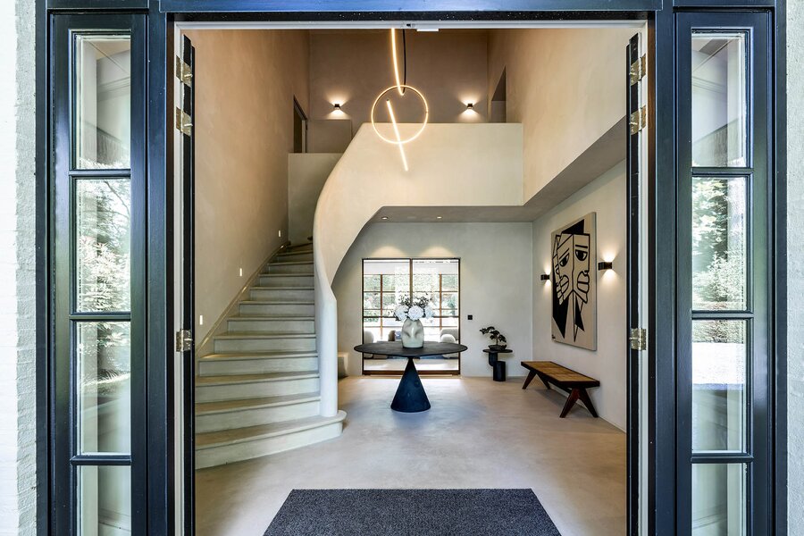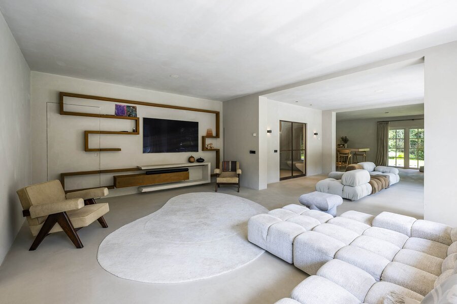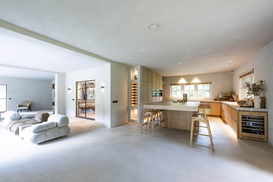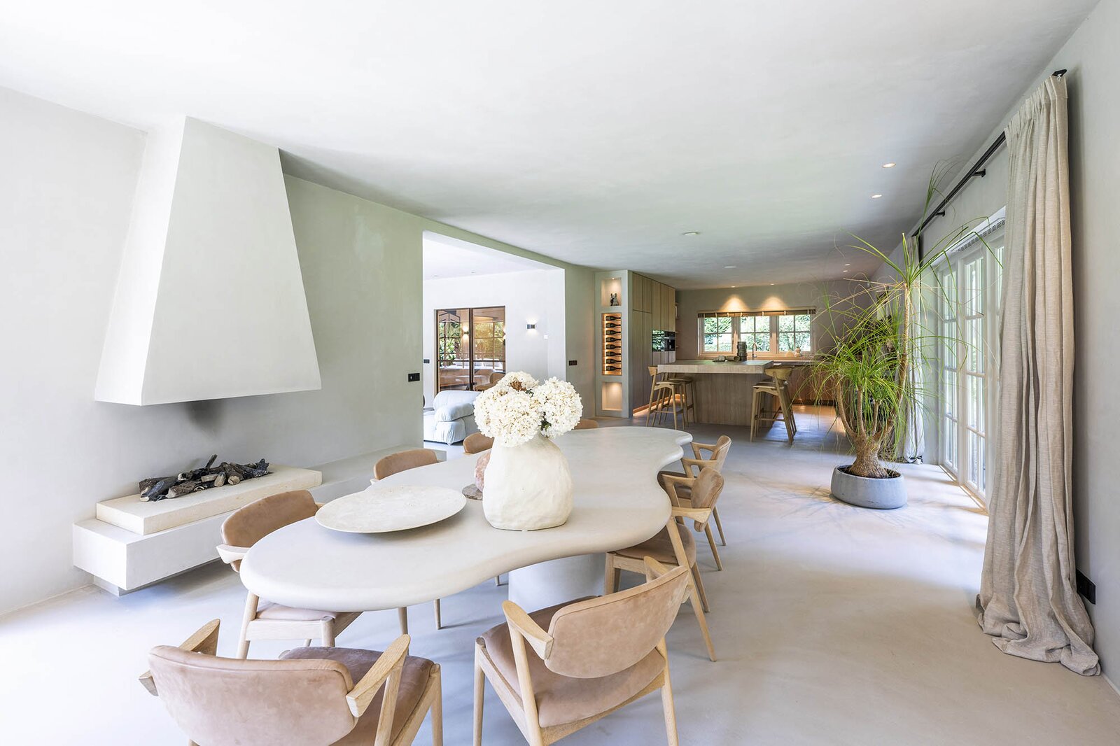 Bij binnenkomst omarmt de royale hal u met haar lichte sfeer en de uitnodigende vide. Vanuit hier leidt een dubbele deur u naar het hart van het huis: een magnifieke woonkeuken met een adembenemend Taj Mahal marmeren eiland, uitgerust met een PITT cooking systeem en een slim verzonken tv-mechaniek. De warme haard en openslaande deuren openen de ruimte naar de riante tuin, alsof binnen en buiten in perfecte harmonie samensmelten.