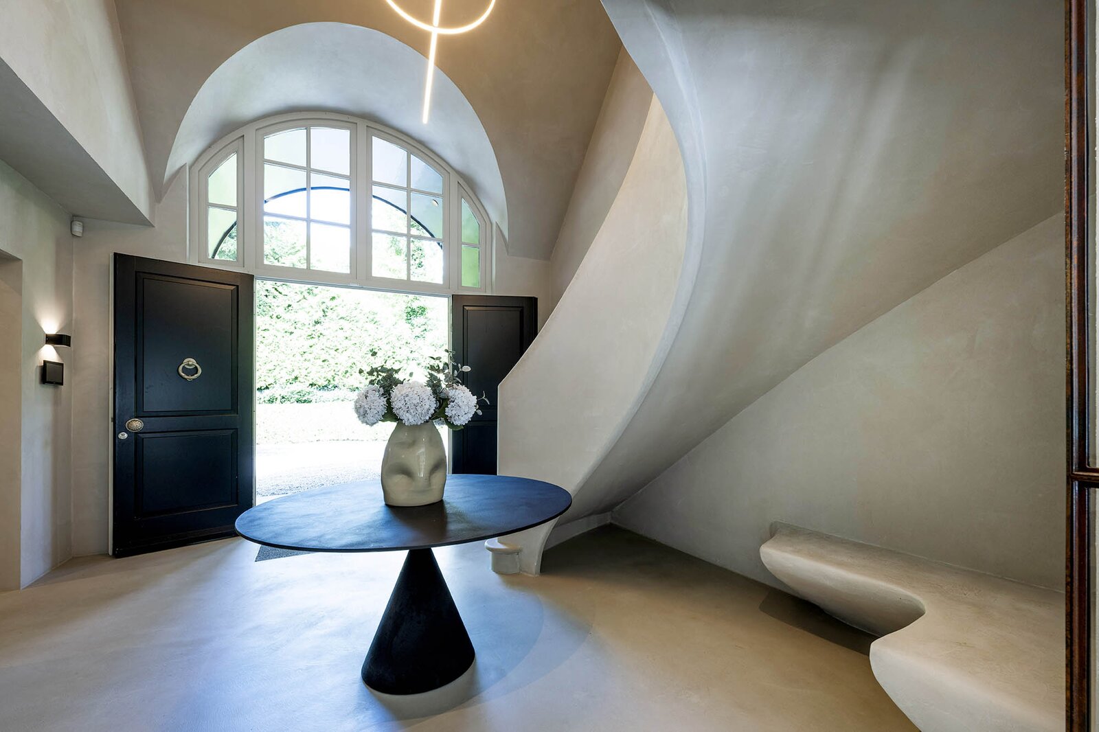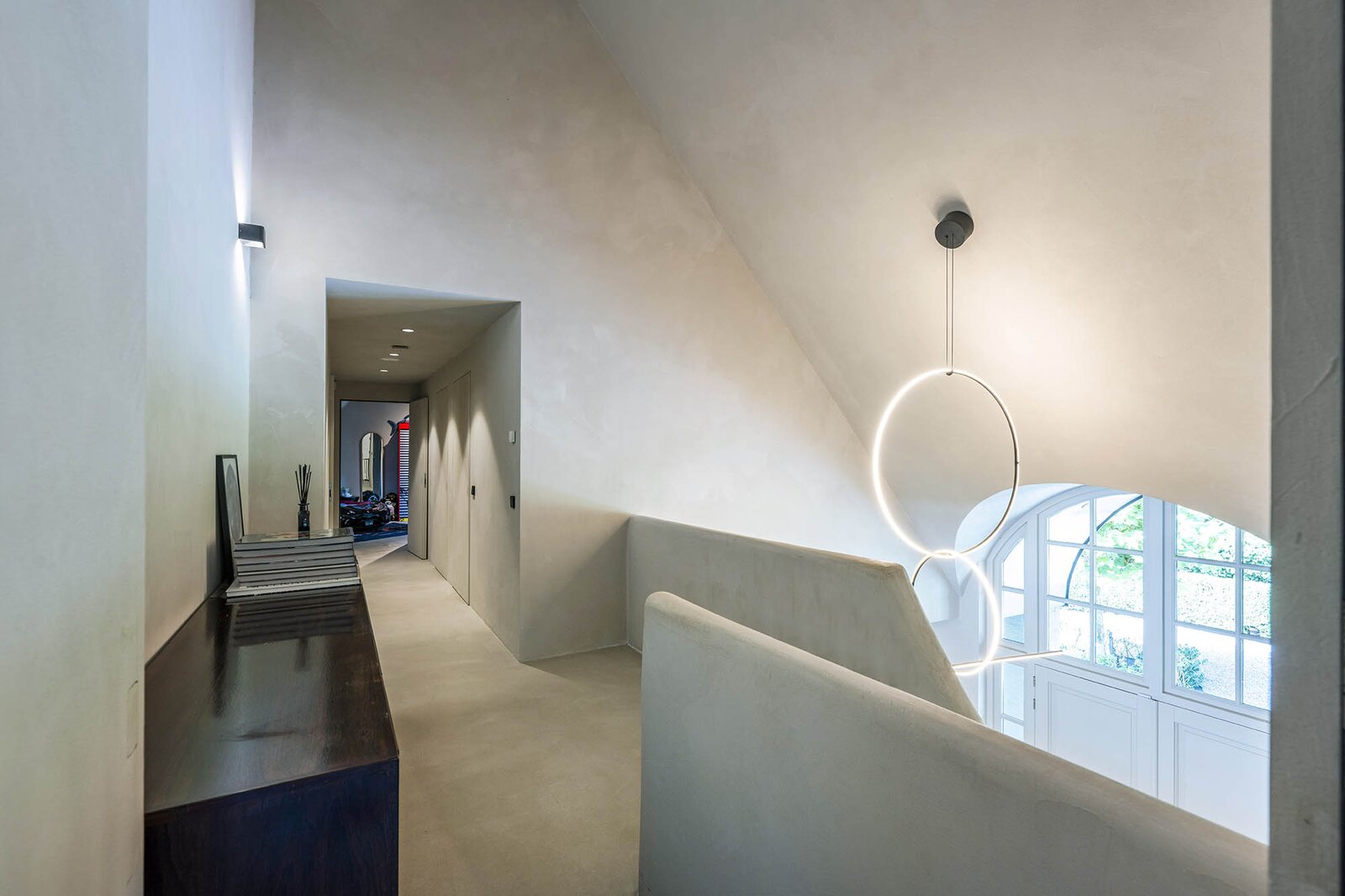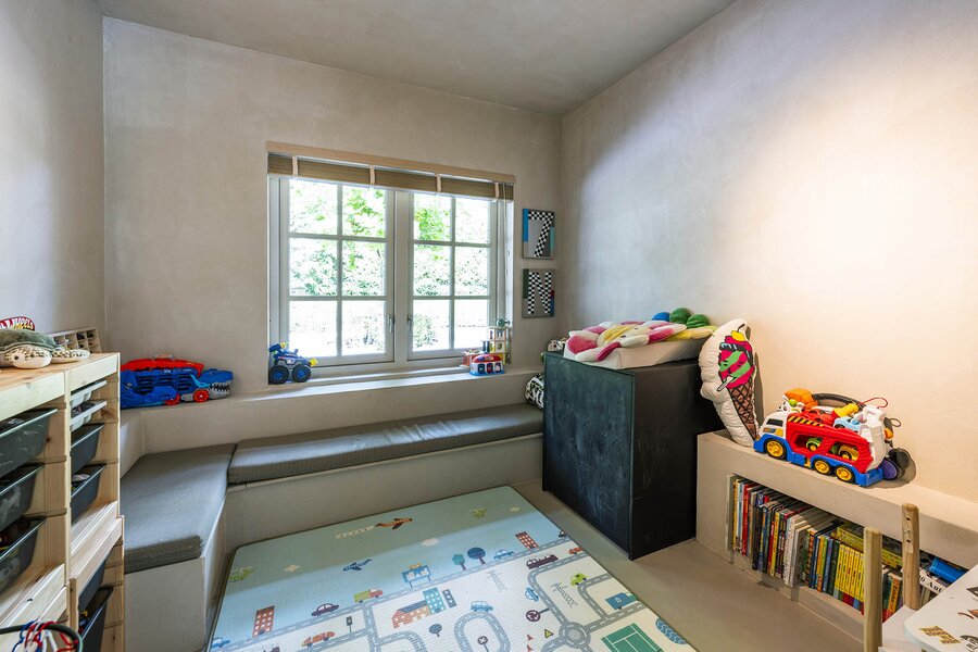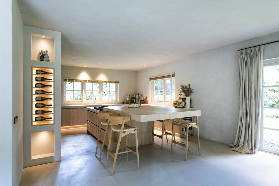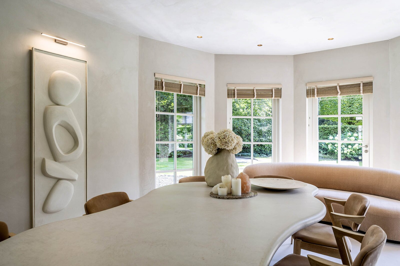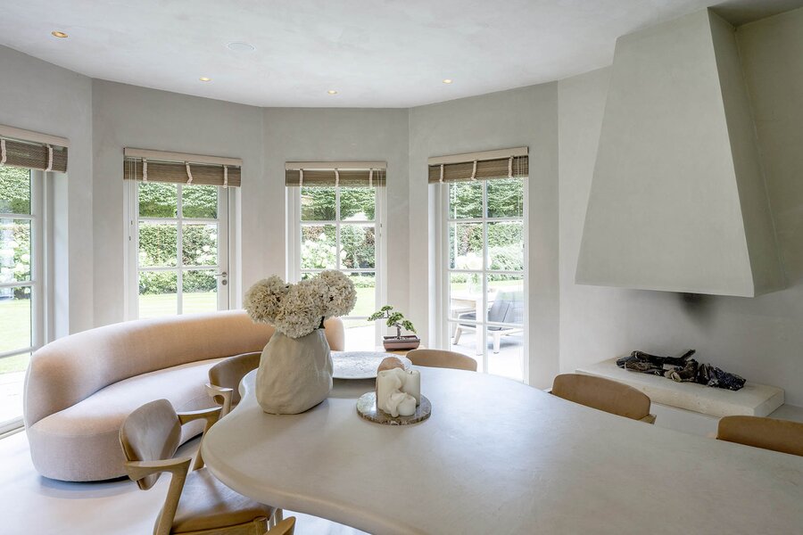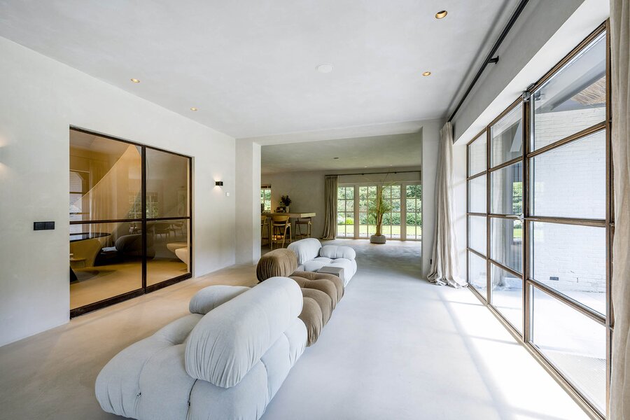 Bij binnenkomst omarmt de royale hal u met haar lichte sfeer en de uitnodigende vide. Vanuit hier leidt een dubbele deur u naar het hart van het huis: een magnifieke woonkeuken met een adembenemend Taj Mahal marmeren eiland, uitgerust met een PITT cooking systeem en een slim verzonken tv-mechaniek. De warme haard en openslaande deuren openen de ruimte naar de riante tuin, alsof binnen en buiten in perfecte harmonie samensmelten.