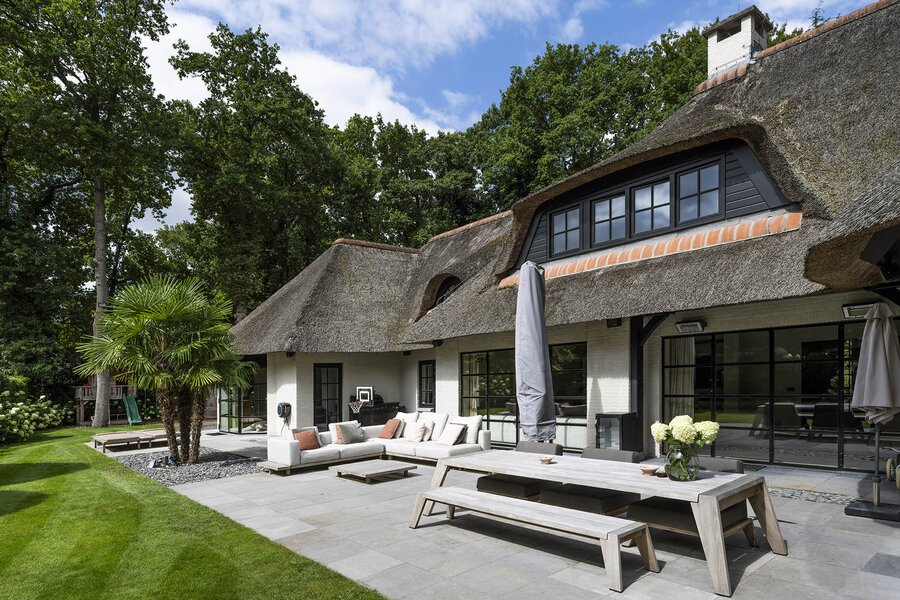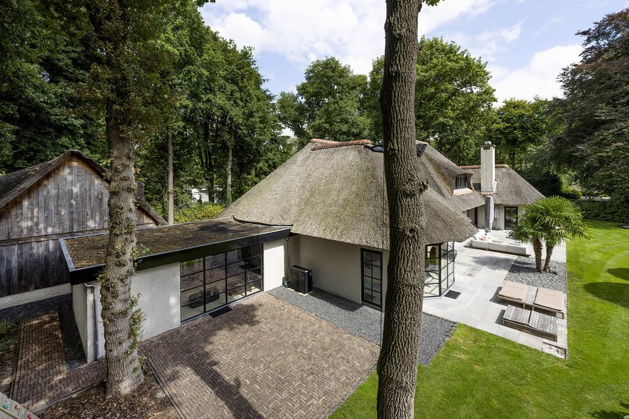 In het hart van de groene villawijk Crailo, waar rust en luxe elkaar ontmoeten, staat een waar juweel te wachten op haar nieuwe bewoners: een schitterend vrijstaand rietgedekt landhuis, een oase van stijl en comfort die u met open armen welkom heet.