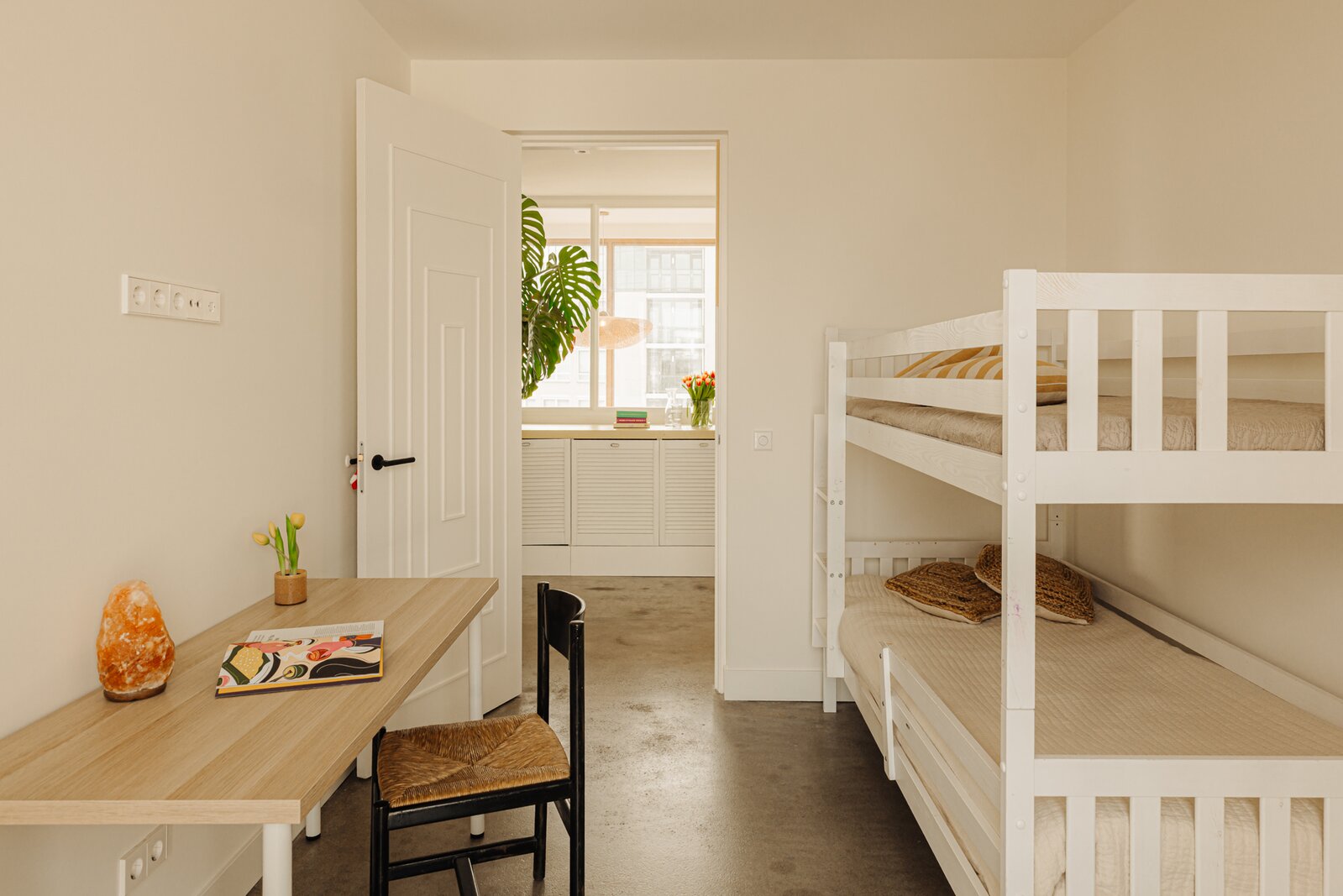 een wasmachineopstelling. Vanuit hier toegang tot vier slaapkamers en twee