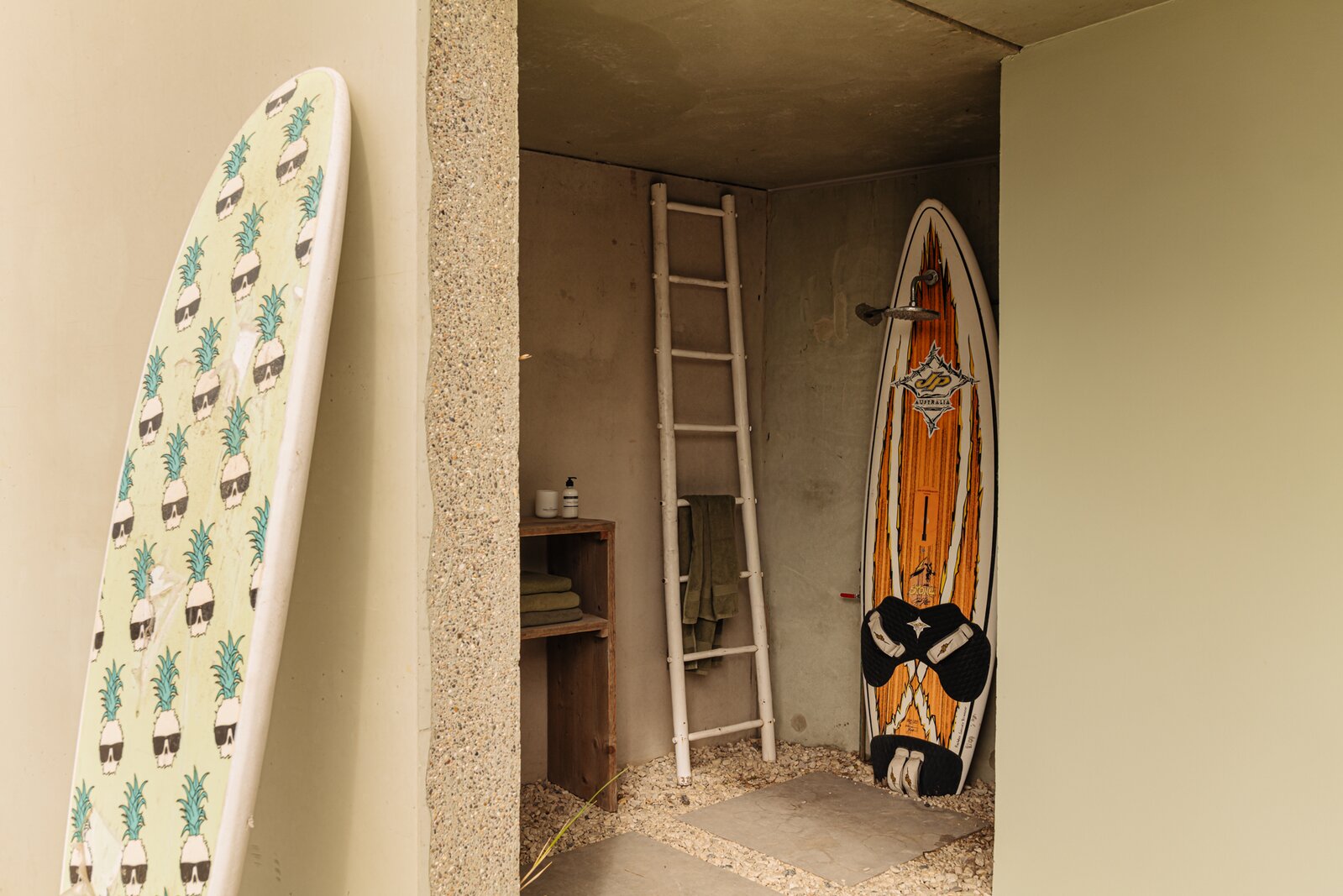 bevindt zich een praktische buitendouche, ideaal om na een dag strand of surfen direct