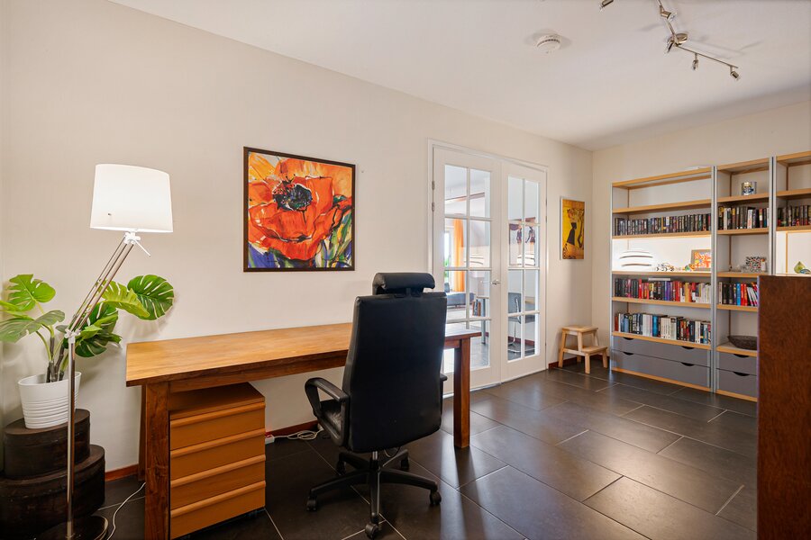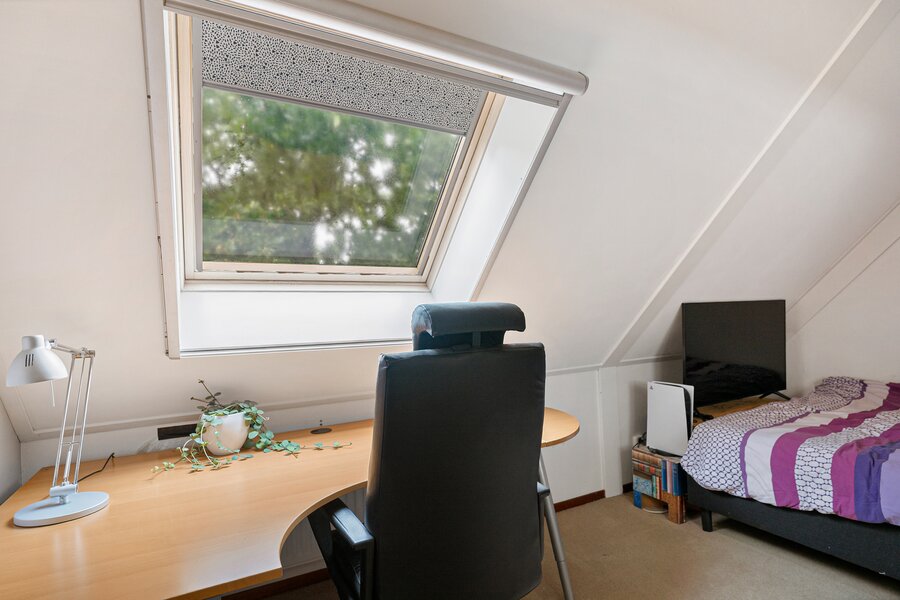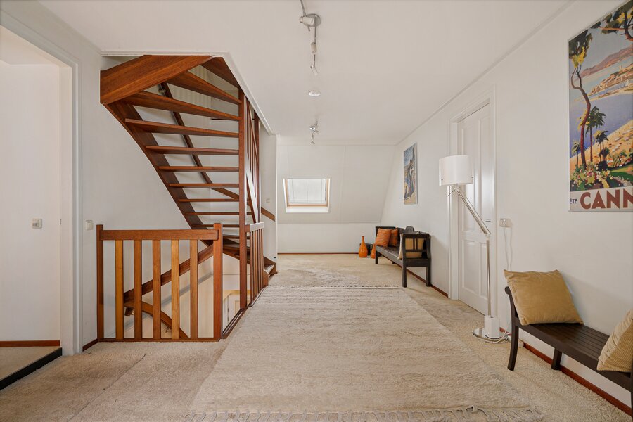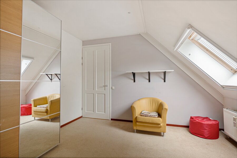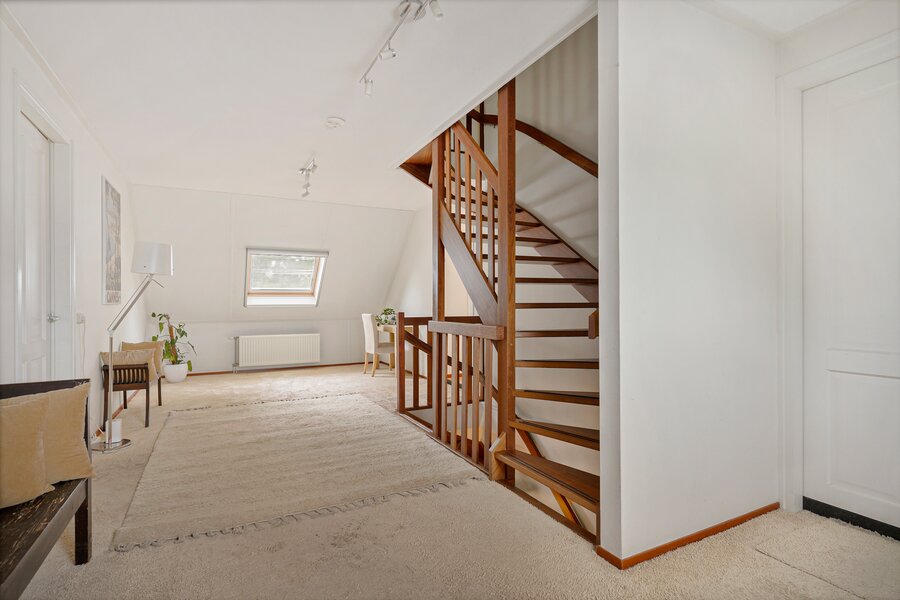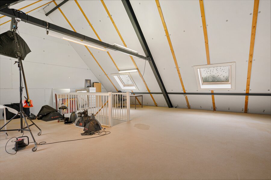 Hier bevinden zich een groot vertrek van 68 m2 en een zolderberging van 23 m2, bereikbaar d.m.v. een vaste trap.