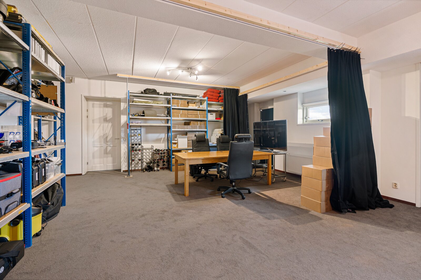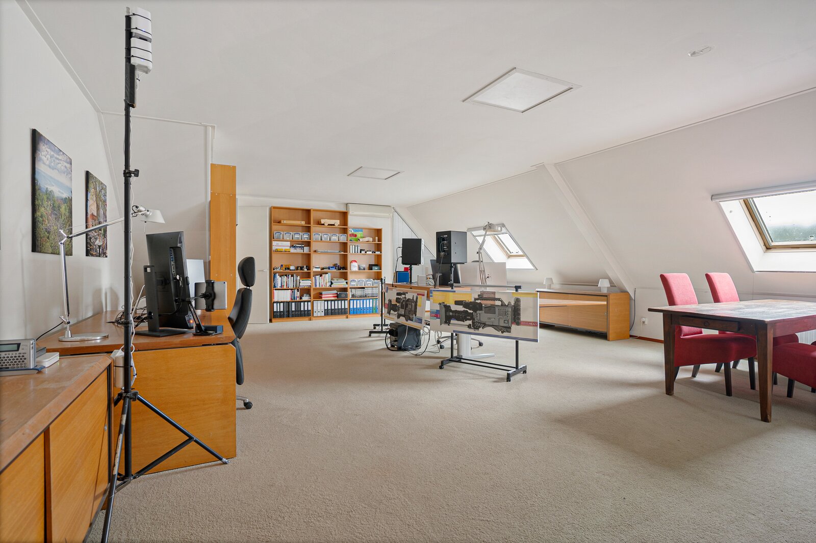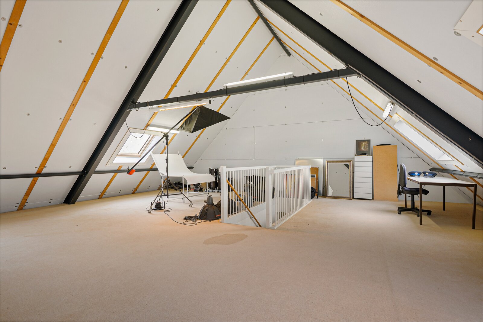 Hier bevinden zich een groot vertrek van 68 m2 en een zolderberging van 23 m2, bereikbaar d.m.v. een vaste trap.