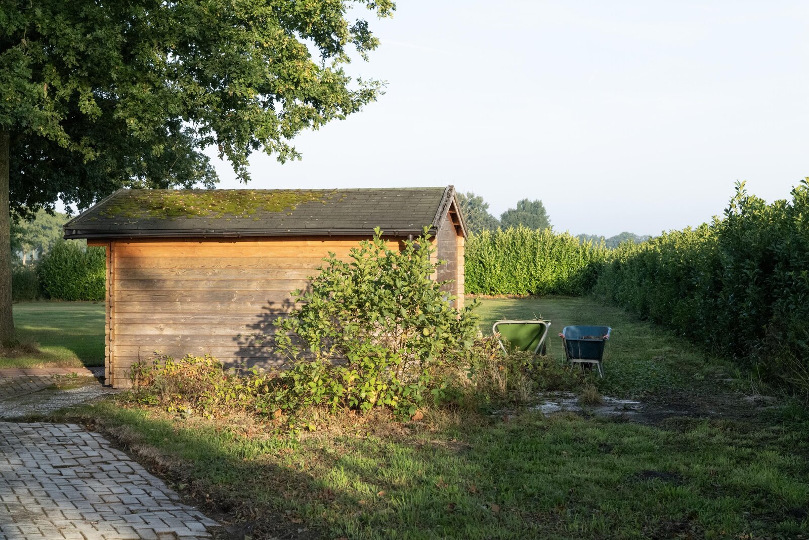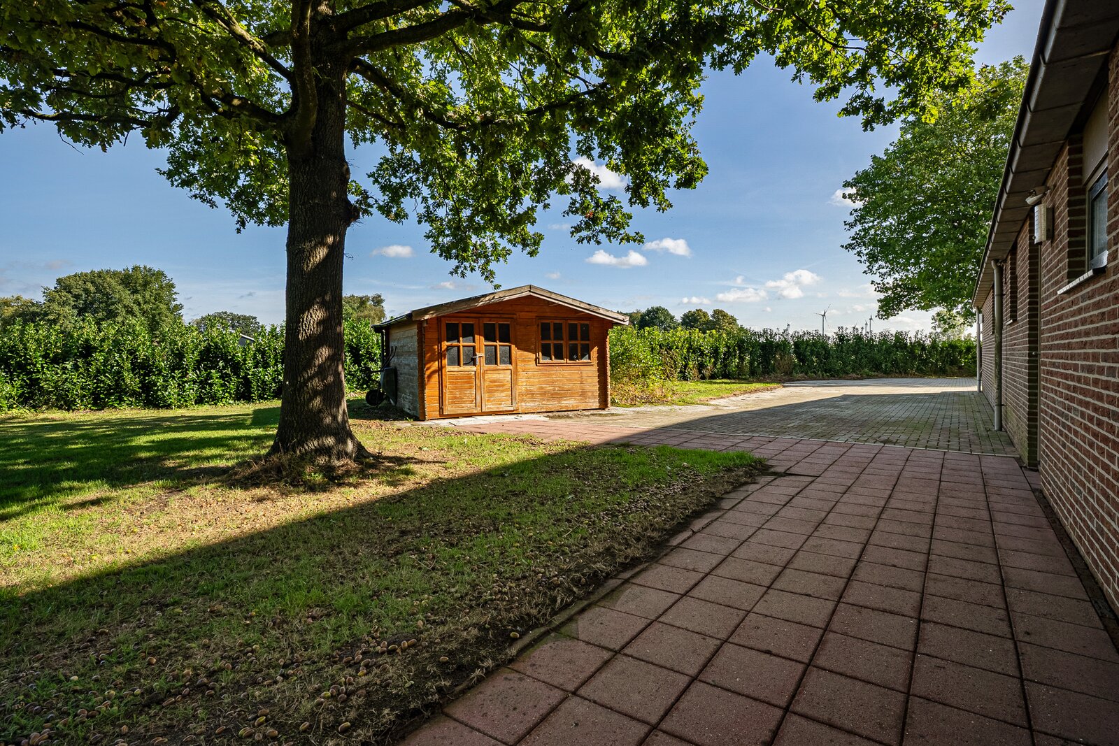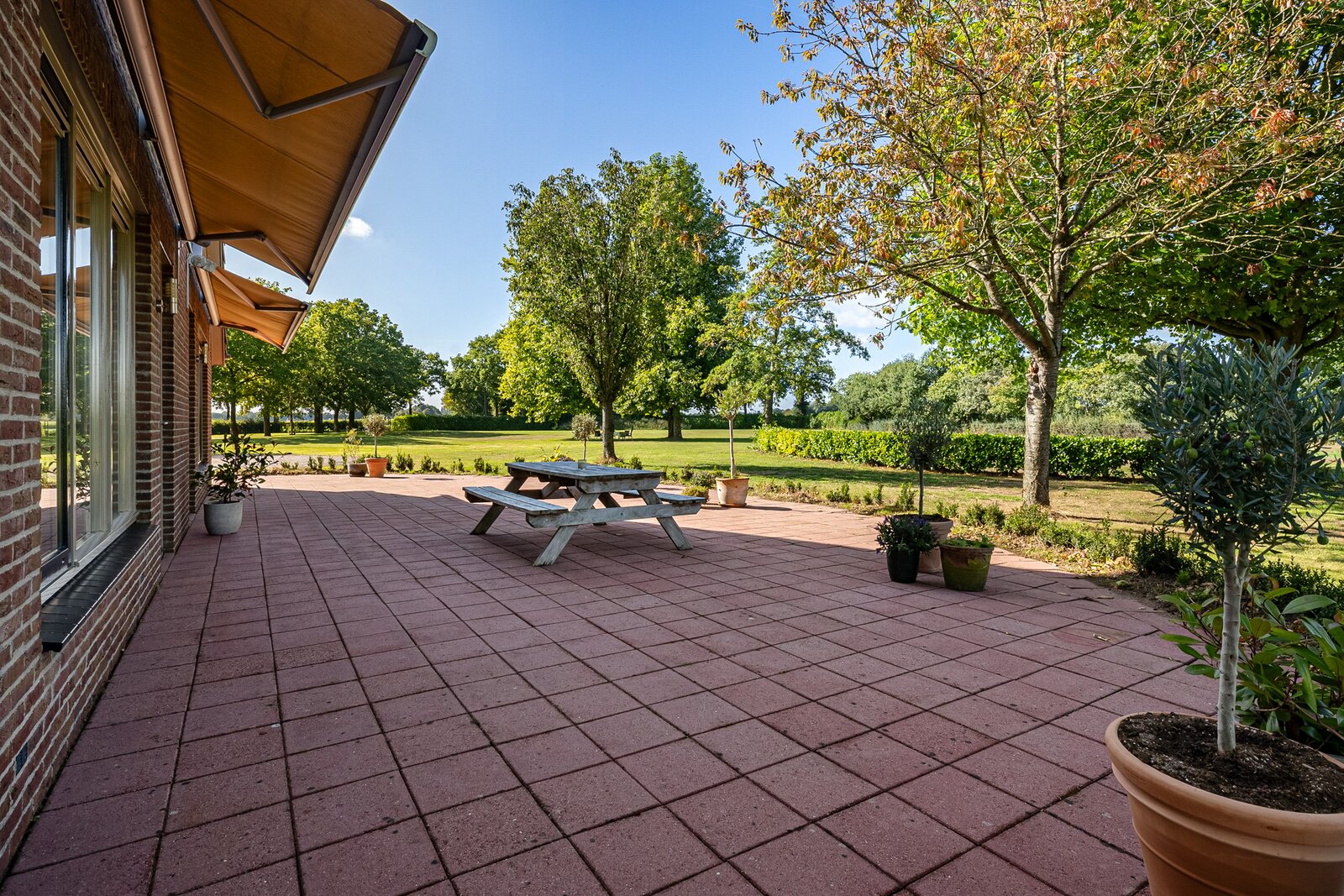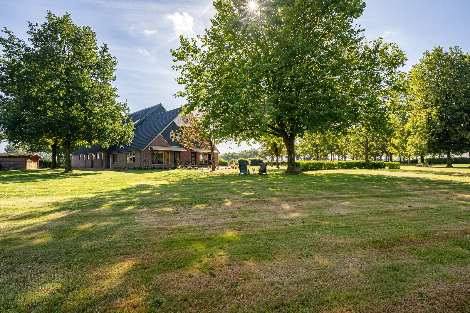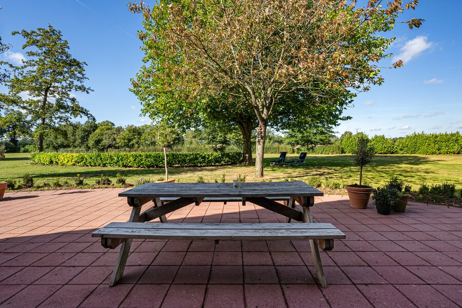 Bij de boerderij ligt een bijzonder grote parkachtige tuin. Maar eventueel is er ook een weide te realiseren voor het houden van een paard.