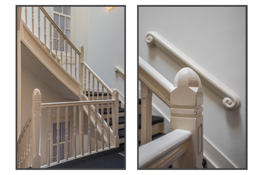 De prachtige gevel vormt een waardige entree naar een interieur dat rijk is aan originele details: hoge ornamentenplafonds, verfijnd houtsnijwerk, klassieke paneeldeuren, stijlvolle en-suite-deuren, authentieke schouwen en een imposant trappenhuis dat als architectonisch middelpunt fungeert.
