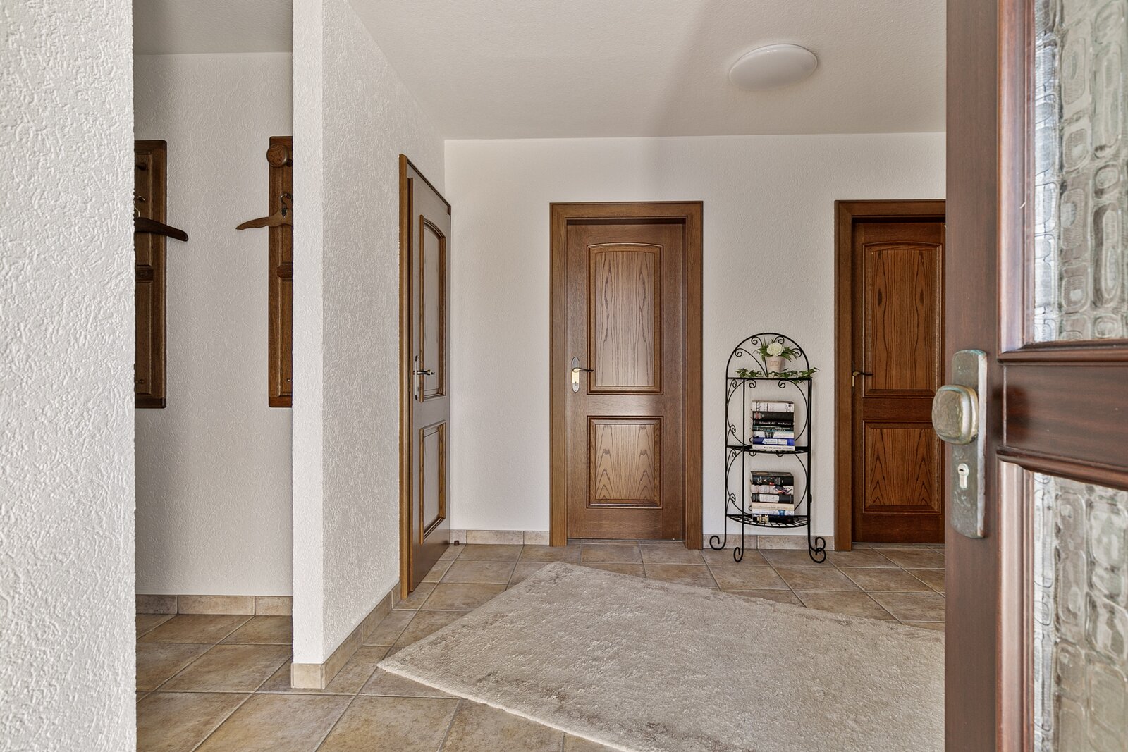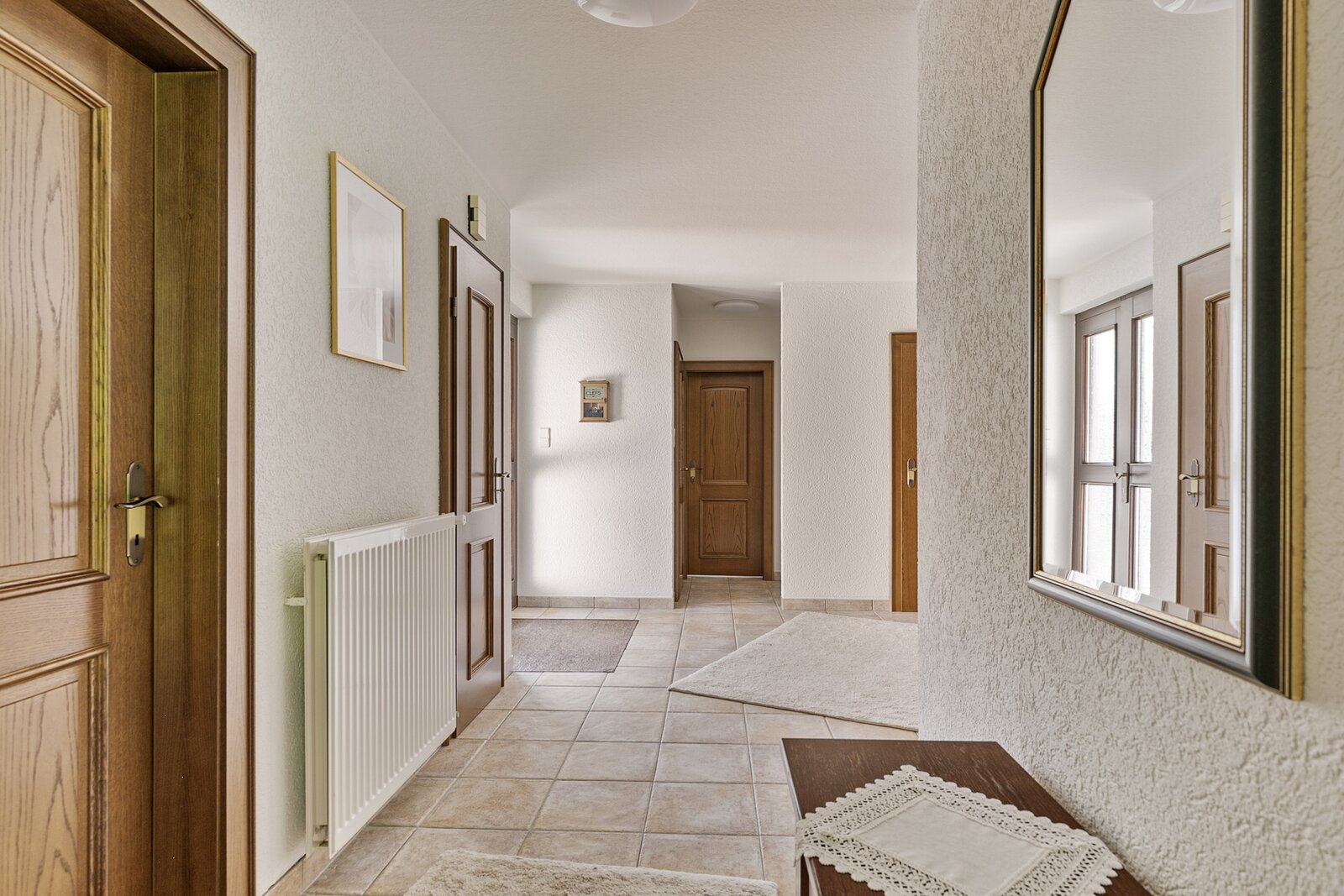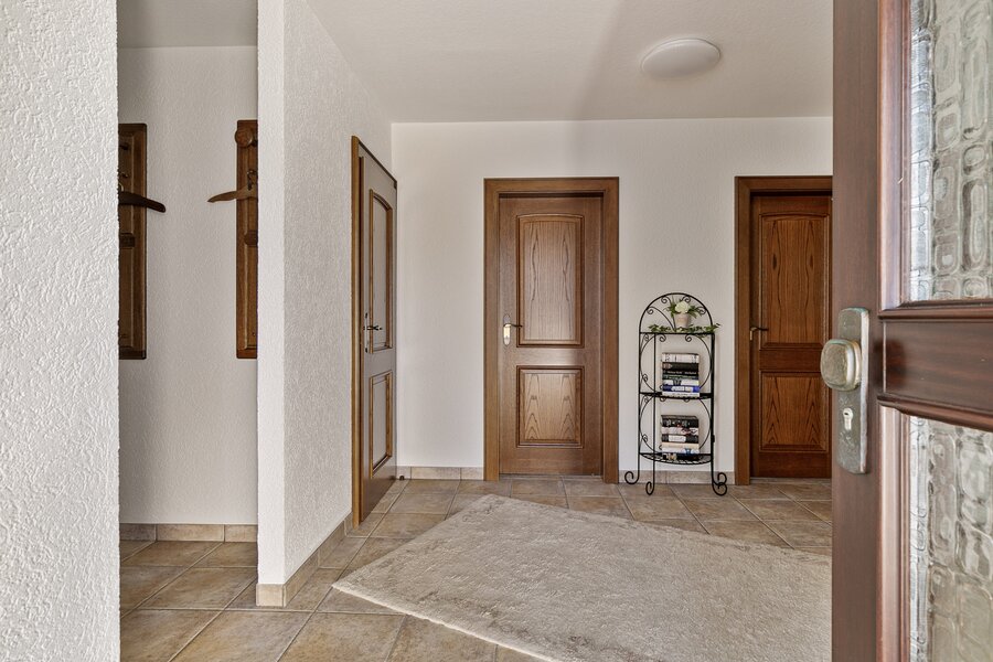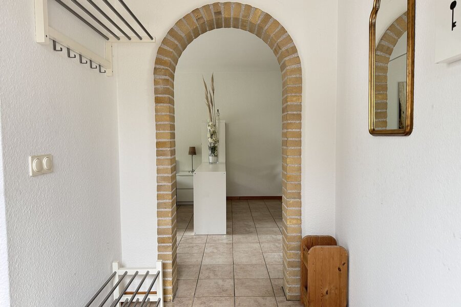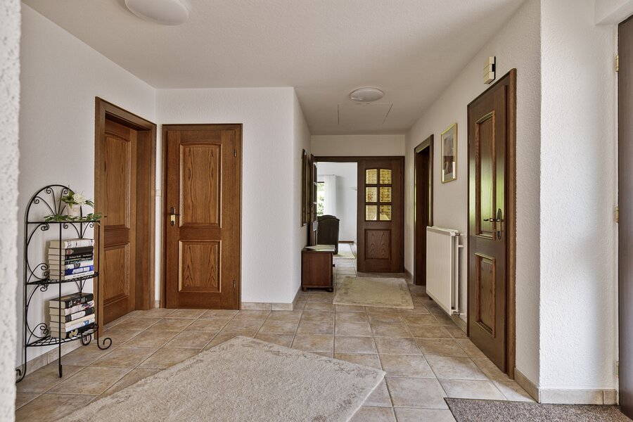 Achter de voordeur bevindt zich een ruime hal waar vandaan alle ruimtes bereikbaar zijn.