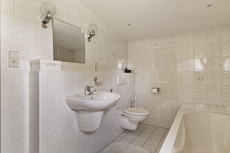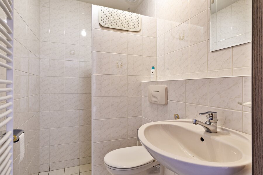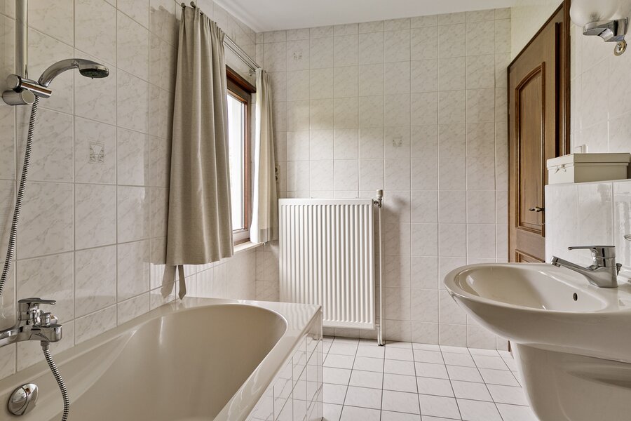 De woning is voorzien van 3 slaapkamers, verschillend van grootte, waarvan 1 met een eigen badkamer. Deze badkamer is voorzien van een ligbad met douche, toilet en dubbele wastafel. Verder is er een tweede badkamer met douche, wastafel en toilet. Tevens is er een separaat gastentoilet aanwezig.