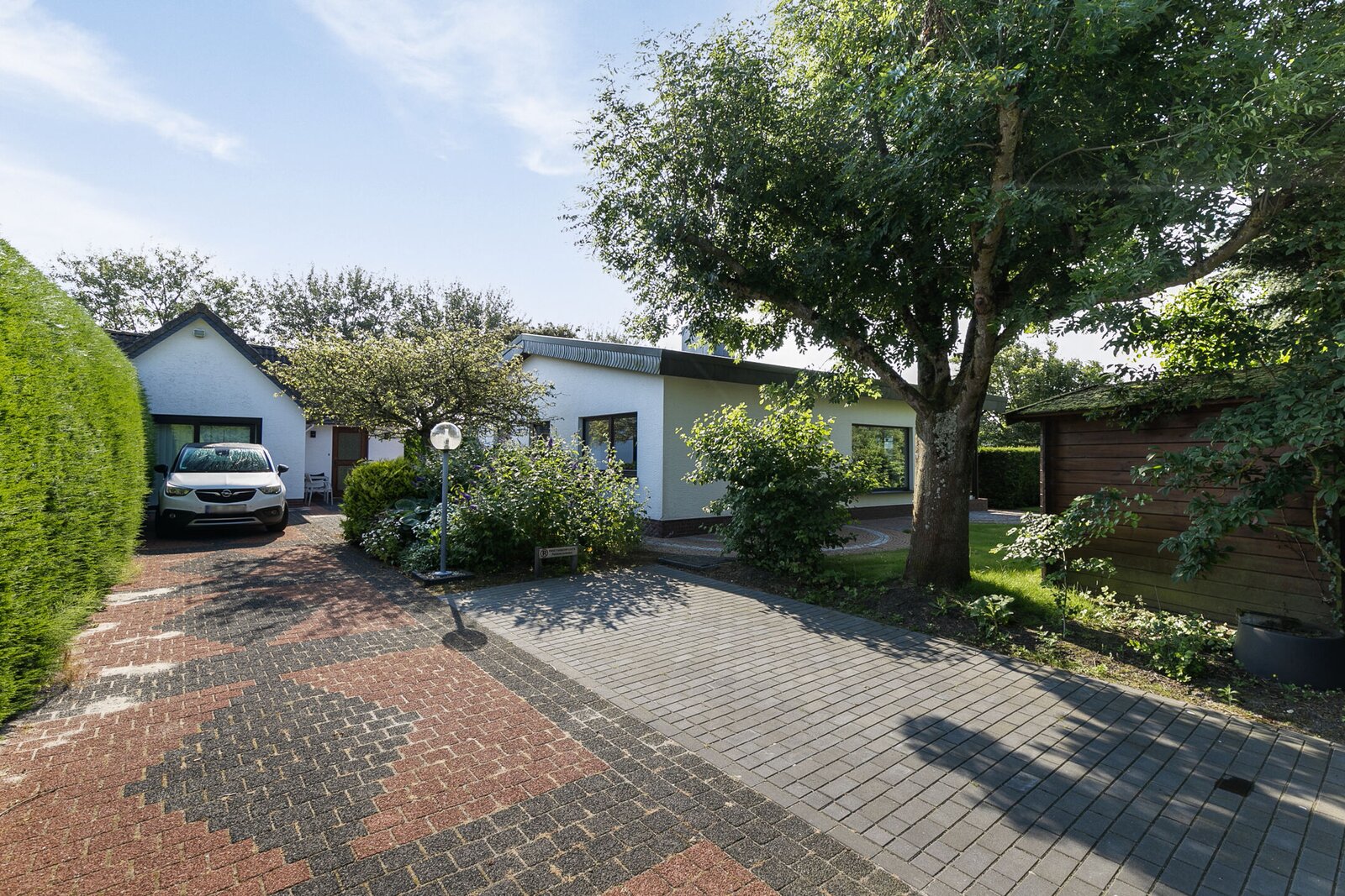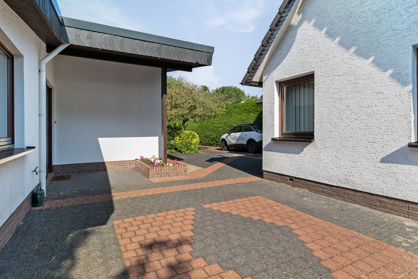 De tuin is omzoomd met groen waardoor uw privacy zeker in de zomermaanden is gewaarborgd. Op eigen terrein is een oprit waar ruimte is voor 2 á 3 auto's.