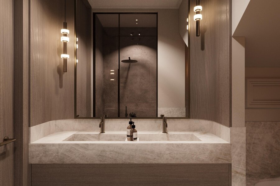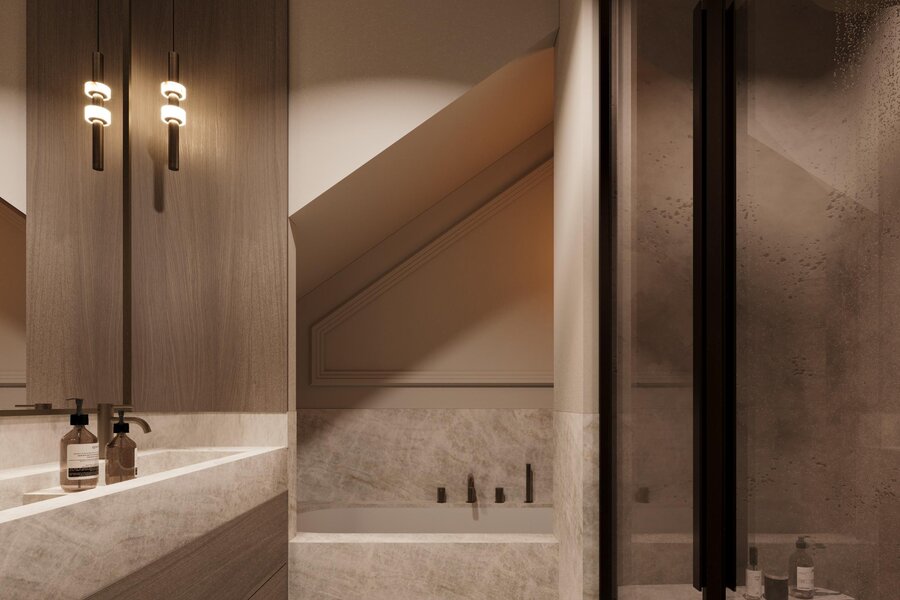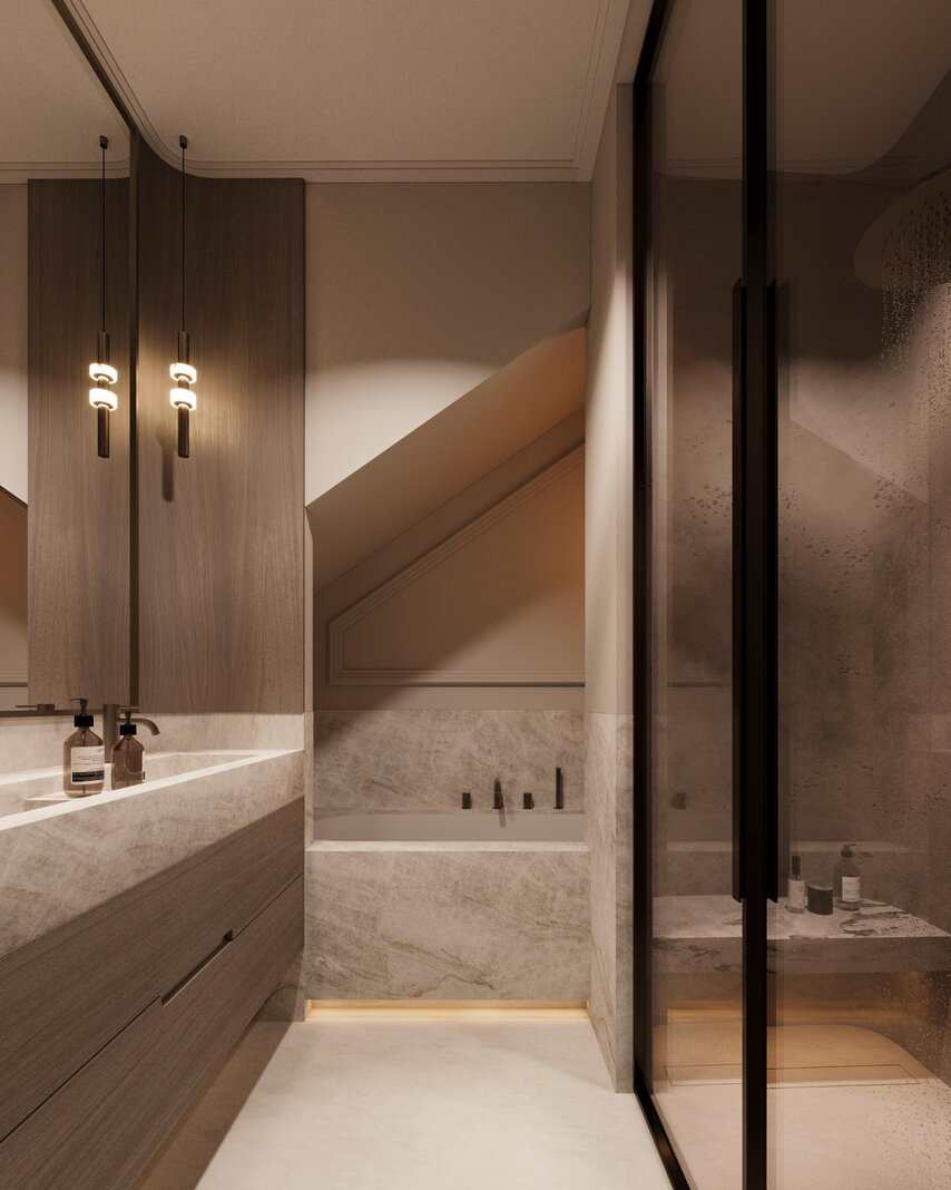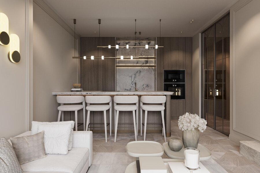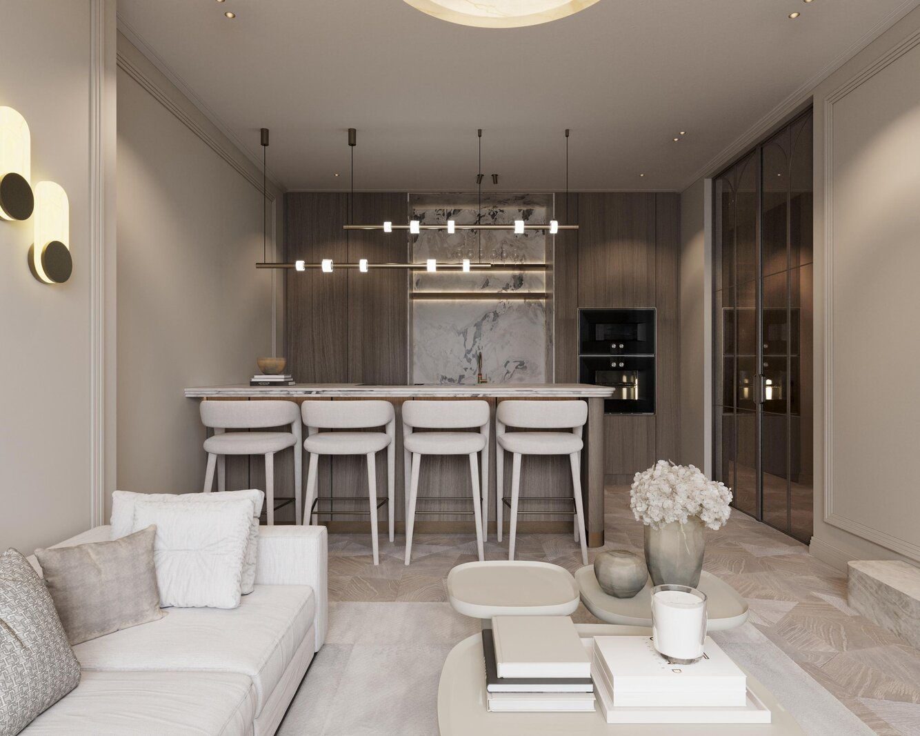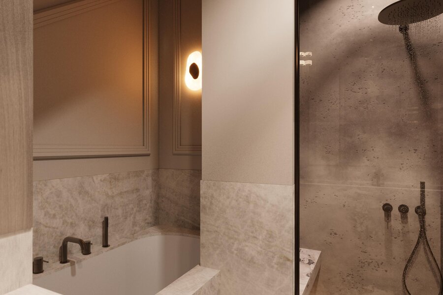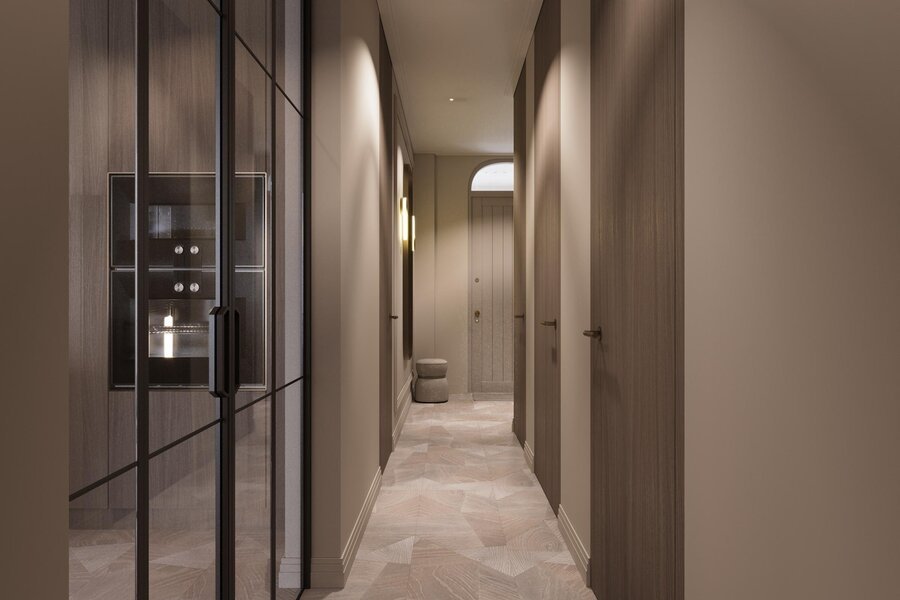 The property is being completely renovated with great attention to detail, preserving its monumental character while introducing a refined, contemporary finish. The residences will be delivered turn-key and are defined by a carefully curated interior concept, featuring premium materials such as natural stone, bespoke woodwork, bronze accents, and sophisticated lighting.