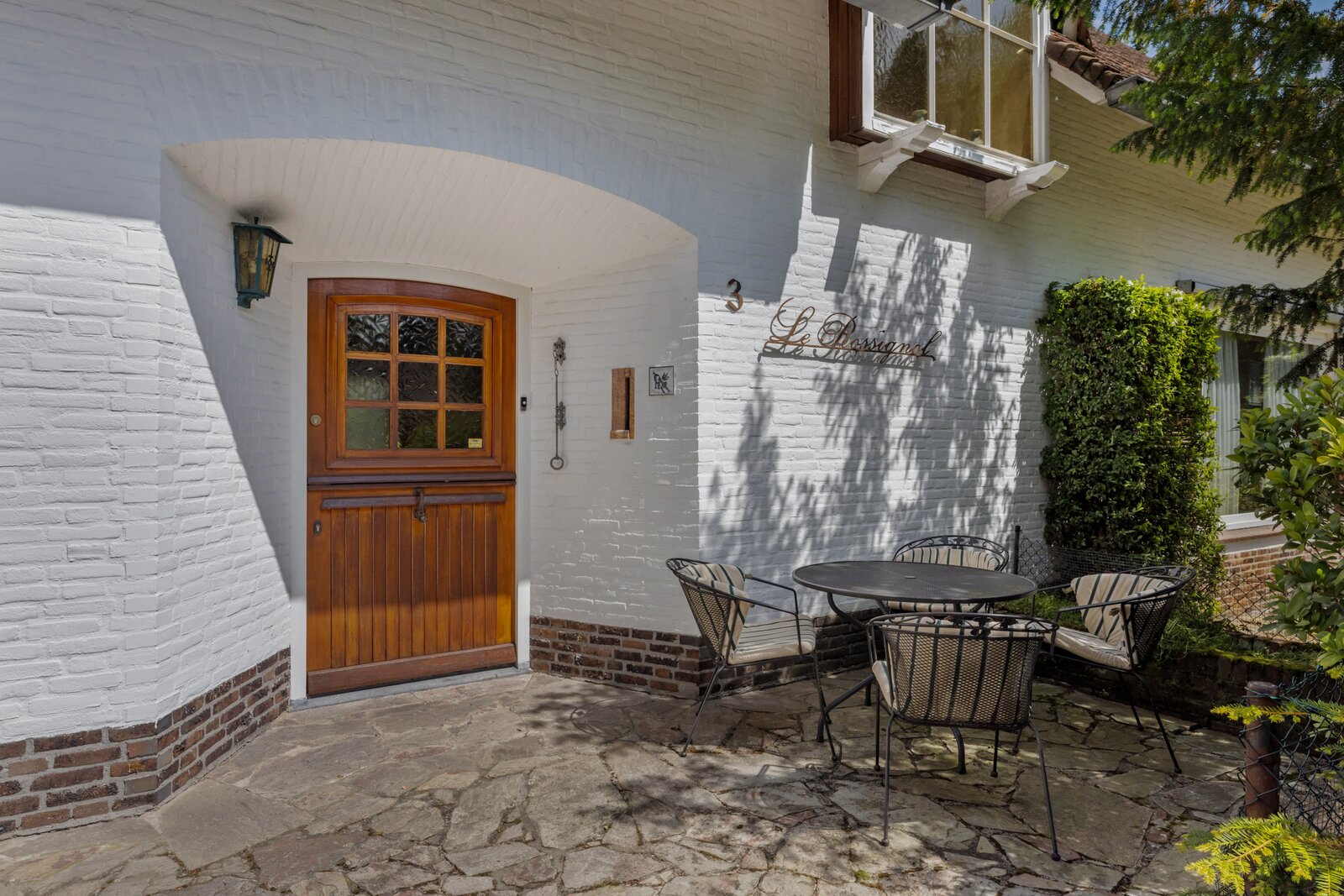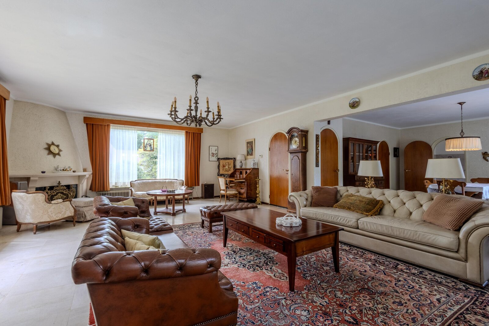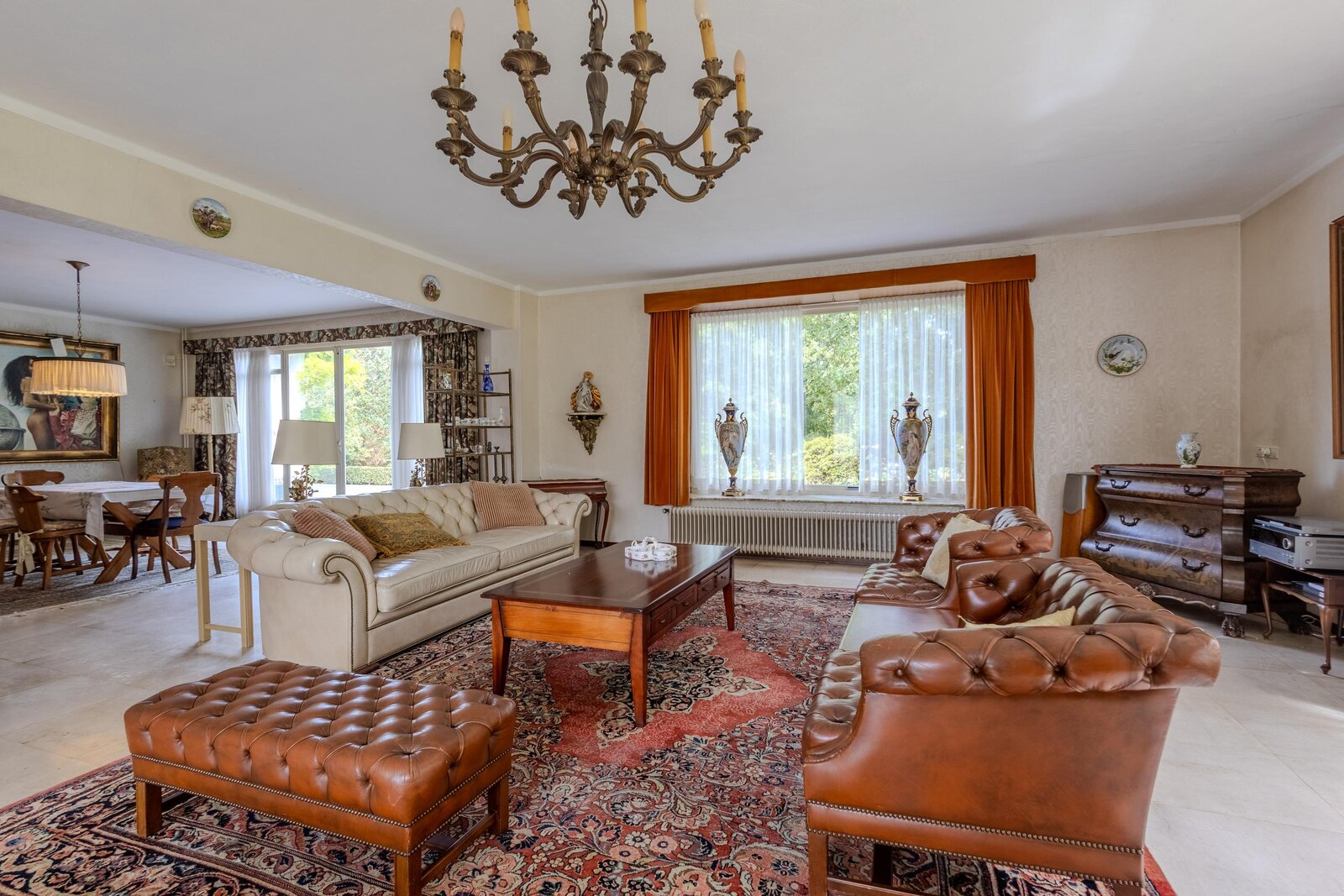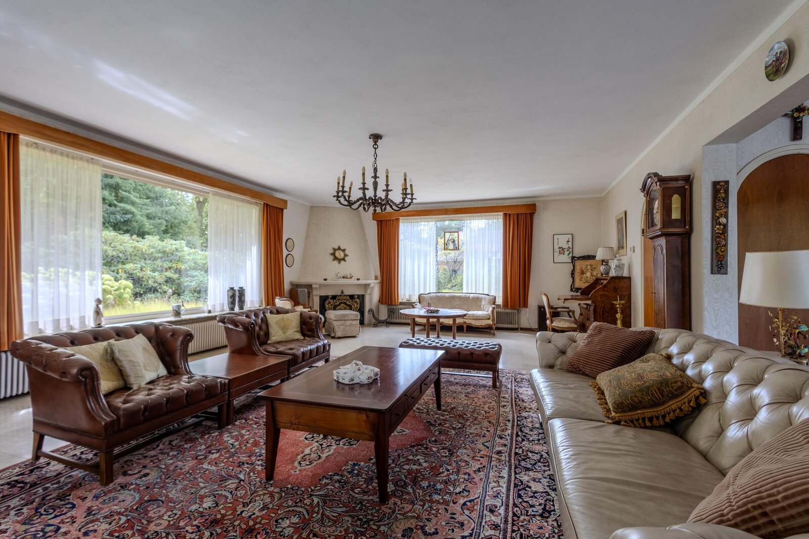 Stap binnen in het leefgedeelte. De living wordt omringd door riante raampartijen waardoor deze ruimte geniet van natuurlijk daglicht in overvloed. Dankzij de openslaande deuren staat het eetgedeelte in directe verbinding met het buitenleven en geniet u van een rustgevend uitzicht op de groene achtertuin. De living is verder voorzien van een tegelvloer en een sfeervolle schouw.