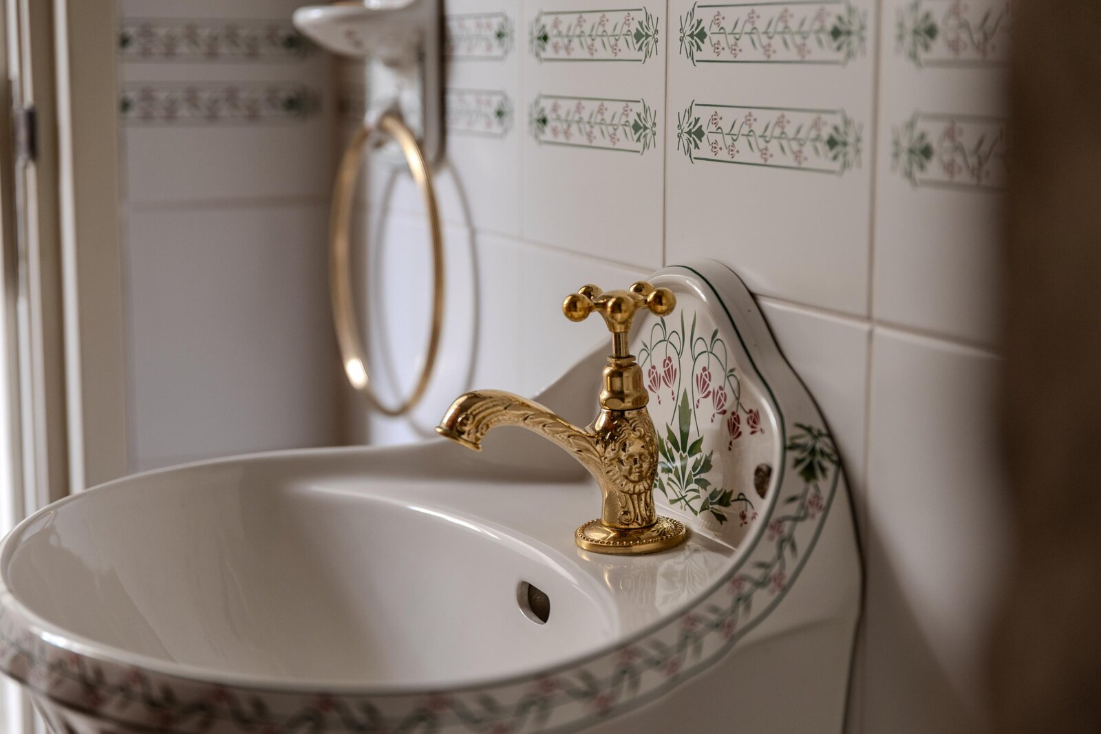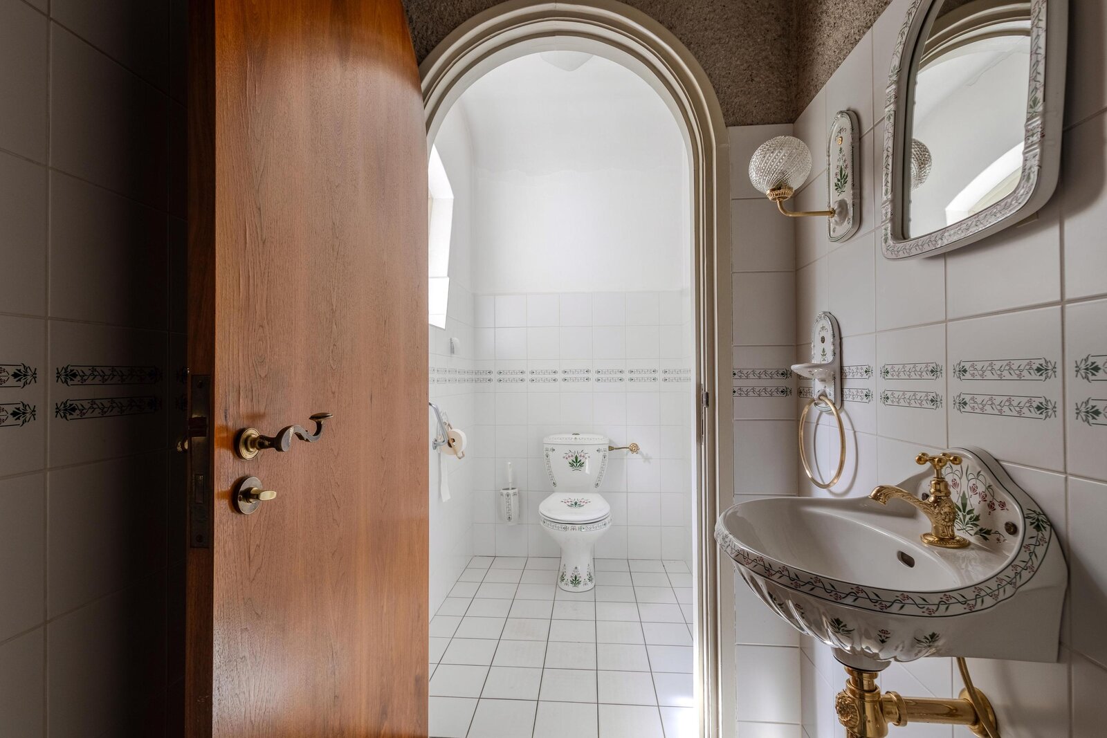 Bij binnenkomst wordt u direct verwelkomd door het eerste karakteristieke detail van deze woning; de klassieke dambordvloer in combinatie met de wenteltrap naar de eerste verdieping. Hier bevindt zich een elegante toiletruimte, voorzien van een authentieke raampartij. Aangrenzend aan de toiletruimte treft u een separate ruimte met fonteintje wat zorgt voor een chique indeling.