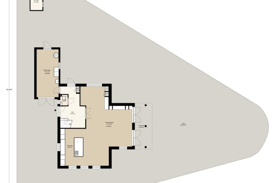 Aan de voorzijde van de woning bevindt zich de moderne Siematic keuken, uitgerust met een royaal kookeiland, inductiekookplaat, een grote koelkast en vriezer en 2 ovens met stoomfunctie. Dankzij de ruime opzet is er volop plaats voor een grote eettafel, waarmee deze ruimte het hart van de woning vormt – ideaal voor kookliefhebbers en gezellige etentjes.