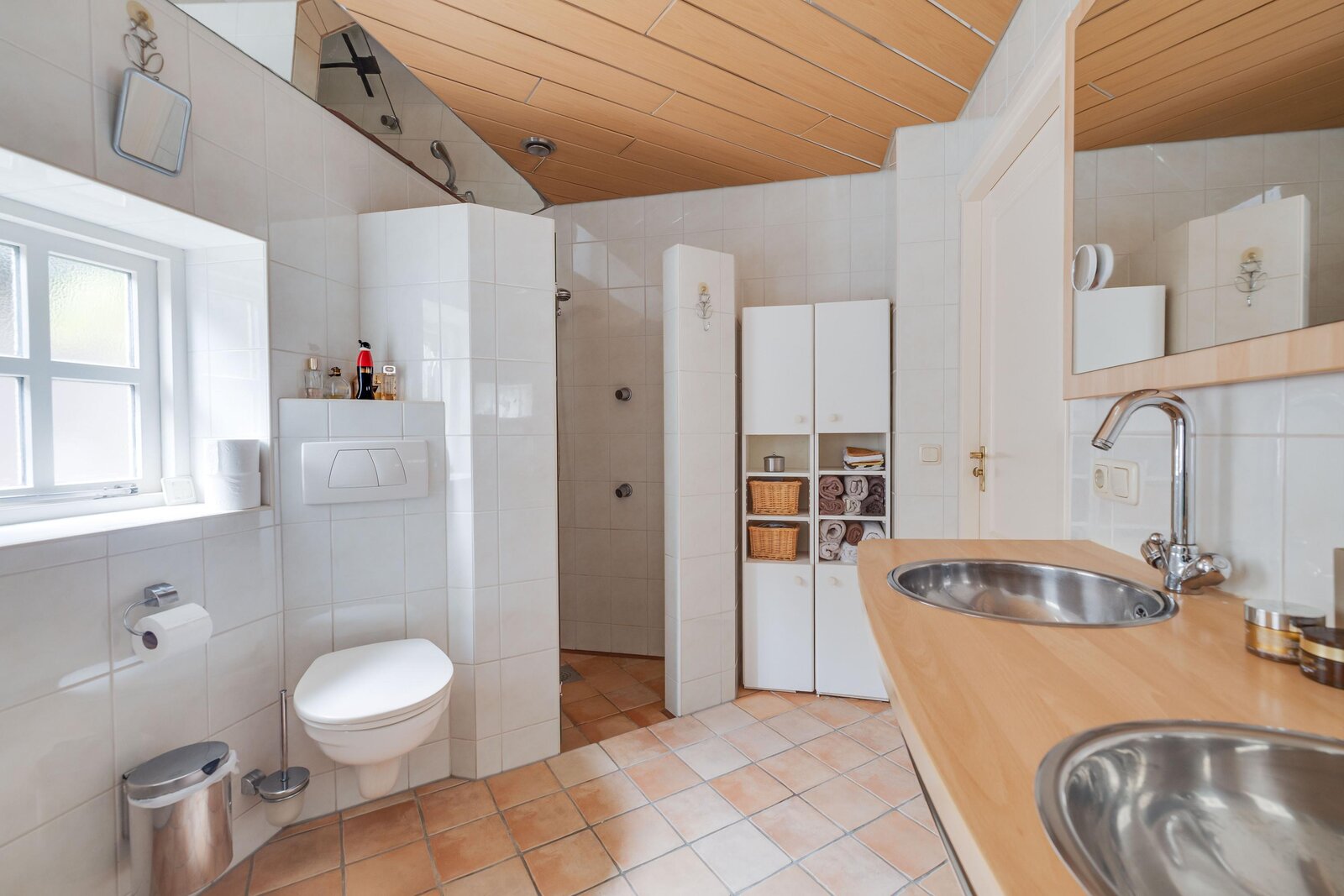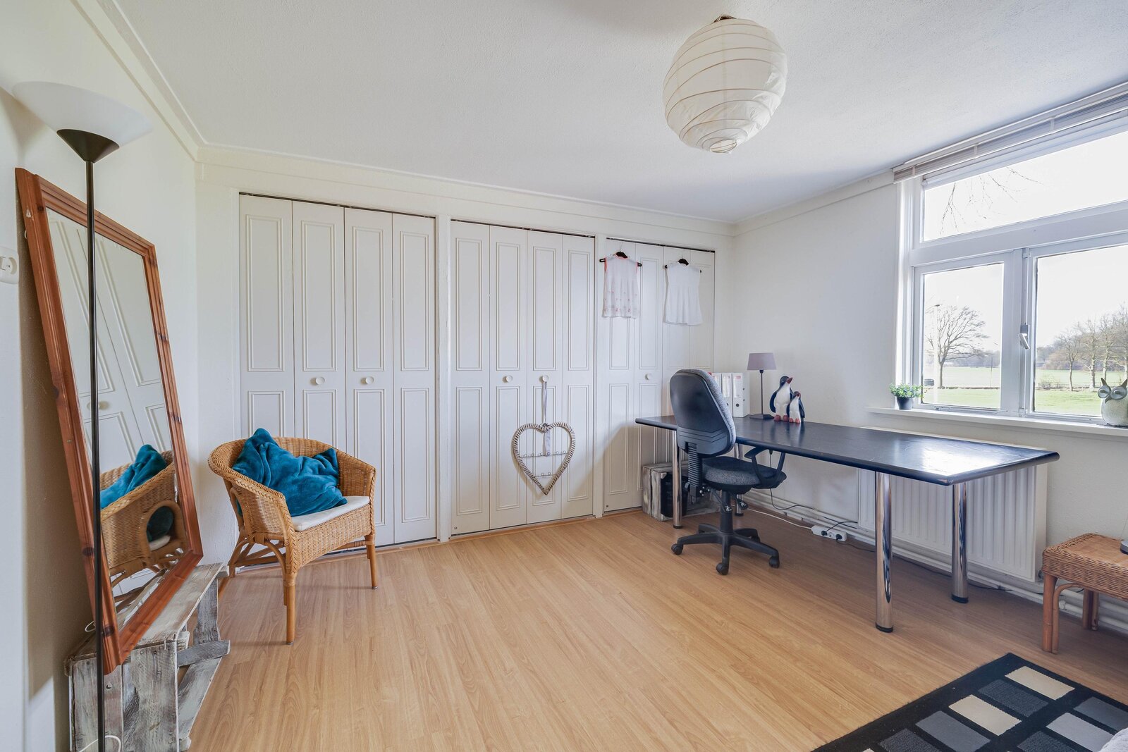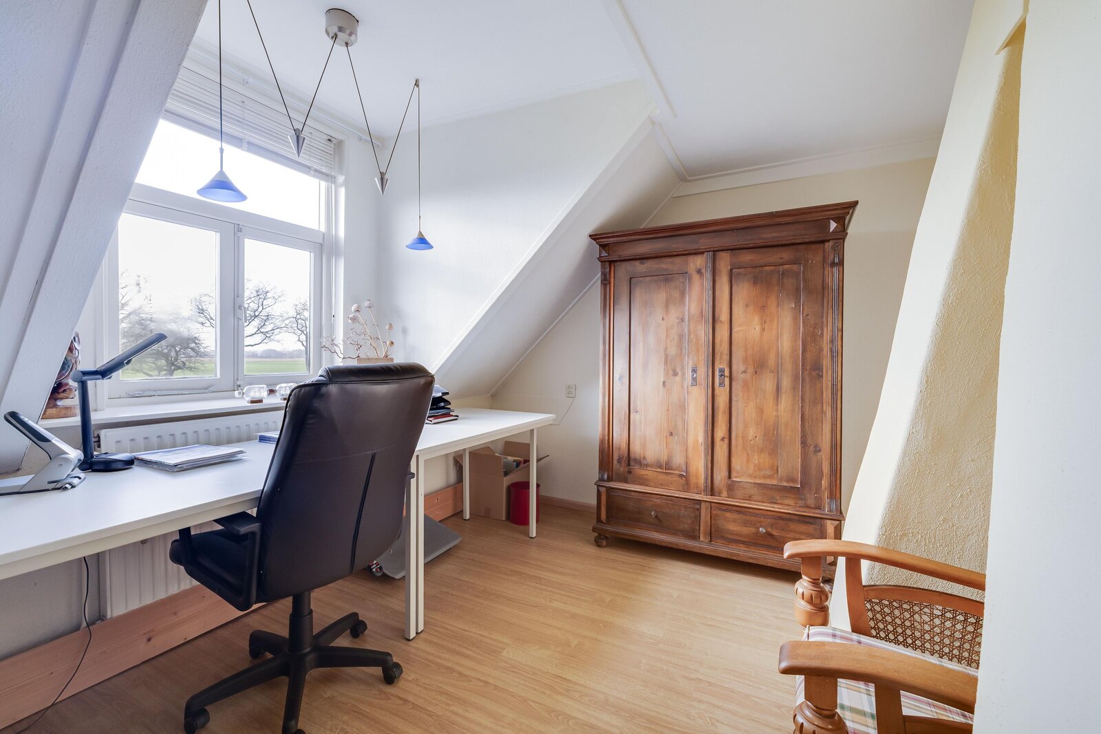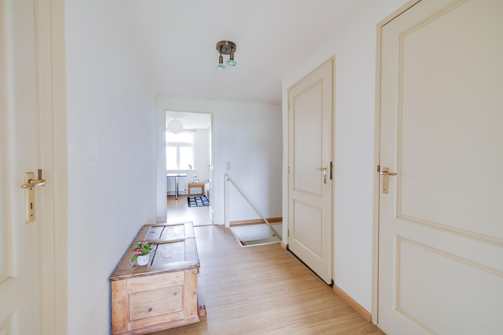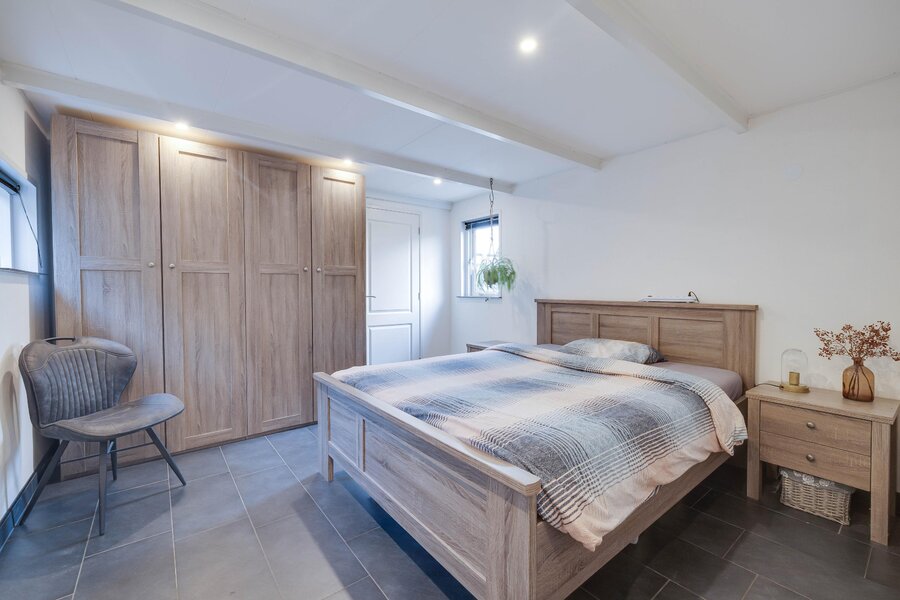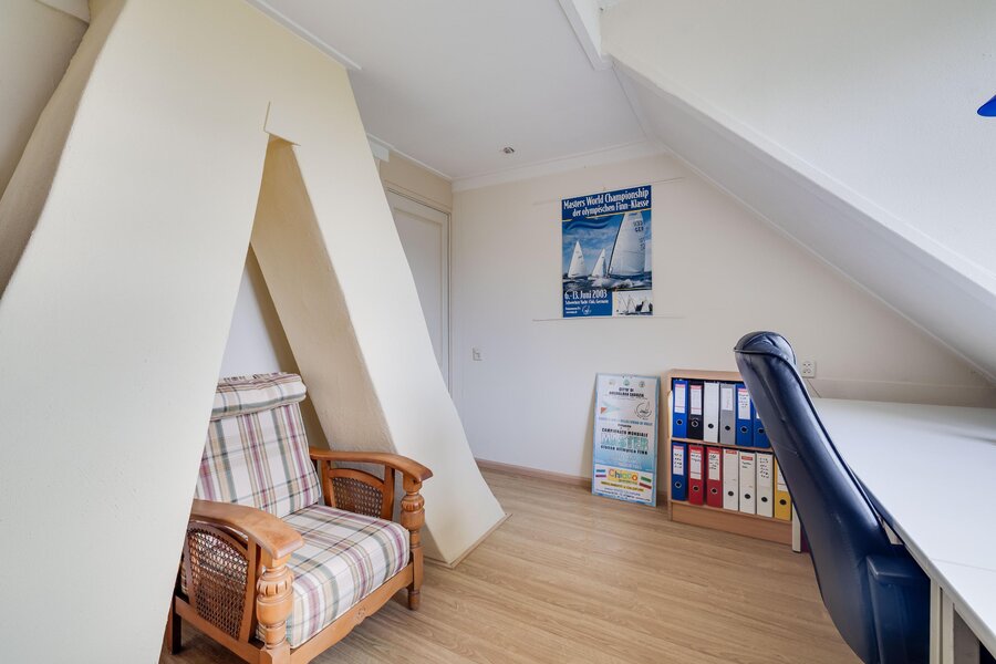 Eerste verdieping: overloop met kast en toilet, drie ruime slaapkamers met kastruimte. Vanuit de multifunctionele ruimte bereikt men de ruime vliering waar meerdere slaapkamers gecreëerd kunnen worden
