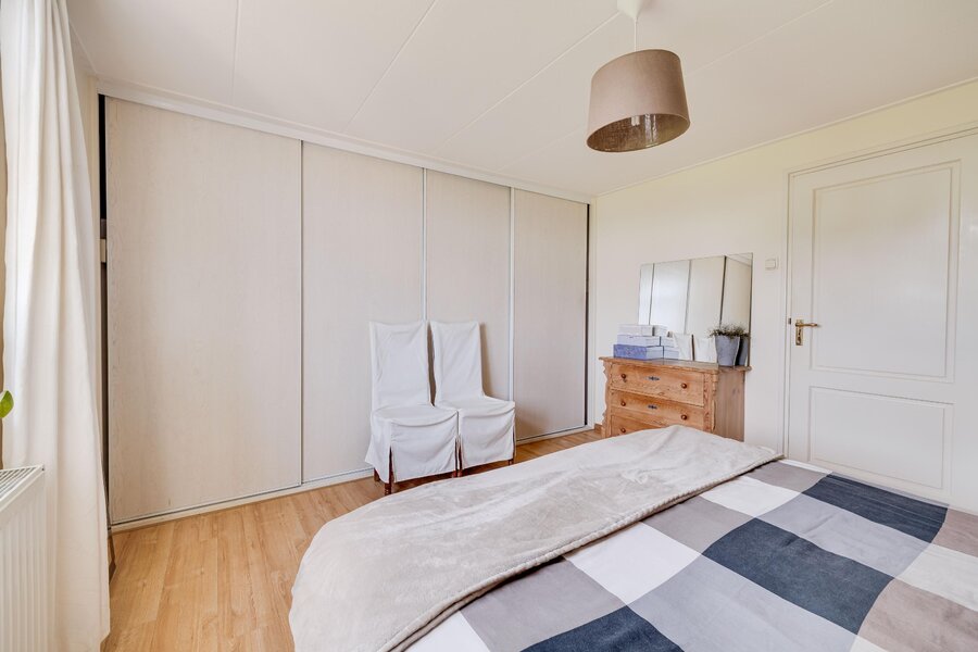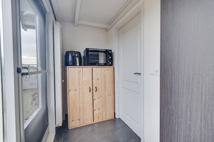 Indeling: entree hal toegang tot de woonkamer met keukenblok. Badkamer met douche, wastafel, toilet en aansluiting wasapparatuur. Slaapkamer met doorloop naar berging/bijkeuken. Doormiddel van een vlizotrap is de bergzolder bereikbaar.