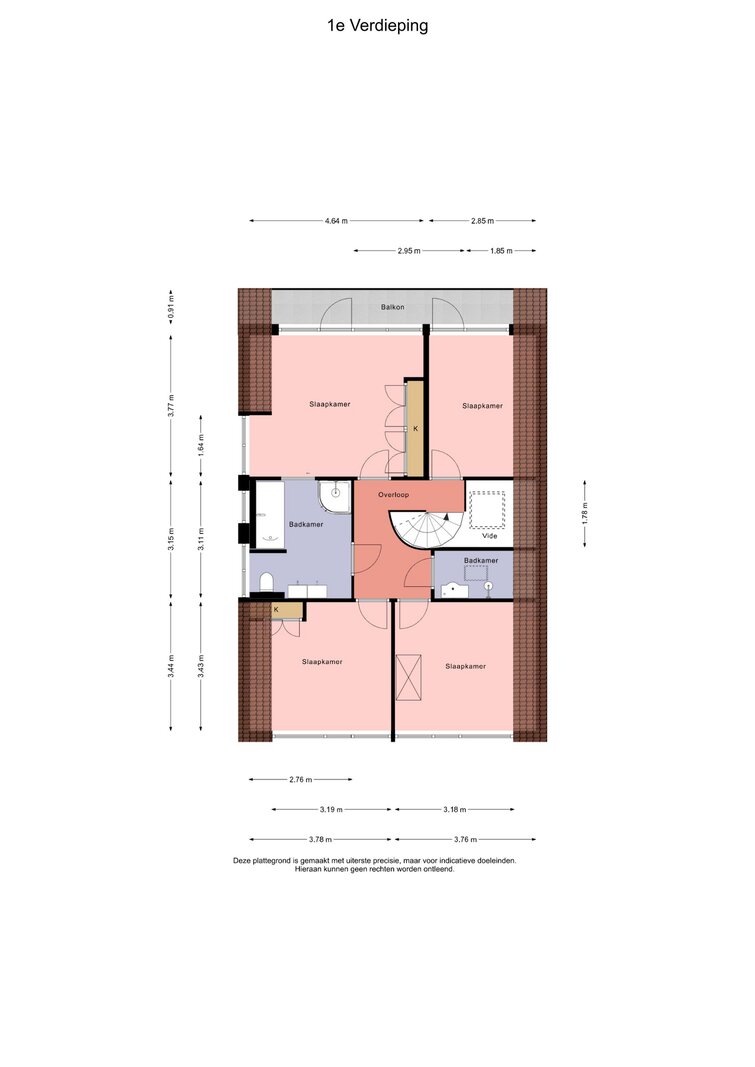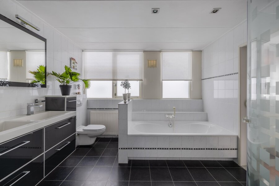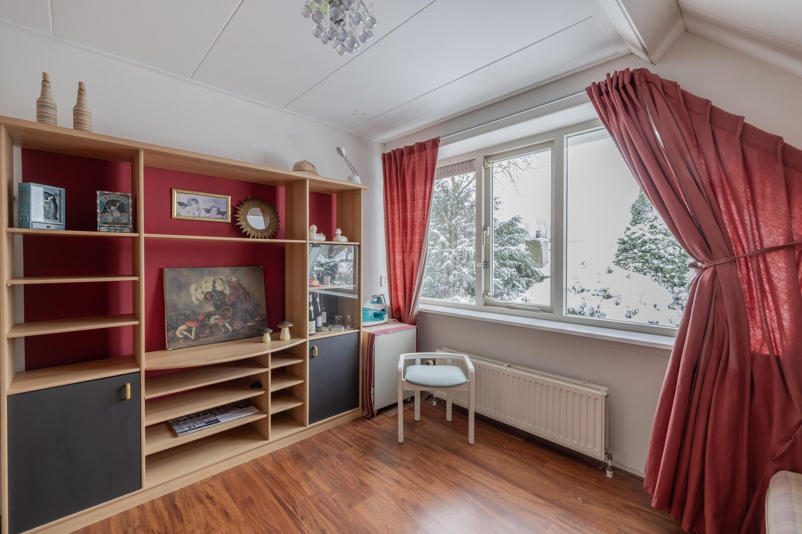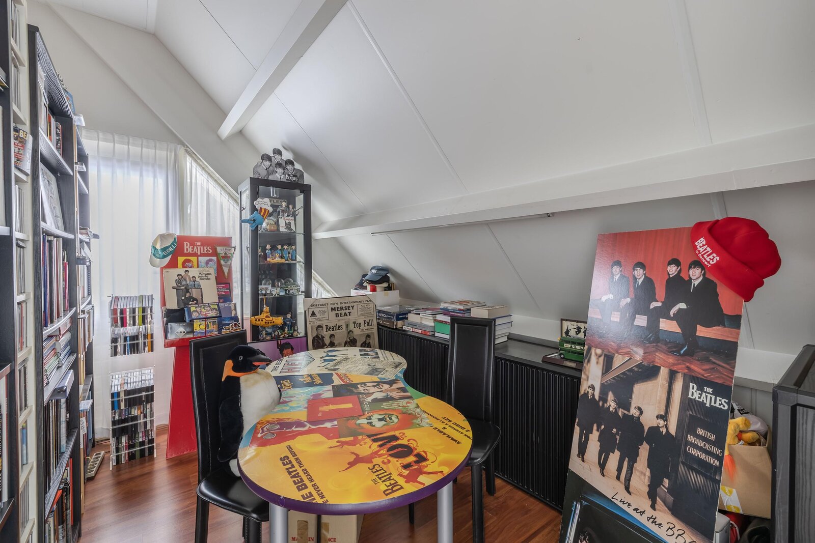 Ruimtelijke overloop met fraai zicht op de entree benedenverdieping. Royale hoofdslaapkamer aan de voorzijde met vaste kasten en directe toegang tot de badkamer voorzien van vloerverwarming, dubbel wastafelmeubel, ligbad, toilet en douche. Aan de voorzijde bevindt zich nog een slaap- of hobbykamer. Beide kamers aan de voorzijde hebben direct toegang tot het balkon over de gehele breedte van de woning. Aan de achterzijde zijn twee ruime slaapkamers gelegen, waarvan één met toegang (middels een vlizotrap) tot de royale bergvliering (stahoogte) met twee hang/legkasten. De tweede badkamer is uitgerust met een douche, wastafel en aansluitingen voor wasmachine en droger.