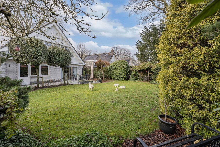 De tuin rondom de woning is fraai aangelegd en is voorzien van een computergestuurde beregeningsinstallatie.
