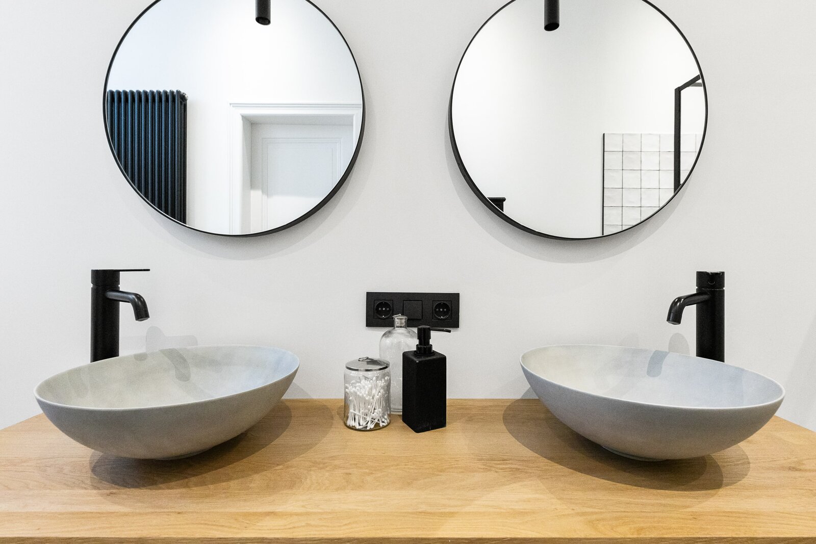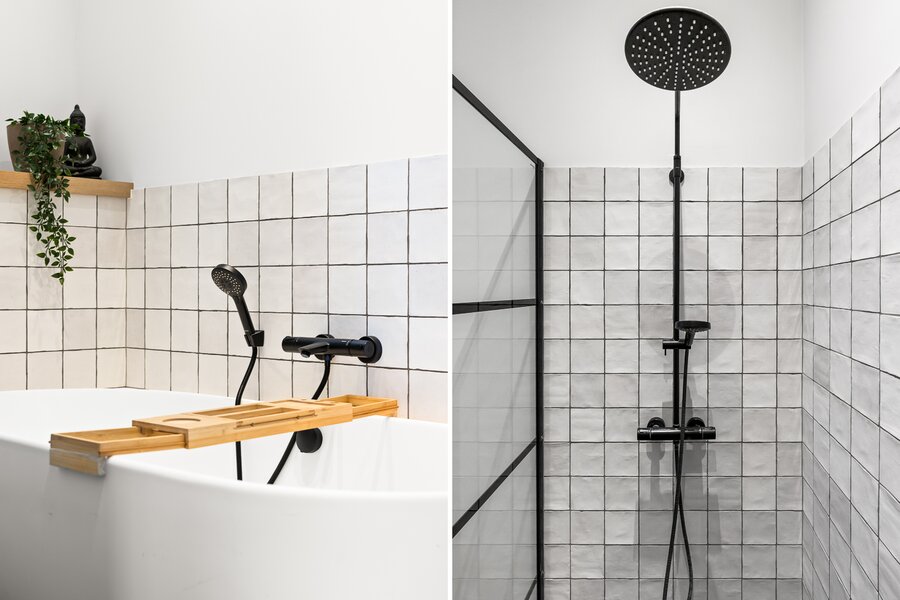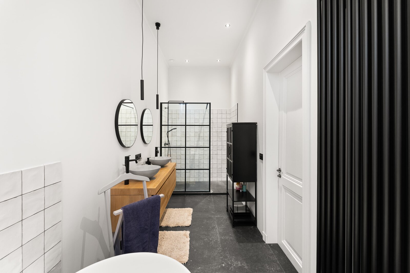 De ruime master-bathroom met ruim ligbad en luxe afwerking is te bereiken via de overloop.