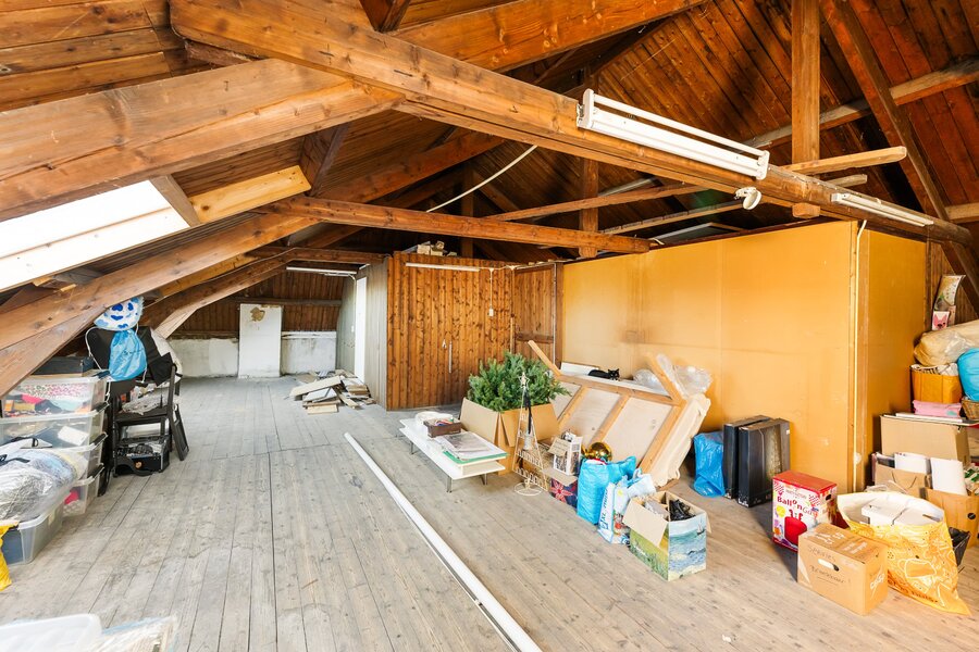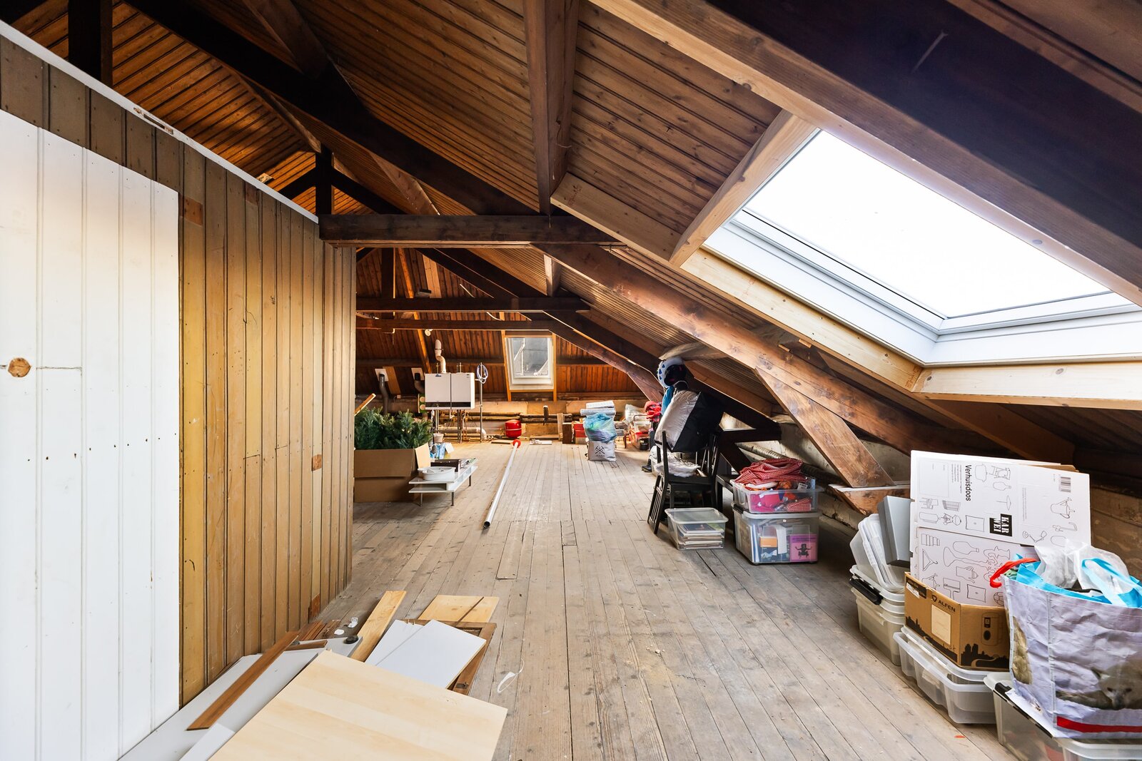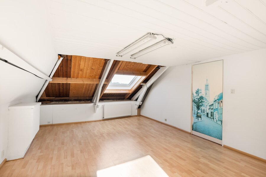 Een royale zolderverdieping met mogelijkheden voor een prachtige slaapverdieping of gewoon lekker veel bergruimte.