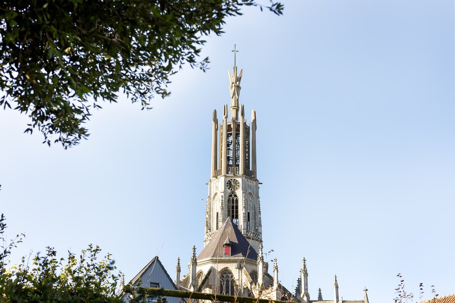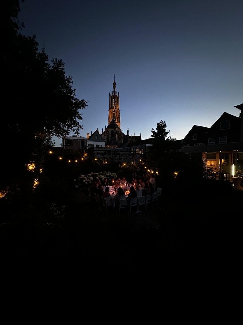 Een prachtige ruimte met magnifiek uitzicht over de daken van de historische gebouwen en zicht op de Basiliek en de Molen.