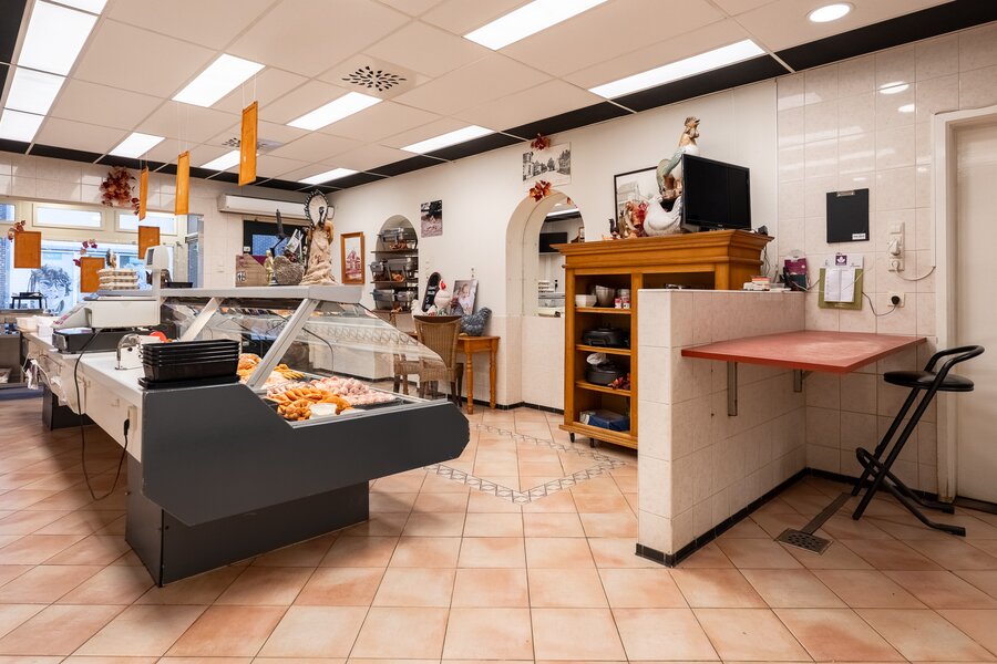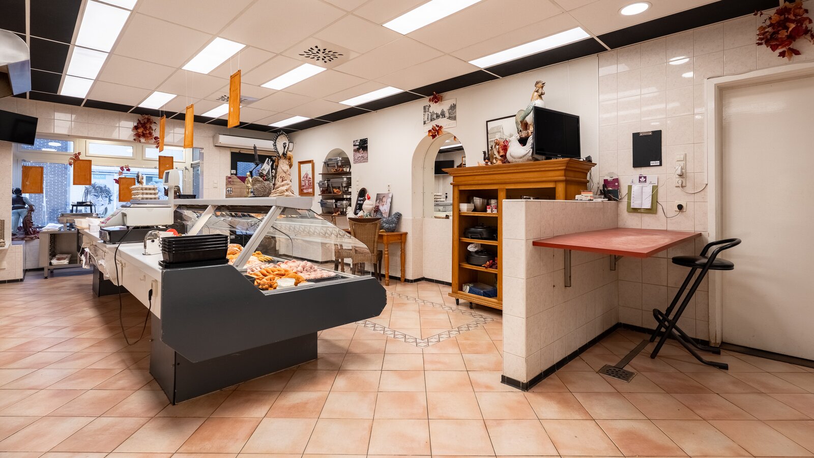 De commerciële ruimte op de begane grond heeft een oppervlakte van circa 93 m² en wordt momenteel gebruikt als poeliersbedrijf. Dankzij het grote etalageraam valt het daglicht prachtig binnen en valt uw bedrijf direct op. De ruimte is praktisch ingericht met een tegelvloer, systeemplafond en beschikt over een koelcel.