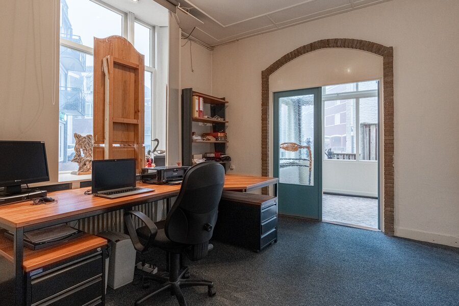Aan de voorkant van het pand vindt u nog een extra werk- of studeerkamer én een prachtige serre. Deze kunnen desgewenst eenvoudig bij de winkel worden betrokken, waardoor extra etalage- en werkruimte ontstaat.