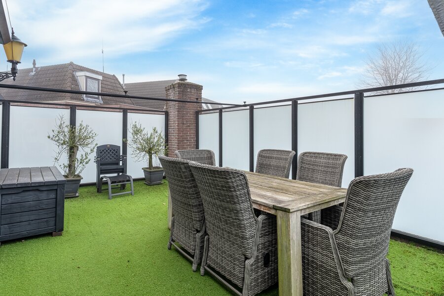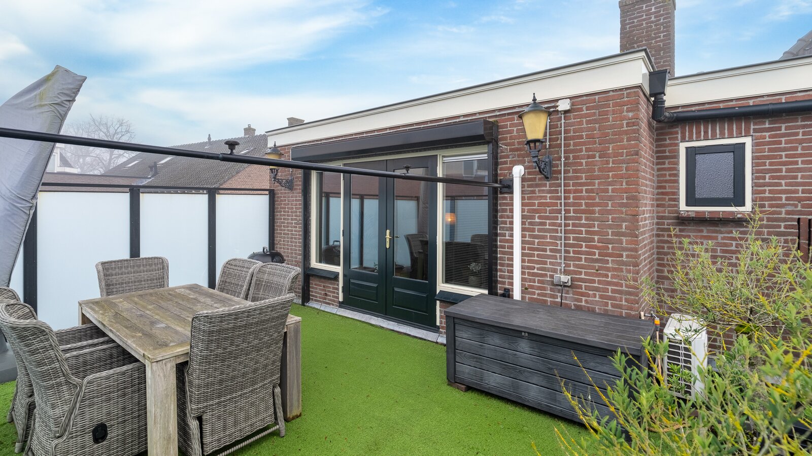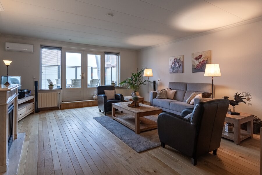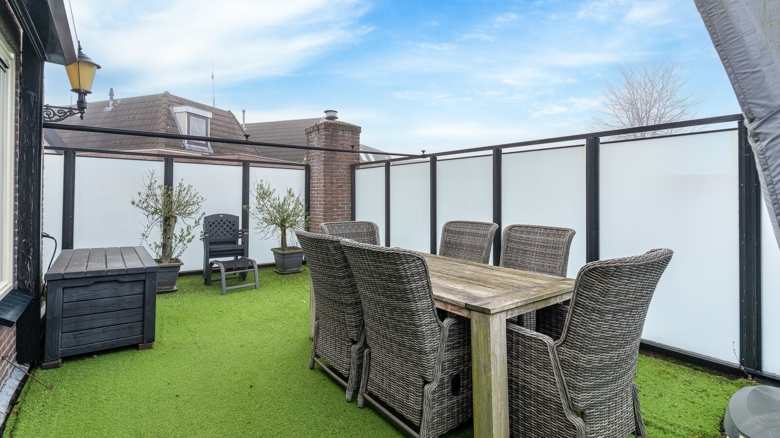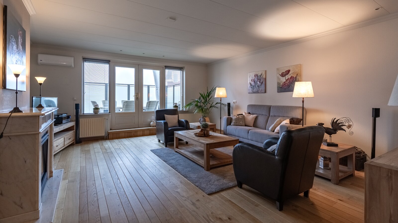 De sfeervolle woonkamer is voorzien van een houten vloer, airconditioning, gaskachel en openslaande deuren naar het heerlijke dakterras van circa 30 m². De hoogwaardige woonkeuken in hoekopstelling heeft een eigen kastenwand, moderne inbouwapparatuur en volop ruimte voor een royale eettafel. De luxe badkamer bevindt zich op de begane grond en is uitgerust met een inloopdouche, sunshower, toilet, dubbele wastafel, vloerverwarming, designradiator en aansluiting voor de wasmachine.