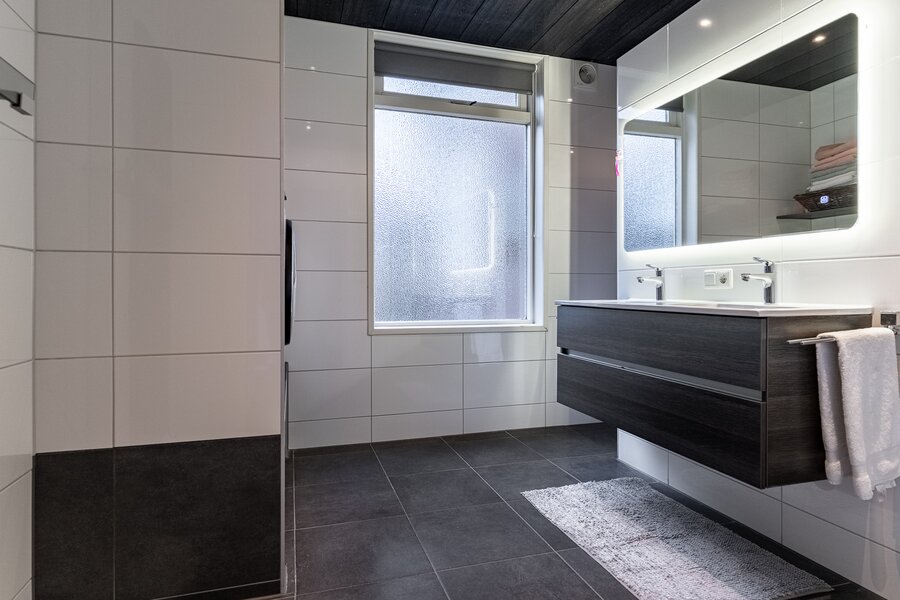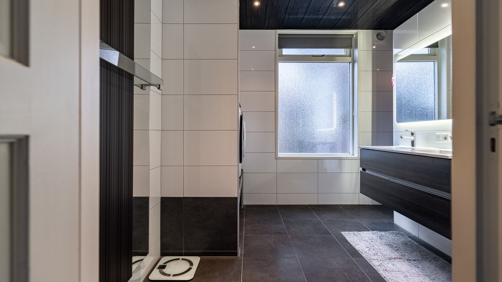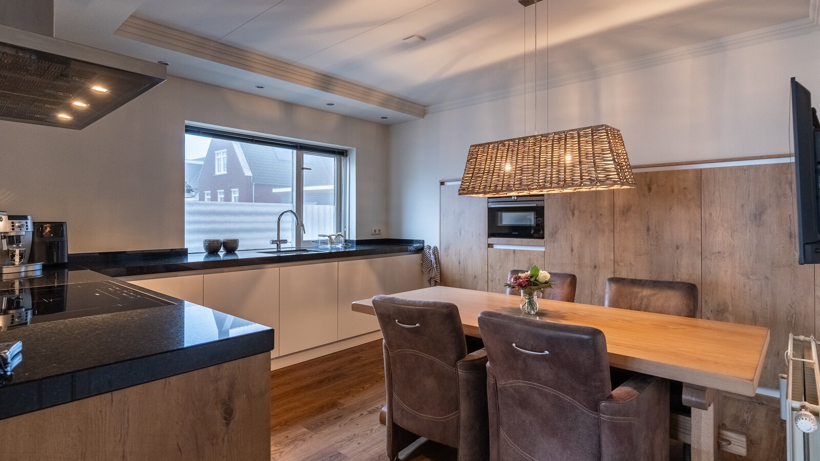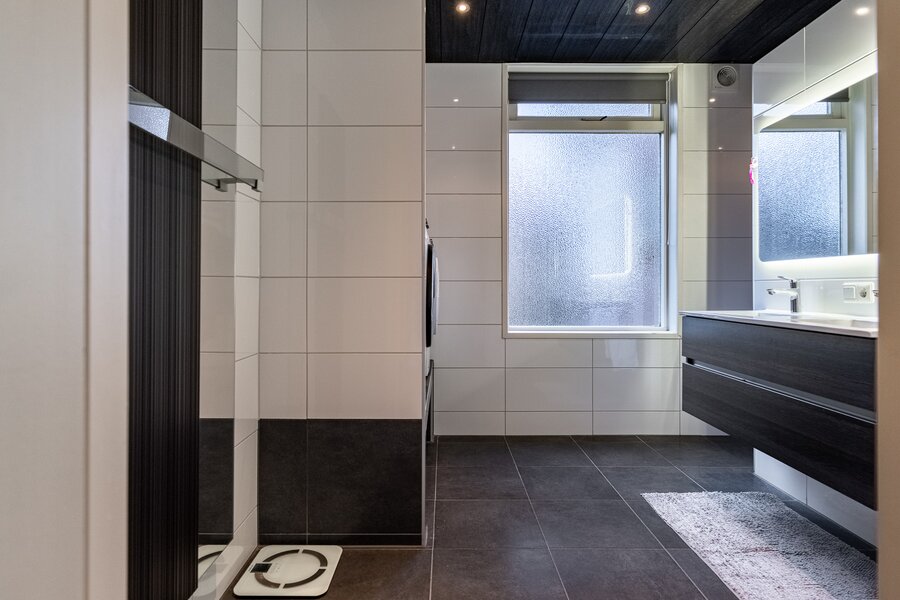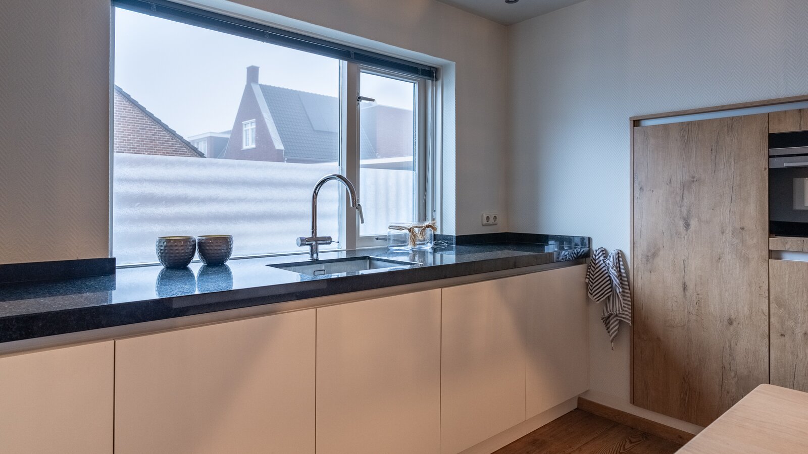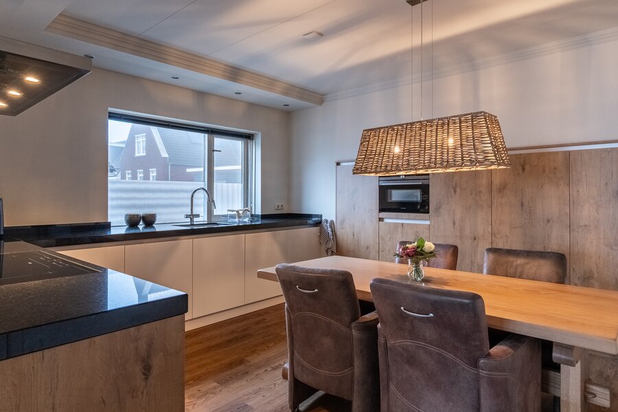 De sfeervolle woonkamer is voorzien van een houten vloer, airconditioning, gaskachel en openslaande deuren naar het heerlijke dakterras van circa 30 m². De hoogwaardige woonkeuken in hoekopstelling heeft een eigen kastenwand, moderne inbouwapparatuur en volop ruimte voor een royale eettafel. De luxe badkamer bevindt zich op de begane grond en is uitgerust met een inloopdouche, sunshower, toilet, dubbele wastafel, vloerverwarming, designradiator en aansluiting voor de wasmachine.