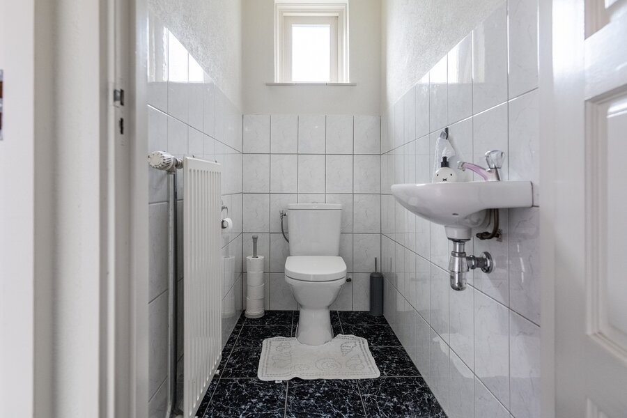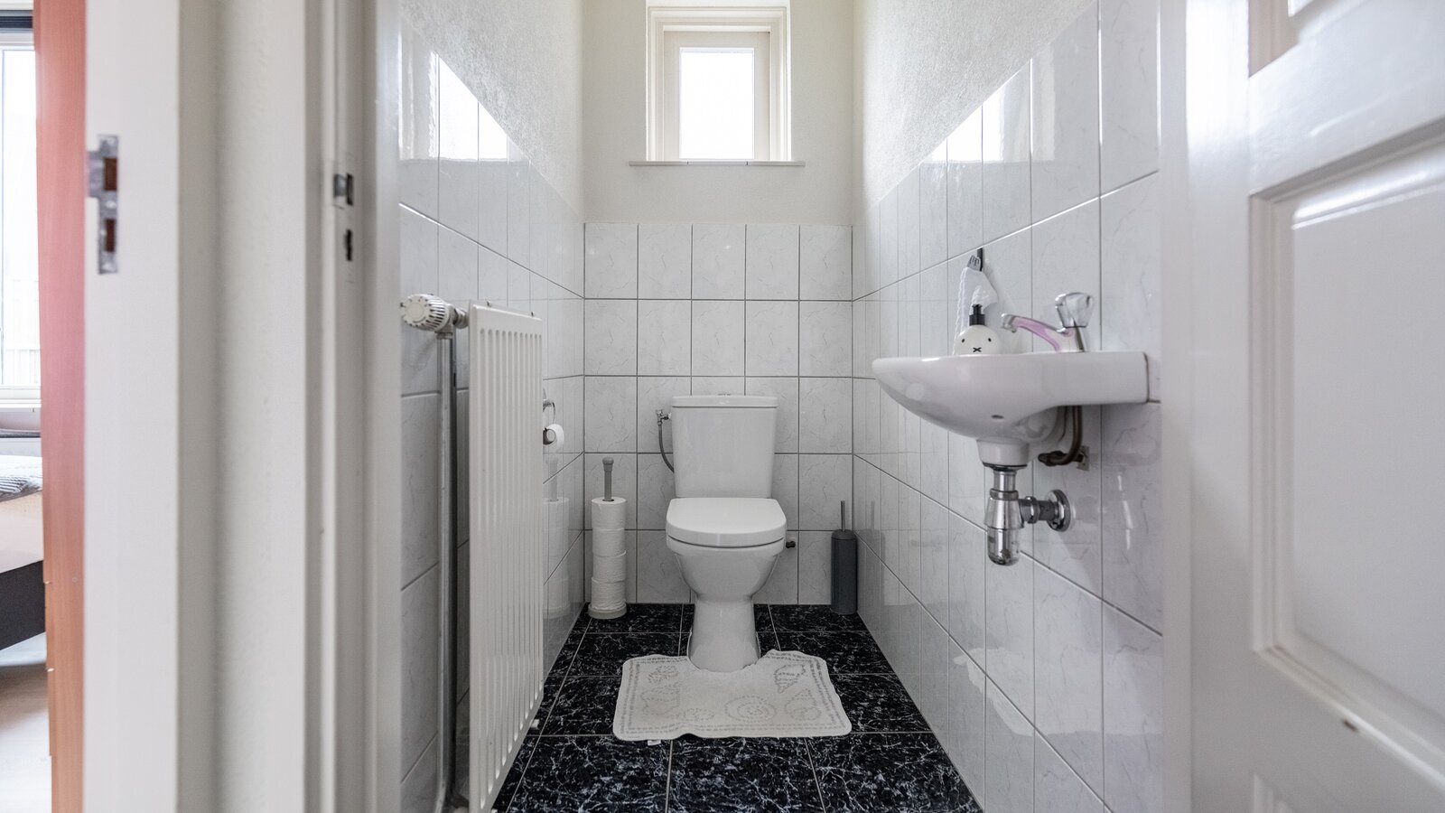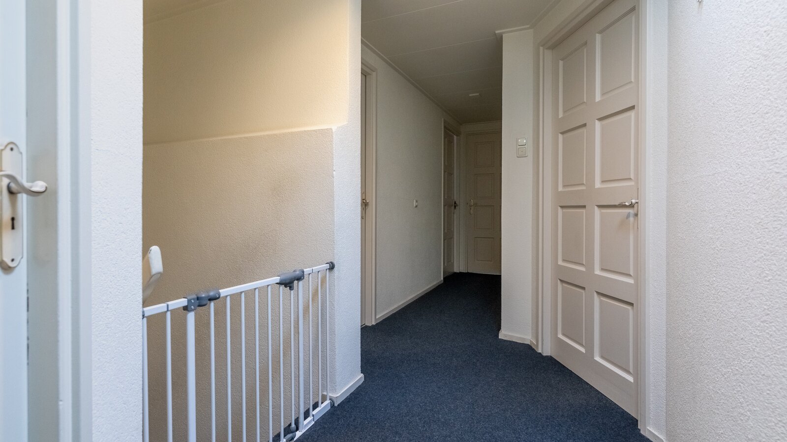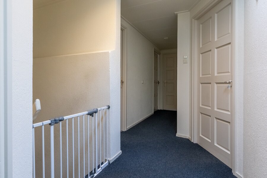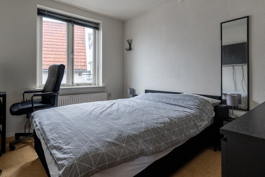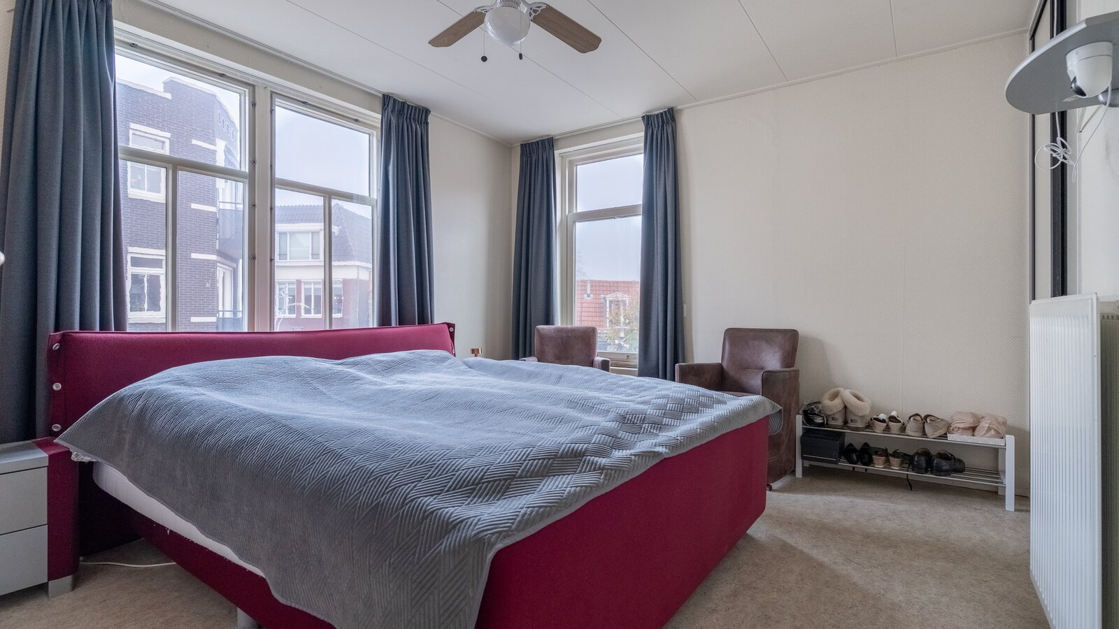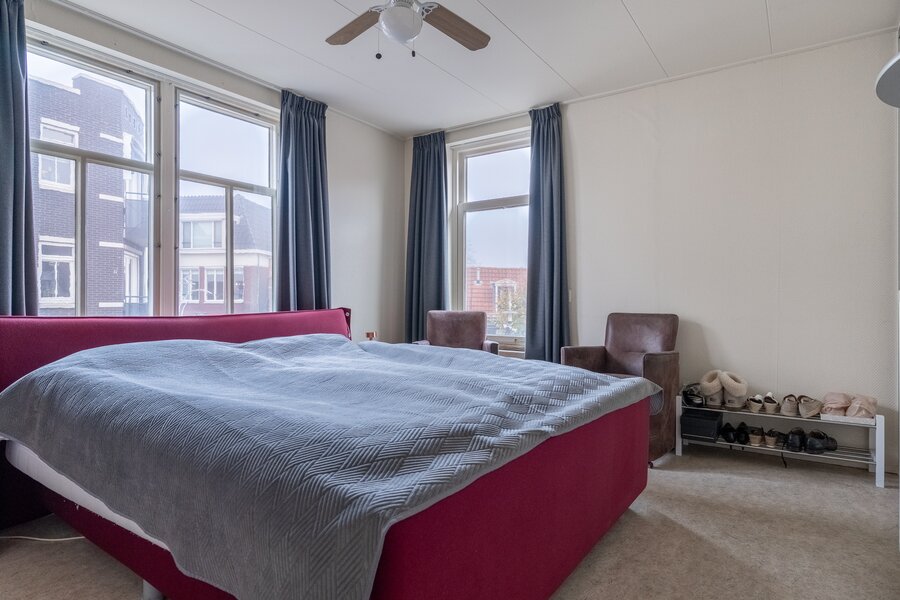 De bovenwoning heeft een eigen opgang en een verrassend ruime indeling. De overloop biedt toegang tot een separaat toilet, drie royale slaapkamers en de lichte woonkamer met open keuken. De master bedroom beschikt over inbouwkasten.