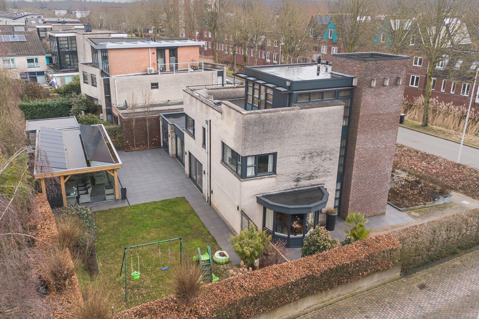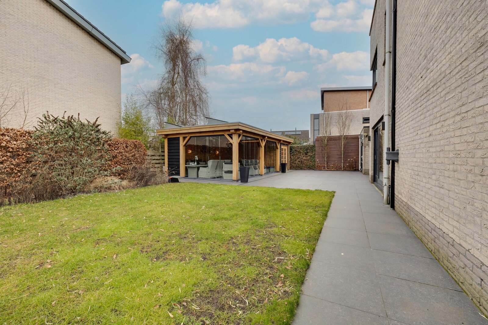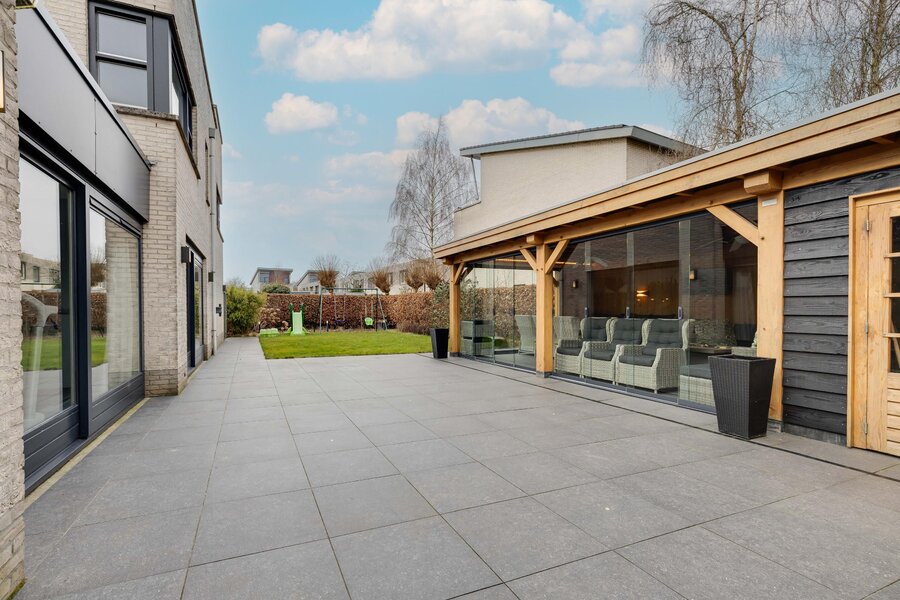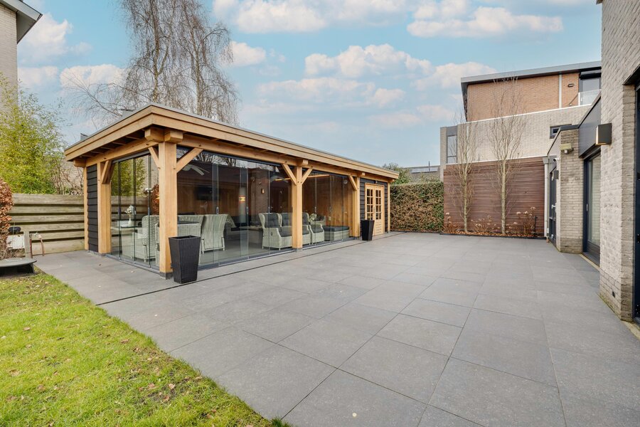 Tuin en Veranda: De woning beschikt over een heerlijke tuin die volop privacy biedt. De absolute blikvanger is de prachtige, hoogwaardig afgewerkte en volledig afsluitbare veranda (ca. 48 m²). Dit is feitelijk een tuinkamer waar u van het vroege voorjaar tot het late najaar kunt genieten van het buitenleven, ongeacht het weer. Een heerlijk verlengstuk van uw woonkamer!