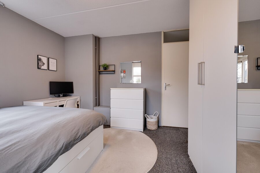 Tweede verdieping: Een vaste trap leidt naar de tweede verdieping. Hier vindt u een overloop die toegang geeft tot een verrassend ruime vijfde slaapkamer met toegang tot een balkon. Tevens bevindt zich op deze etage een aparte technische ruimte met de cv-opstelling en de aansluitingen voor wasapparatuur.