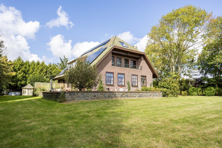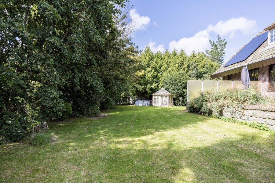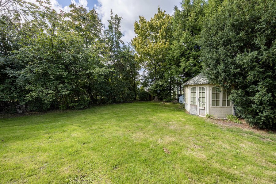 Rondom het landhuis strekt zich een royale tuin uit, aangelegd door een hovenier als landschapstuin met groot gazon en volwassen bomen die privacy en beschutting bieden. Het ruime L-vormige terras ligt ideaal op de zon: van de eerste ochtendstralen tot de avondzon kunt u hier in alle rust genieten. Dankzij de royale afmetingen van het perceel zijn er bovendien volop mogelijkheden voor eigen invulling, zoals een moestuin, voedselbos of zelfs een zwembad.
