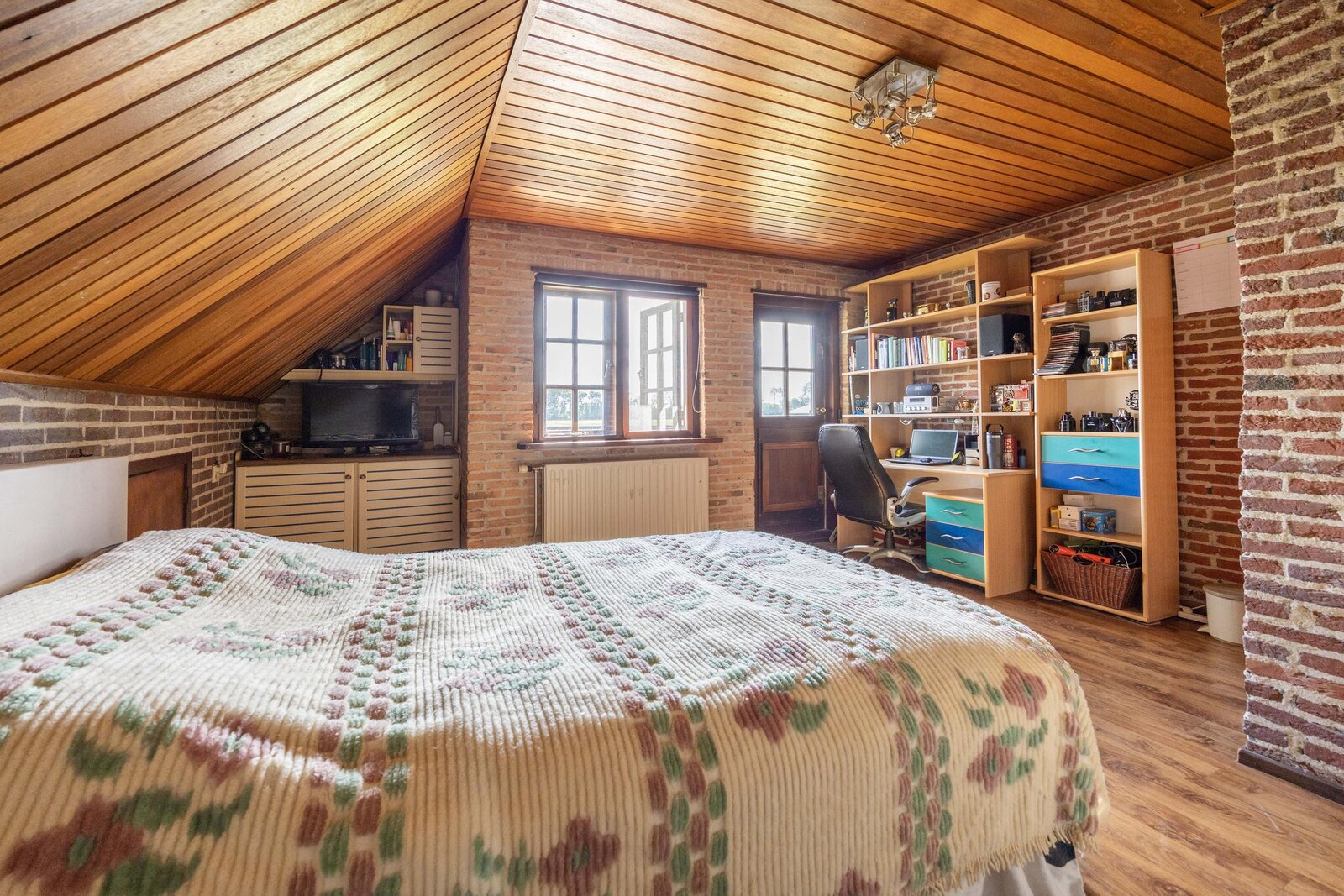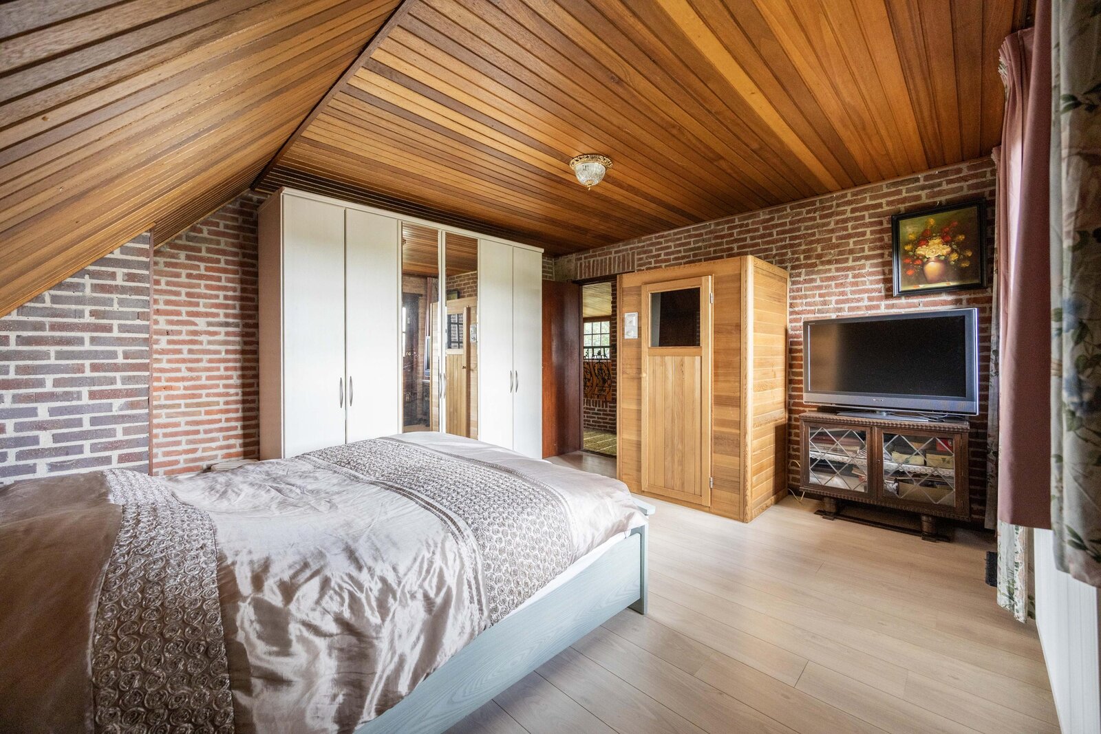 Ook deze verdieping biedt de mogelijkheid om als appartement te worden gebruikt. De vloer hier is voorzien van geluidsisolatie, wat de verdieping extra geschikt maakt voor een eigen woonunit of een apart verblijf.