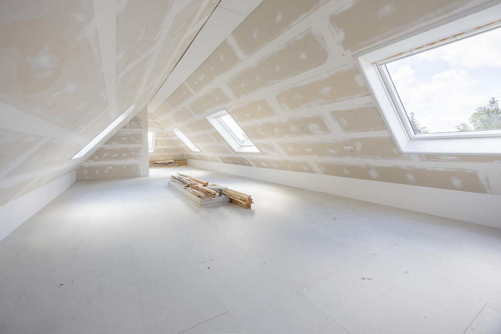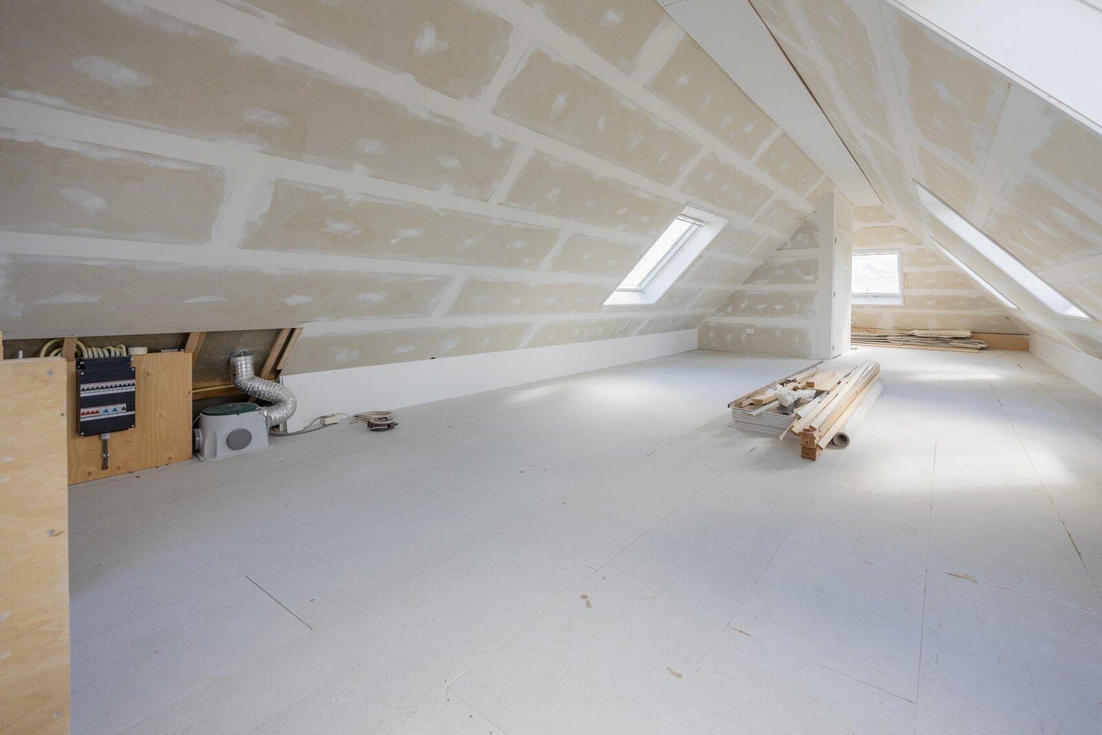 Via een vaste trap bereikt u de tweede verdieping, een royale ruimte die klaarstaat voor verdere afwerking. Het dak is van binnenuit geïsoleerd en maar liefst zes dakramen zorgen voor een overvloed aan daglicht. Met een nokhoogte van ruim 2,80 meter is er volop gelegenheid om extra slaapkamers, een praktische werkruimte of een andere functionele invulling te realiseren.