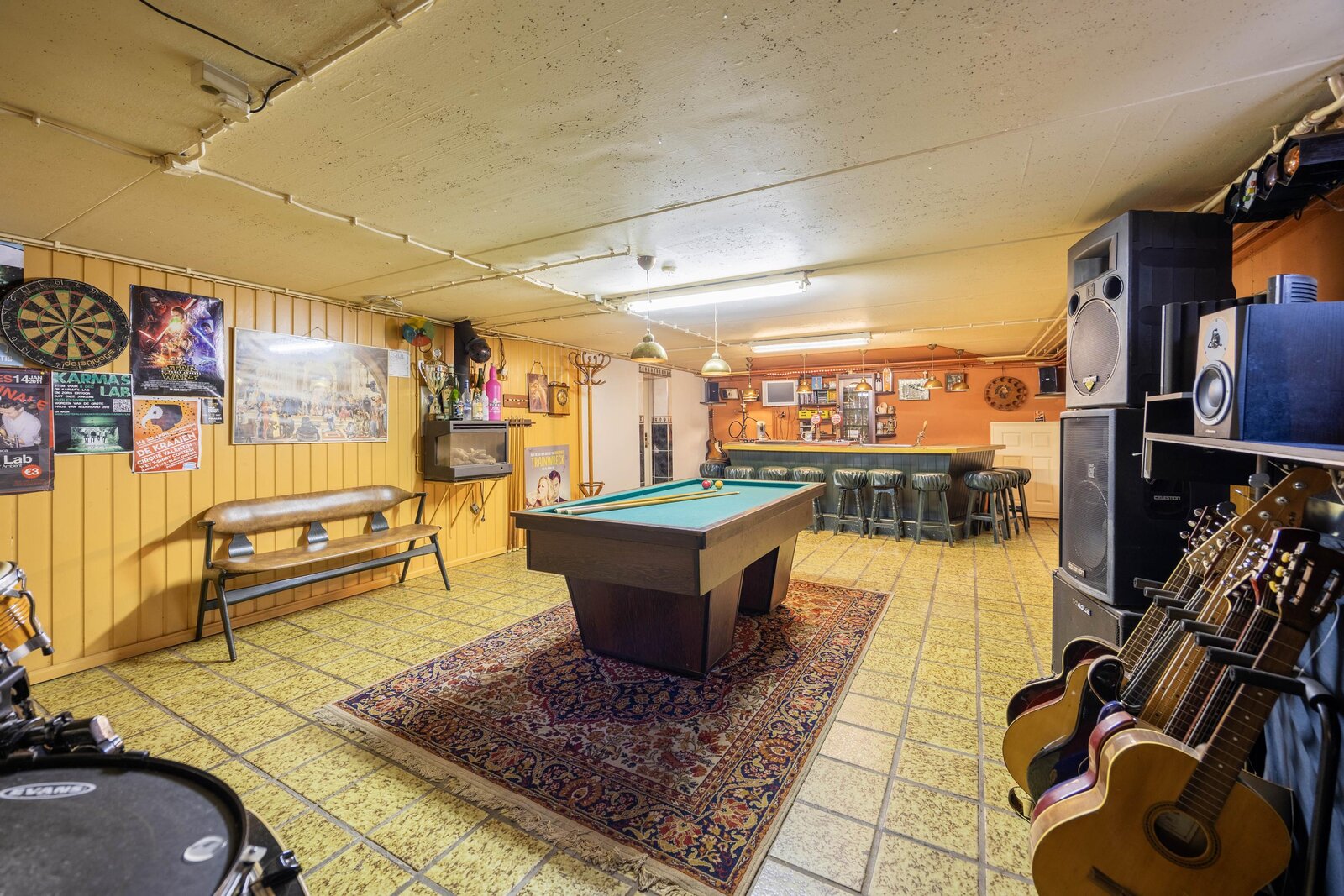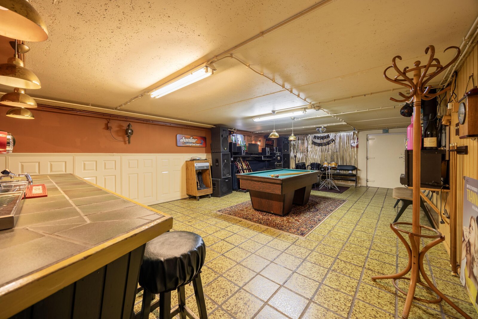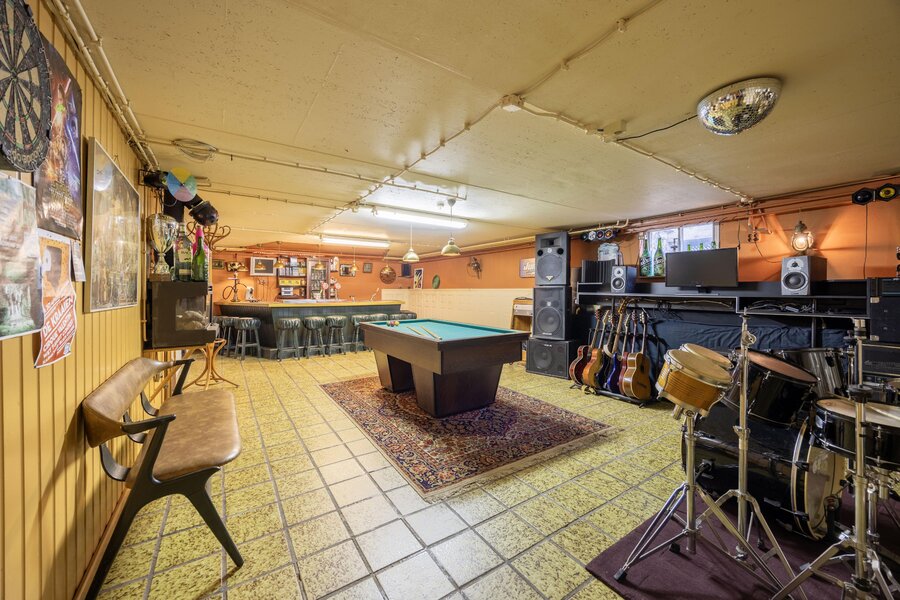 De meer dan 10 meter lange garage is de perfecte plek voor auto’s, fietsen en de zitmaaier. Ruimte is hier in overvloed. Het absolute hoogtepunt van dit souterrain is echter de entertainmentroom met bar en toiletruimte. Al jarenlang is dit de plek om muziek te luisteren, zelf te spelen of een potje biljart te doen. Ook familie en vrienden waarderen deze ruimte bijzonder, want voor een verjaardag of een andere gelegenheid is dit de perfecte plek om samen te komen.