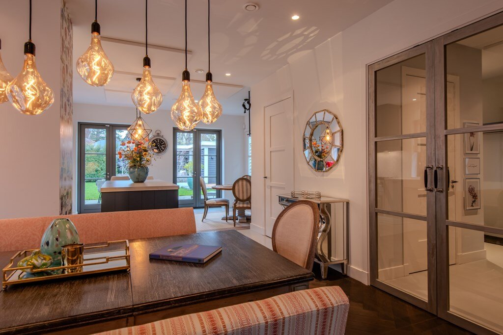 Functionele bijkeuken en lichte, elegante hal