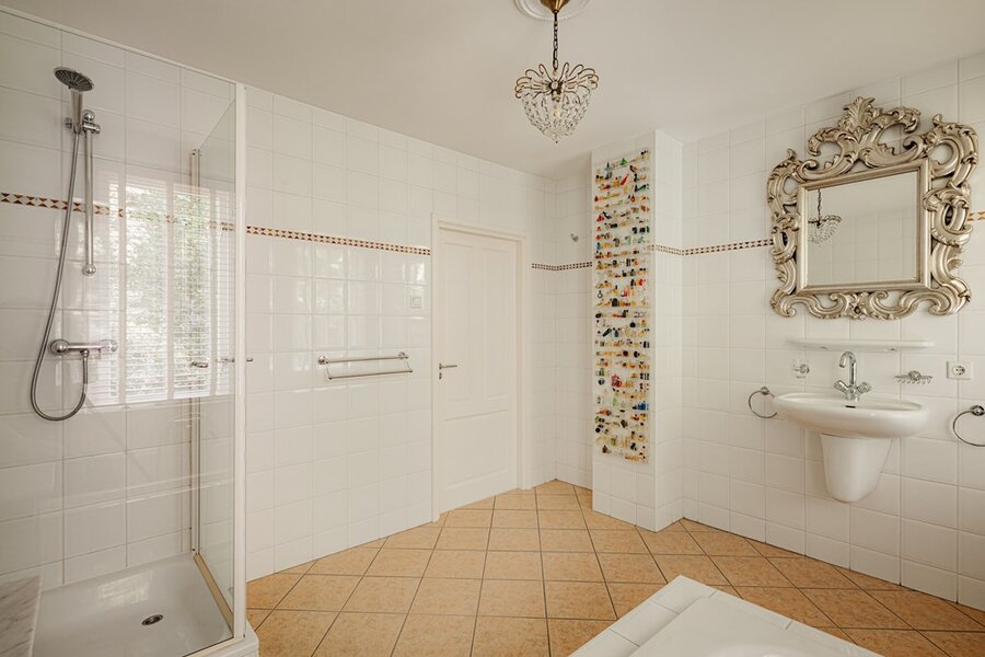 De villa heeft een woonoppervlakte van 410 m² en staat op een royaal perceel van 2.712 m². De huidige eigenaren hebben de woning met veel zorg en aandacht gemoderniseerd, waarbij authentieke elementen zoals de stucwanden en het beukenhouten tapisparket behouden zijn gebleven. In de hal, keuken en bijkeuken is gekozen voor een strakke Eurocol stucvloer, die perfect aansluit bij het moderne comfort van de woning. Zo zijn historische charme en hedendaags woongenot naadloos gecombineerd.