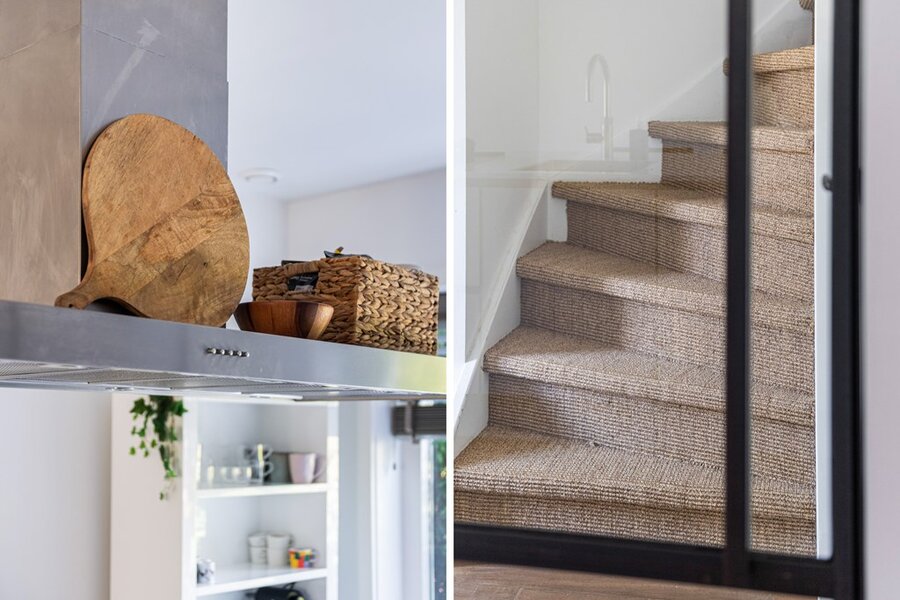 Qua vloerafwerking is deze gehele verdieping voorzien van modern "sisal" en ook de trappen zijn hiermee bekleed. De wand- en plafondafwerking bestaat hier ook uit strak stucwerk.